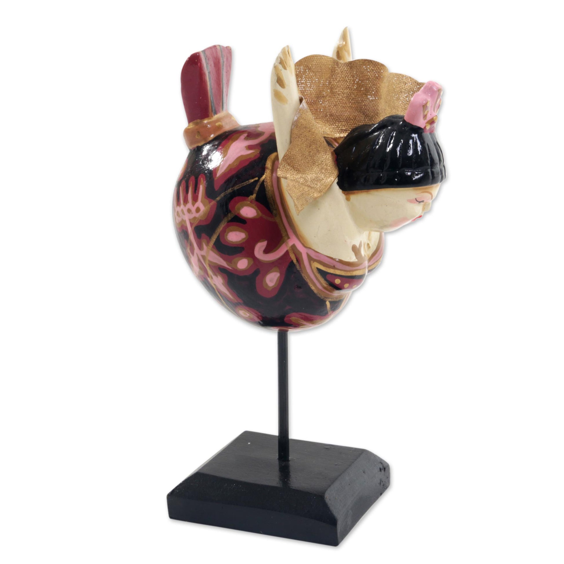 Flying Lady in Red and Black Hand Carved Wood Sculpture Flying Woman Red Indonesia