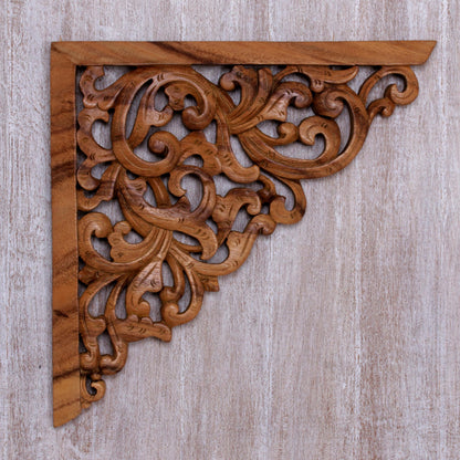 Forest Corner Hand Crafted Suar Wood Vine Motif Relief Panel from Bali