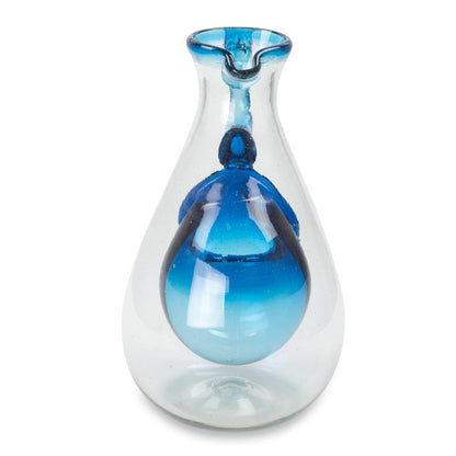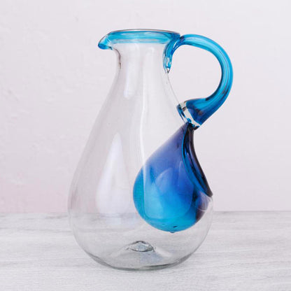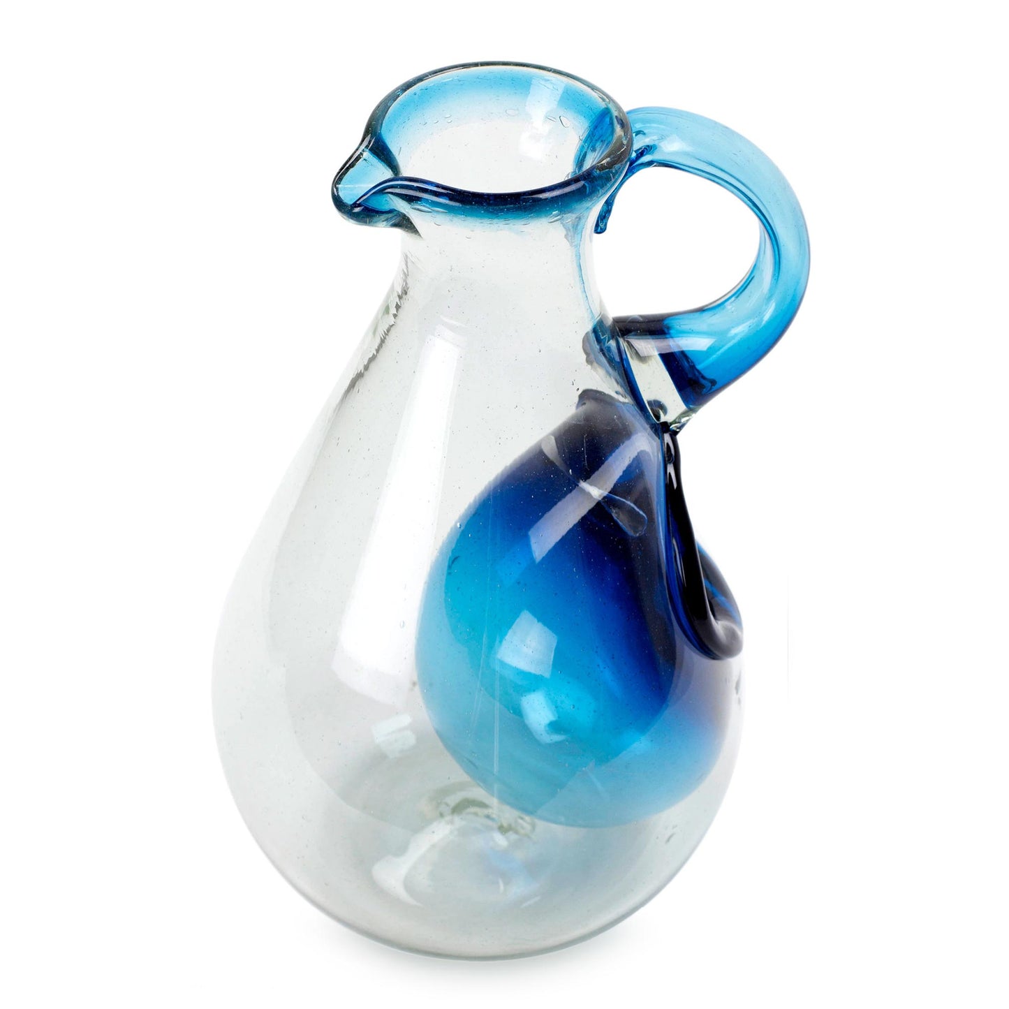 Fresh Caribbean Hand Made Blown Glass Pitcher with Ice Chamber