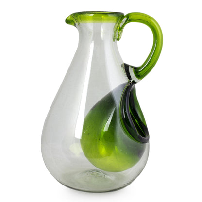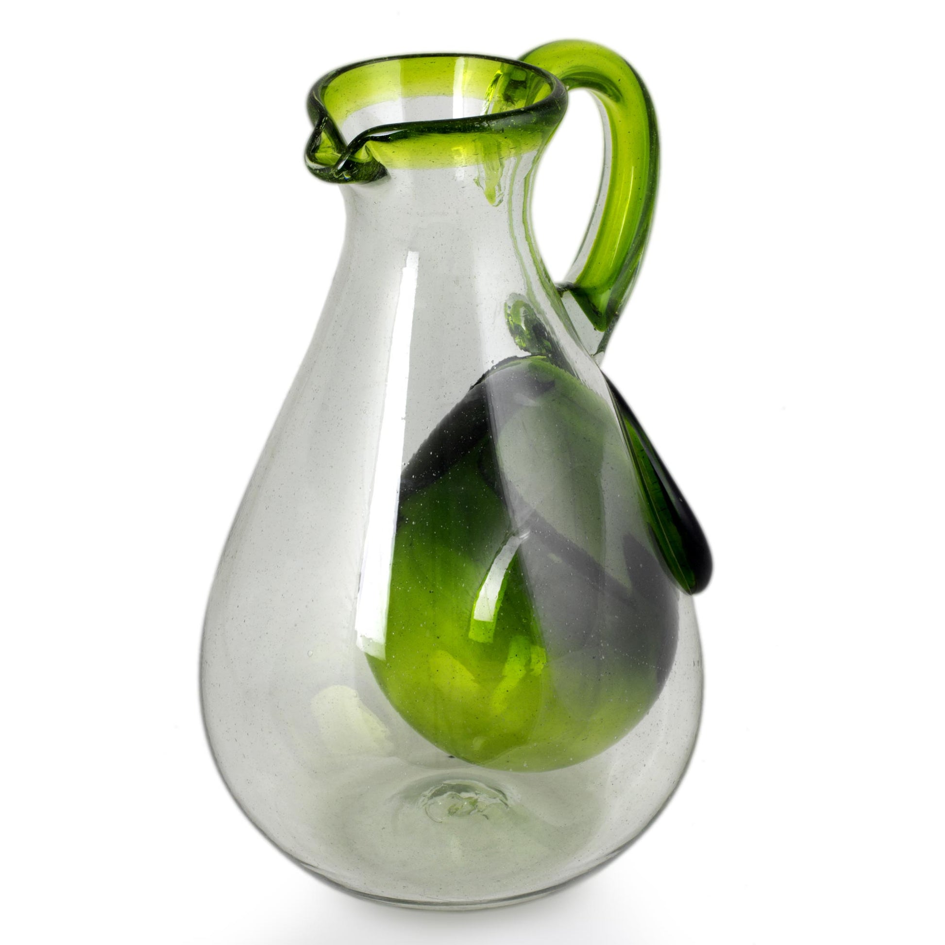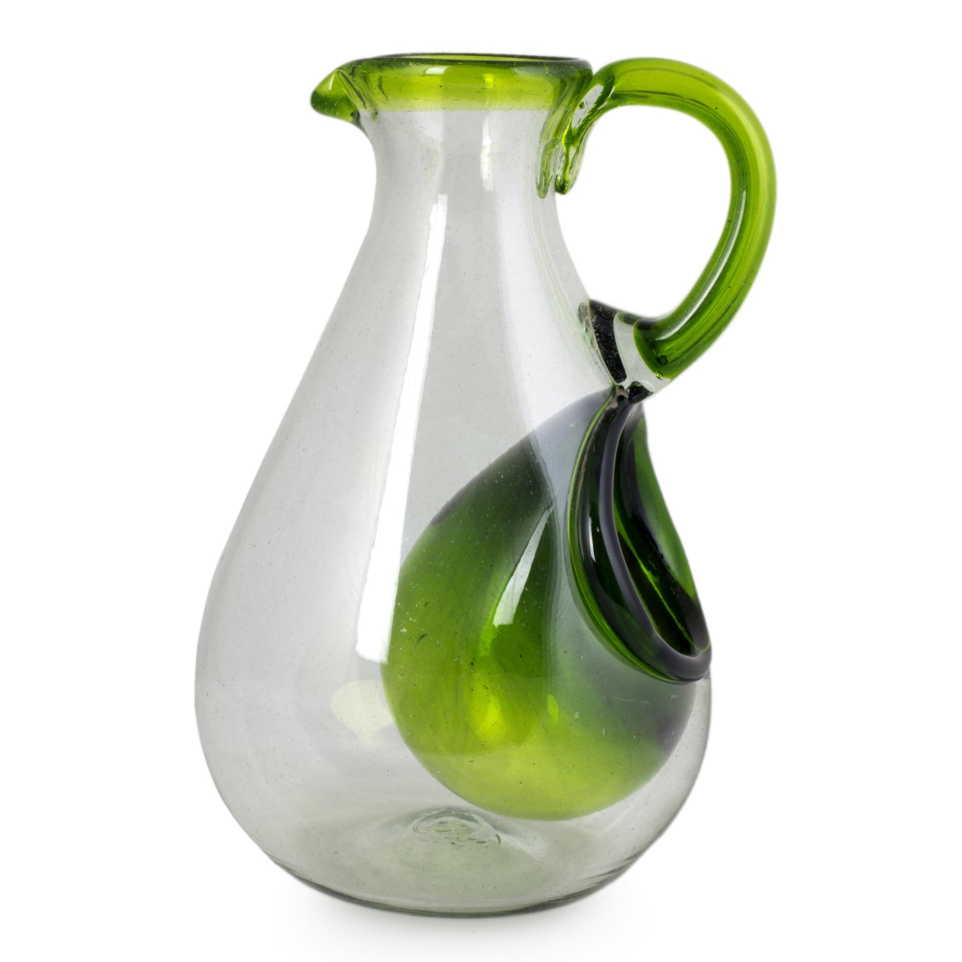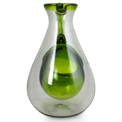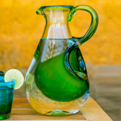 Javier and Efrén craft a beautiful pitcher with a lemon green chamber for ice to keep sangria, lemonade and iced tea cool without watering them down. The pitcher is crafted by hand with artistic expertise in the Mexican tradition of blown glass.