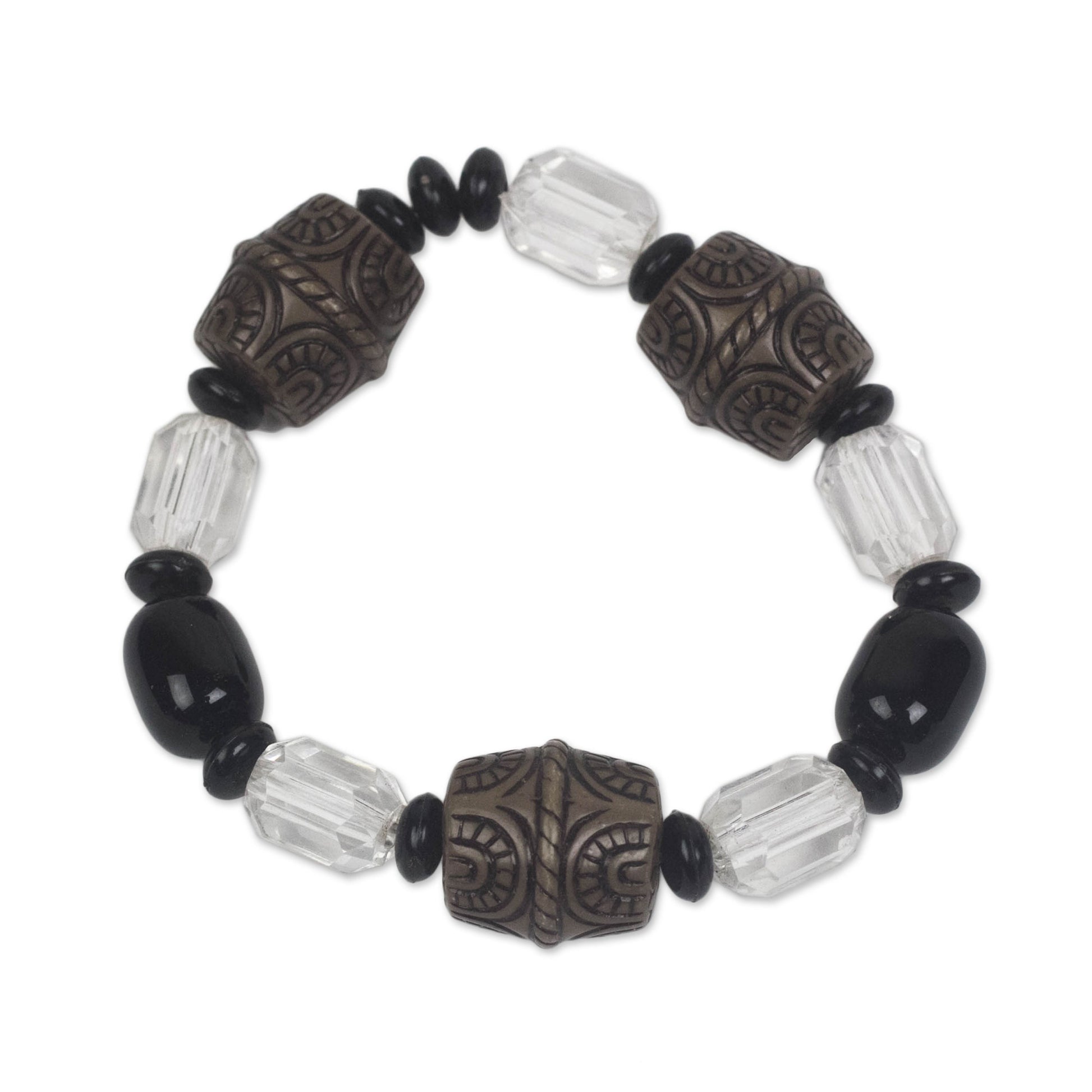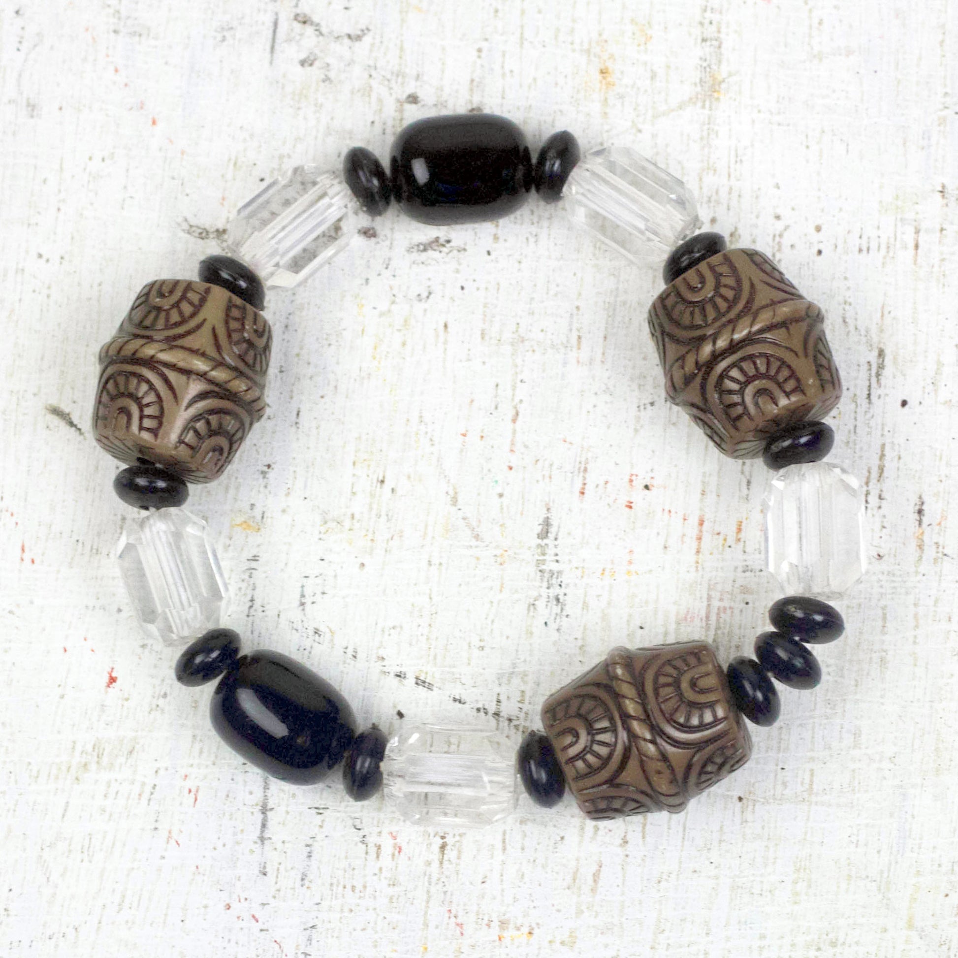 In clear, black, and brown tones, beads of recycled plastic encircle the wrist. Ghanaian artisan Abdul Kadir Iddrisu designs this eco-friendly stretch bracelet.