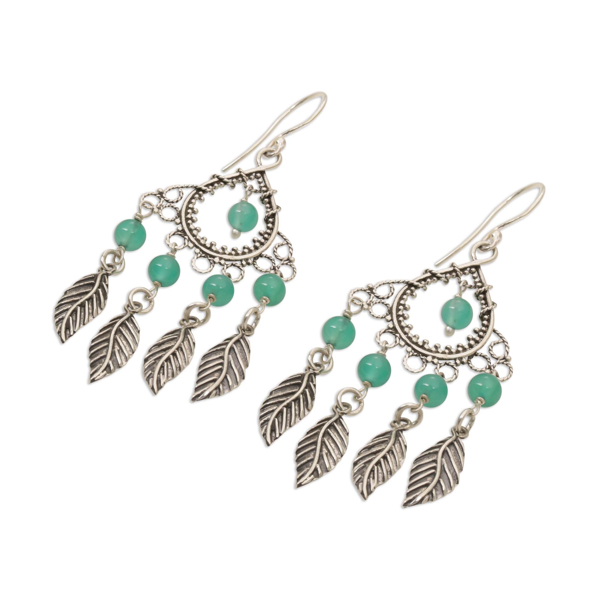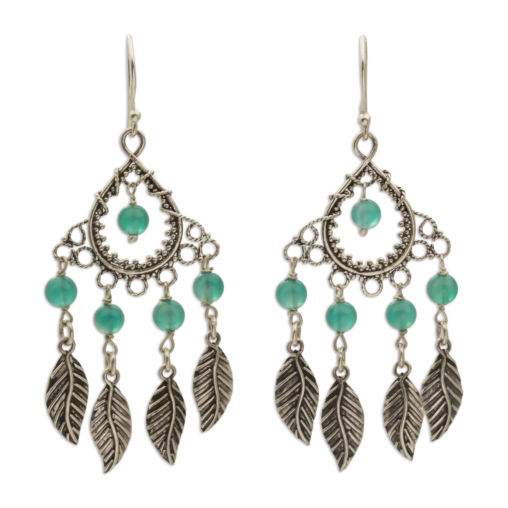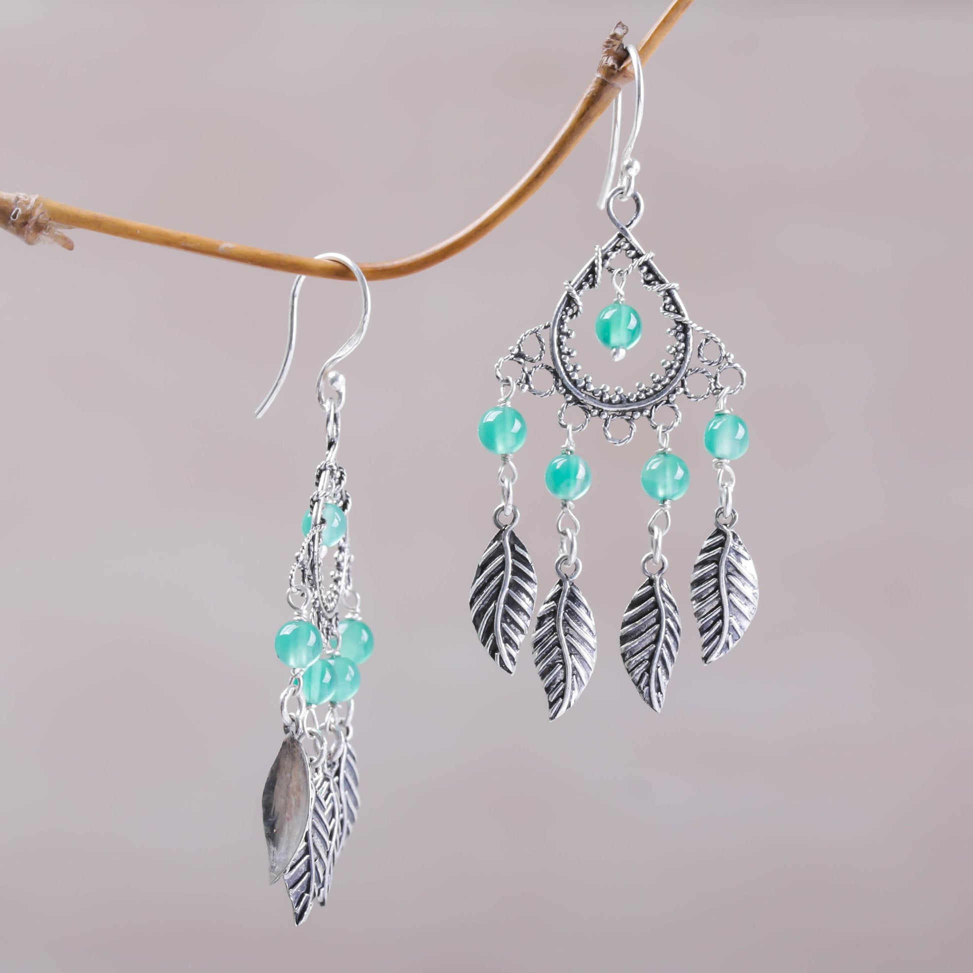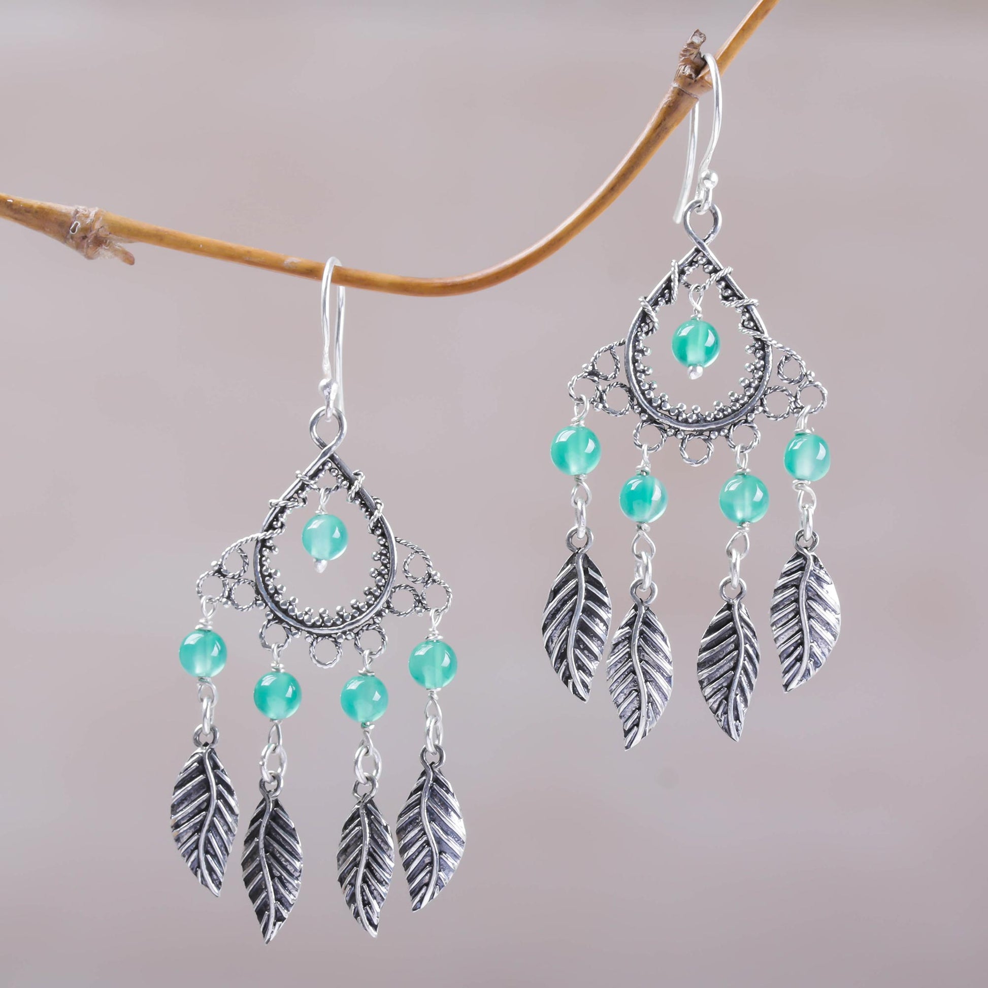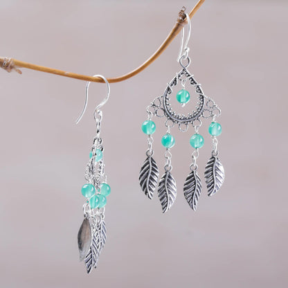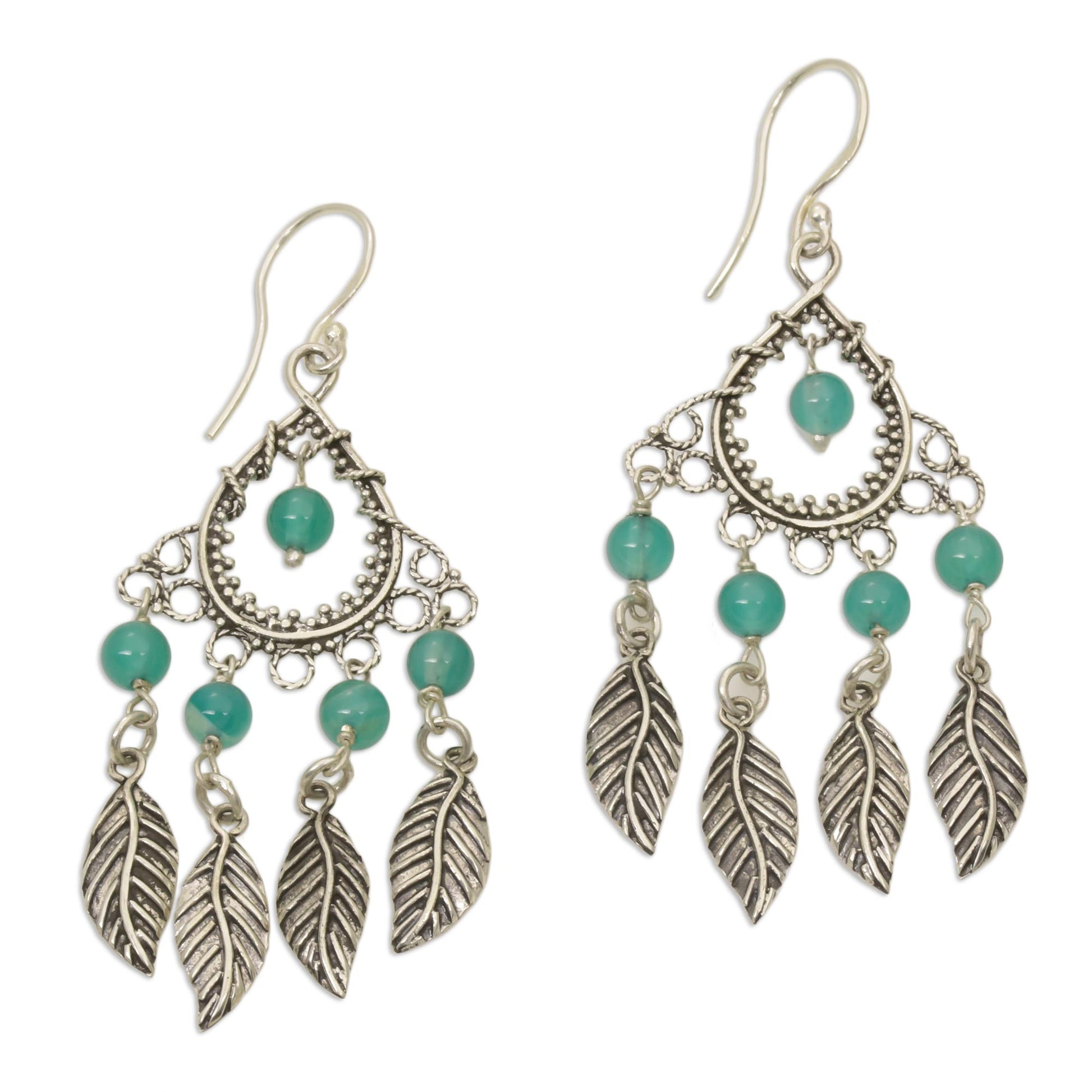 Garden Leaves Sterling Silver and Agate Leaf Chandelier Earrings from Bali