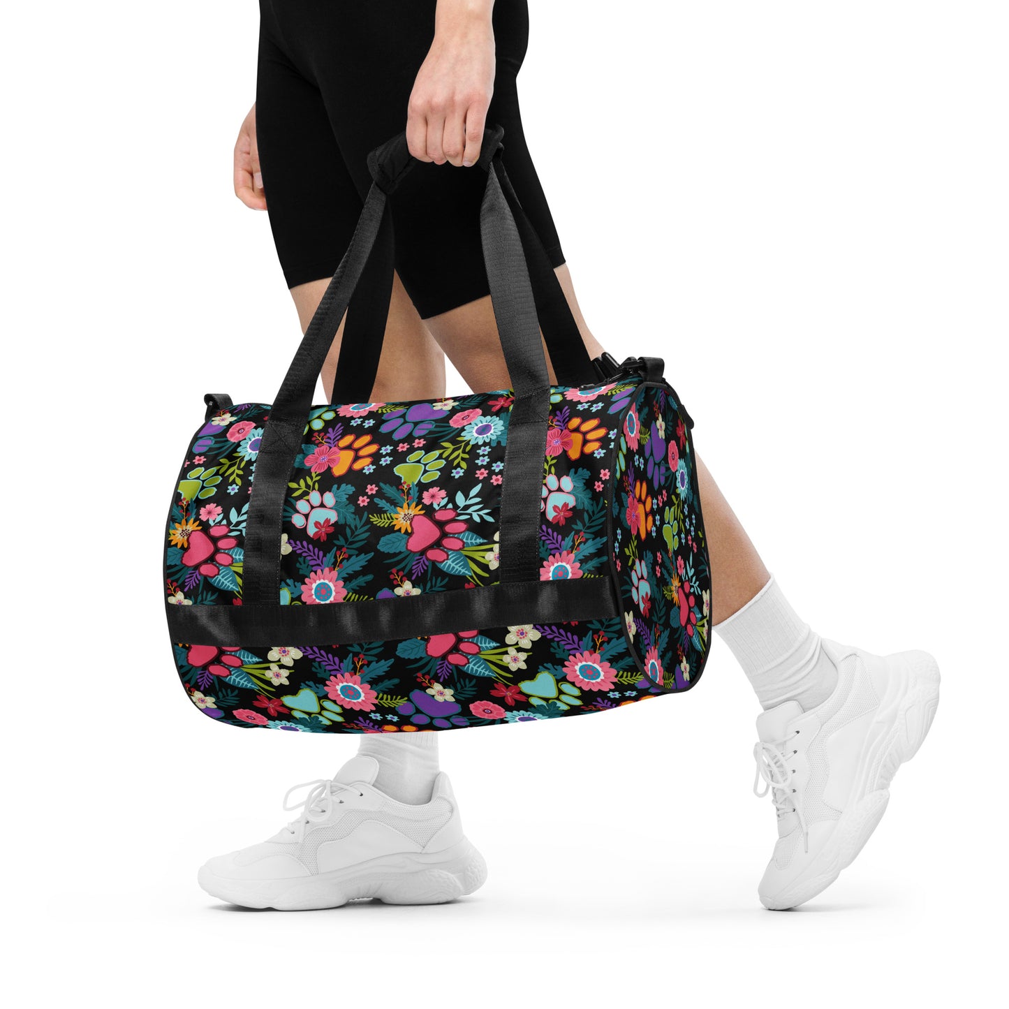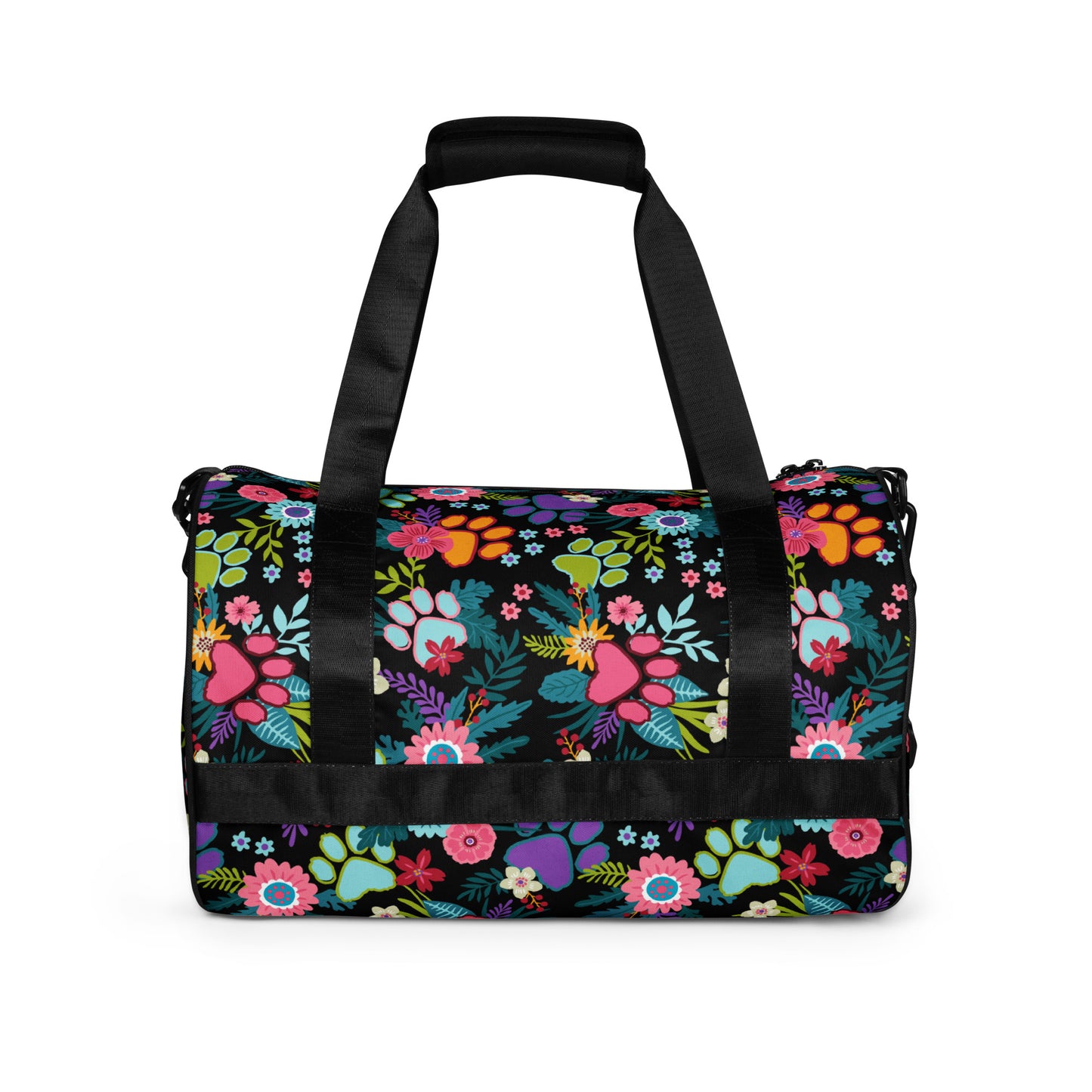 Made from 100% polyester and sturdy, water-resistant fabric, this bag is fun meets function. And it’s got pockets! Perfect for an overnight stay somewhere or for going to the gym!