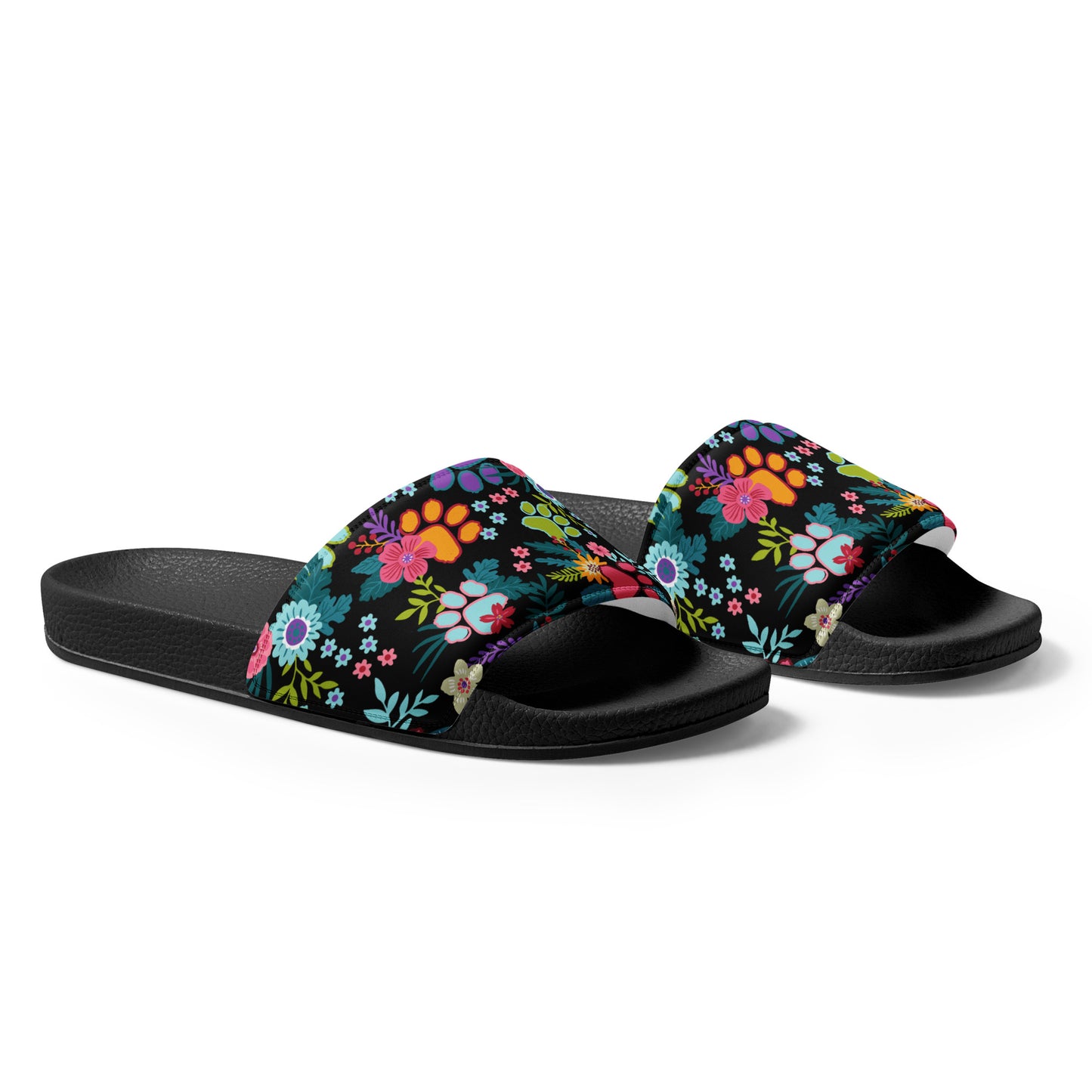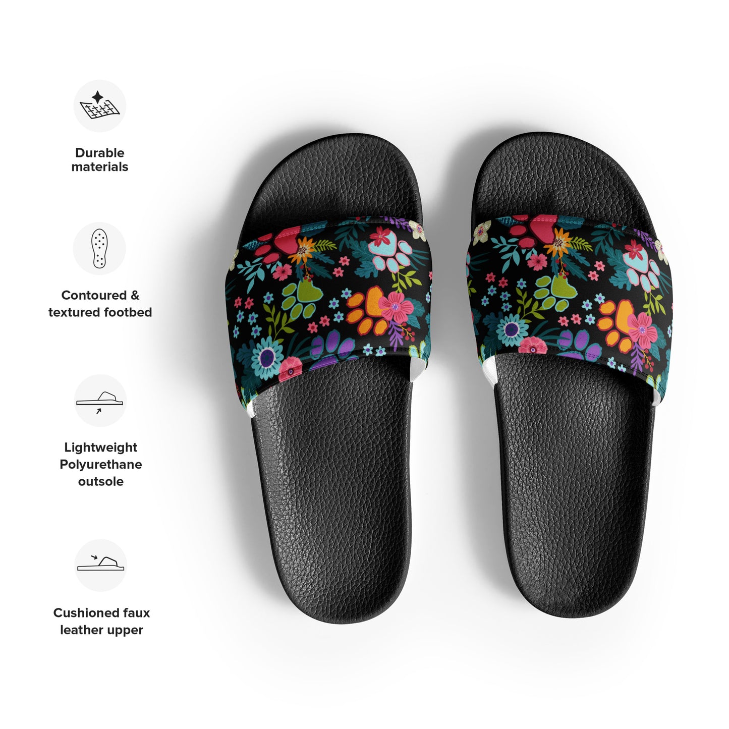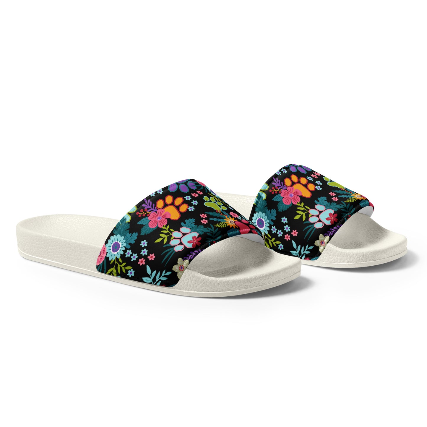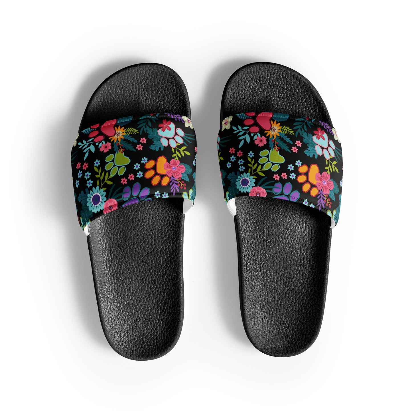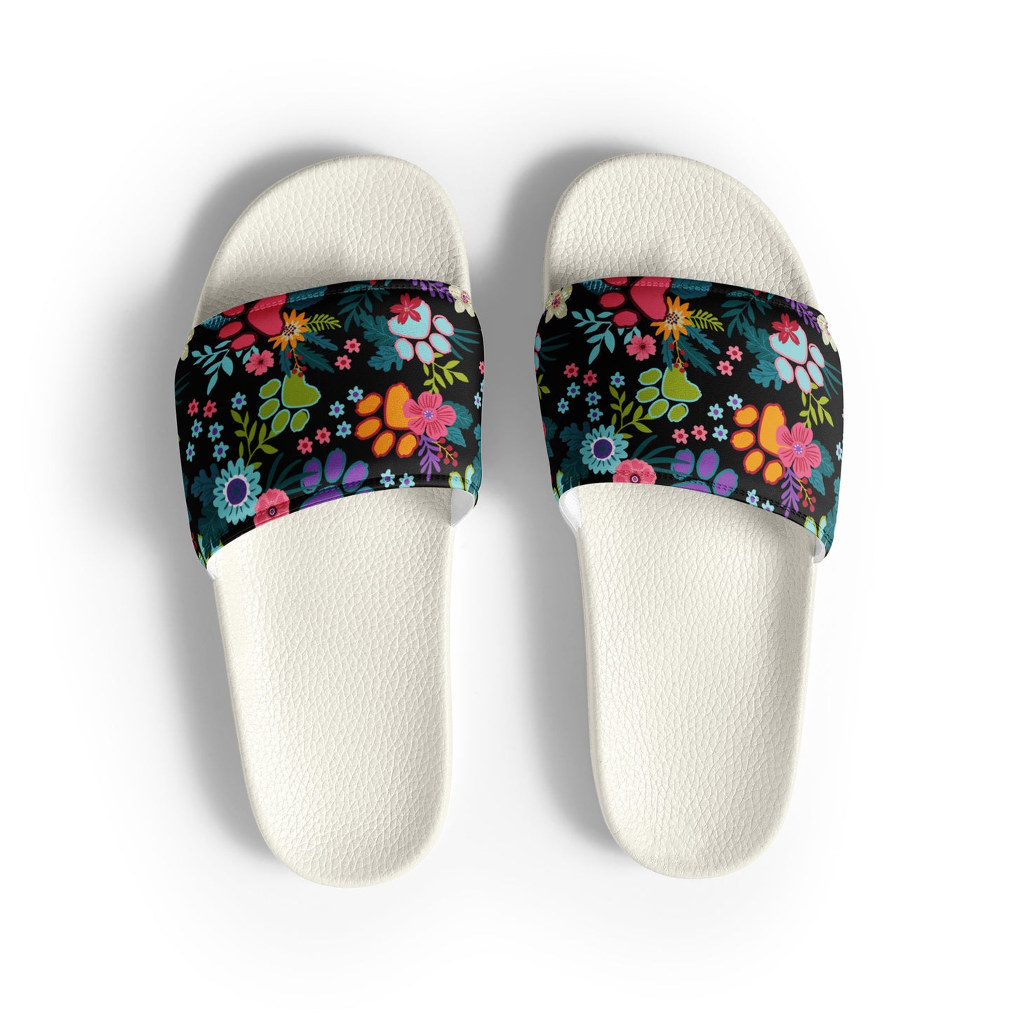 A must-have for the summer: these women’s slides. A pair of these will keep you comfy throughout your day of beach or pool activities, thanks to the cushioned upper strap and the textured footbed. This tropical garden paw print is perfect for those who love animals.