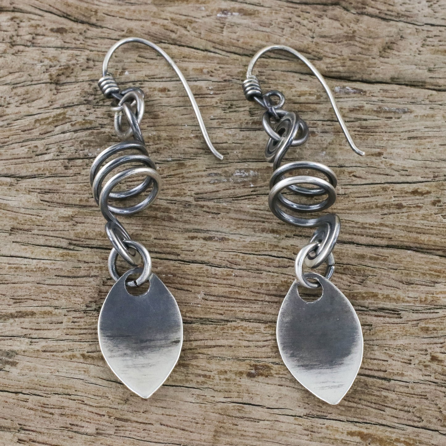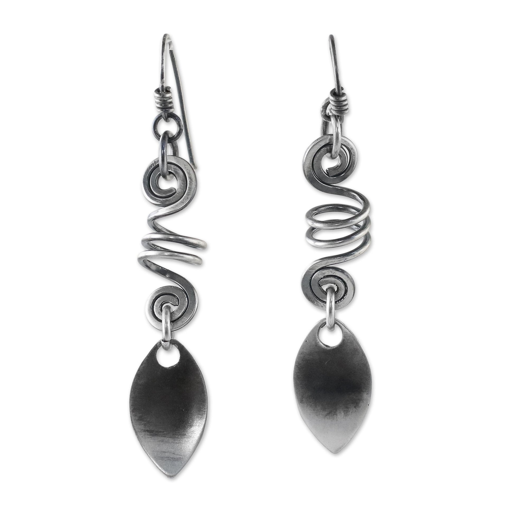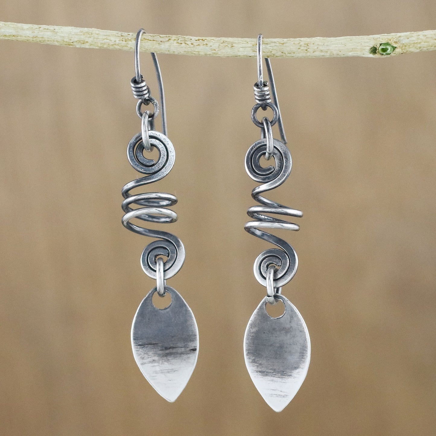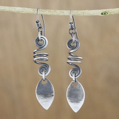 Garden View Sterling Silver Spiral Motif Dangle Earrings from Thailand