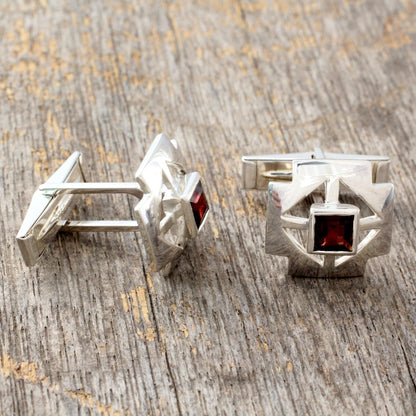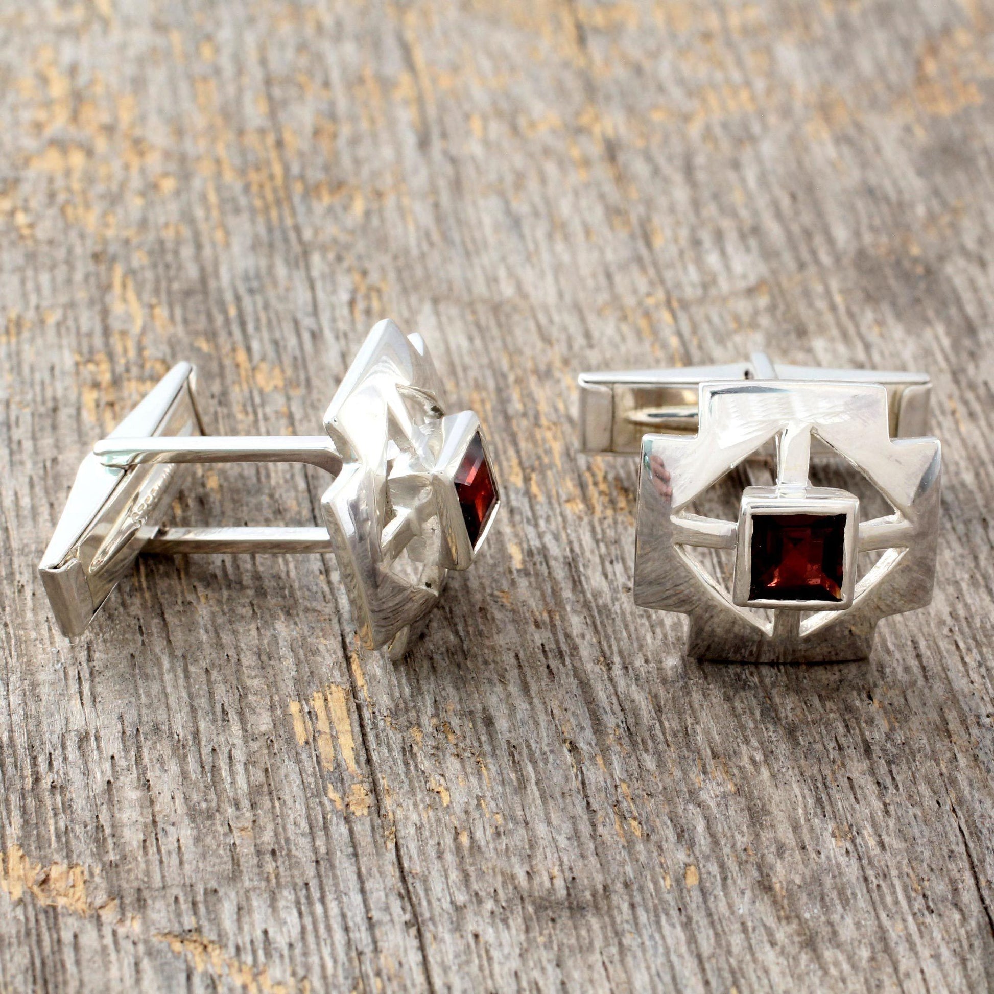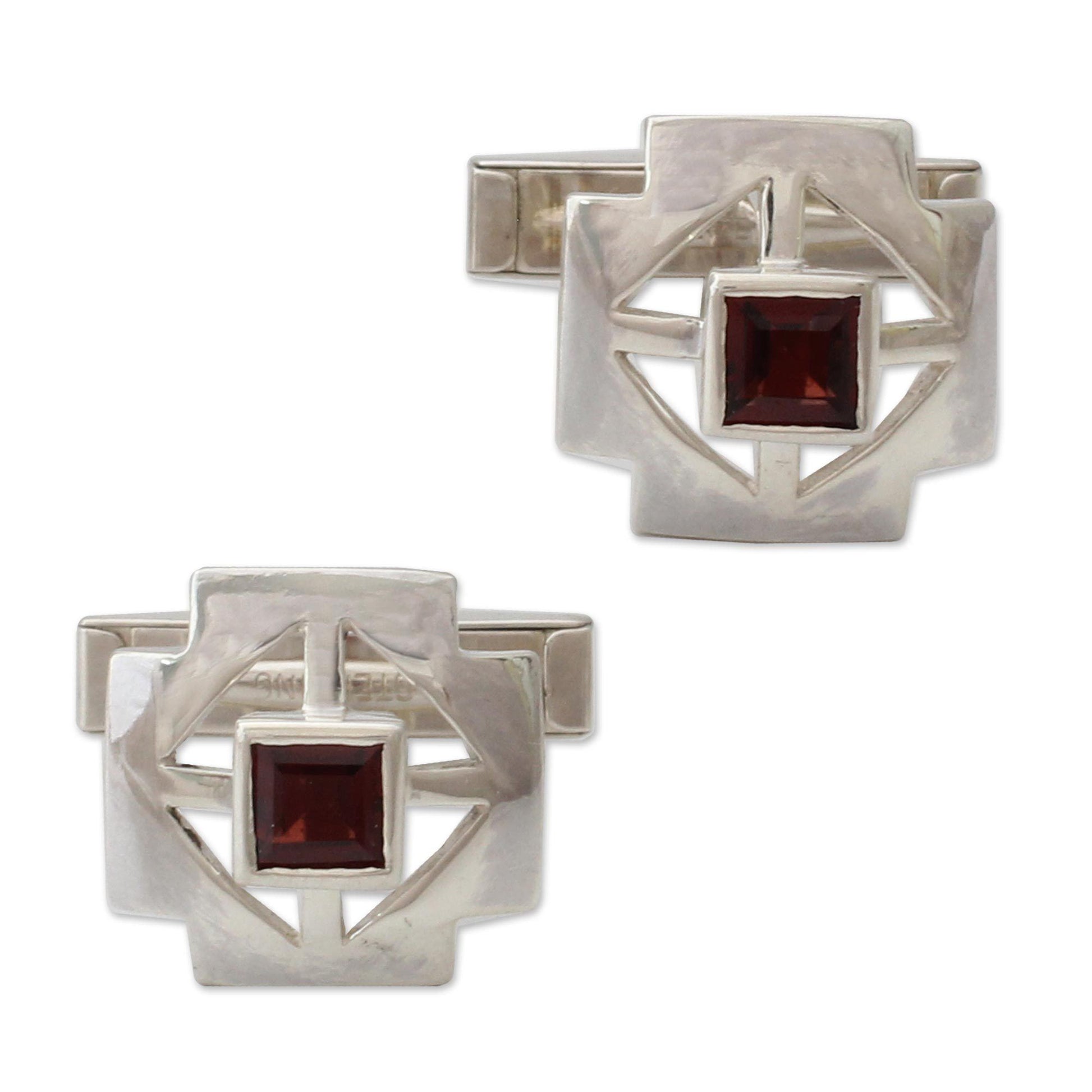 A square-cut garnet sits at the center of these regal sterling silver cross cufflinks. India's Shubhra Singh designed these openwork cufflinks.