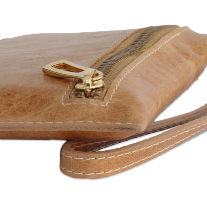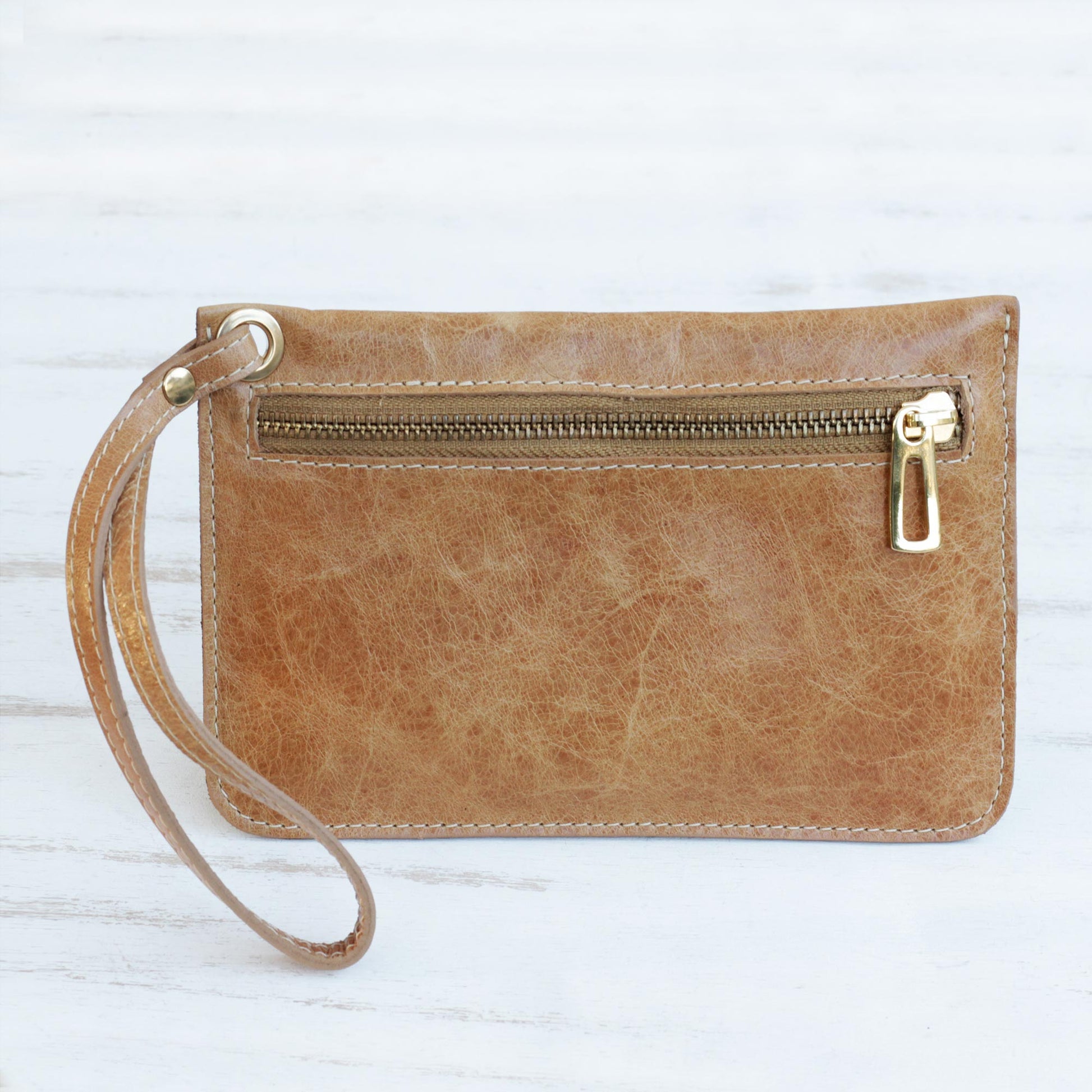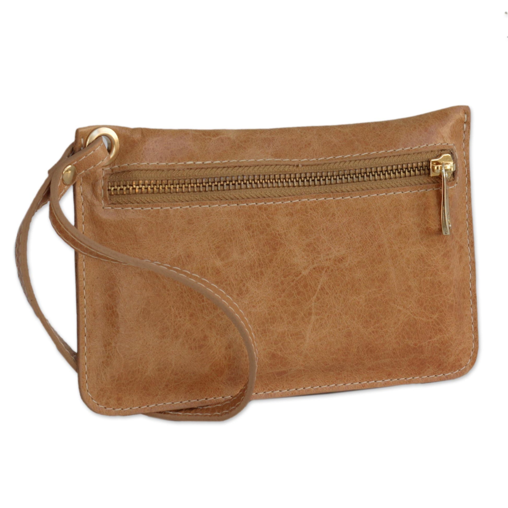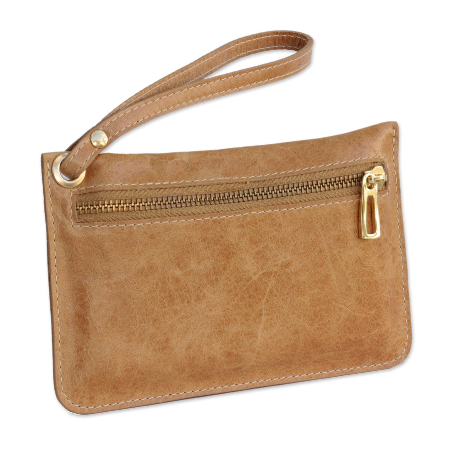 Ginger Sophistication Handcrafted Ginger Leather Wristlet from Brazil