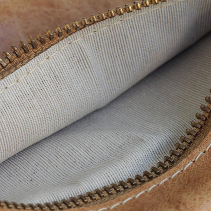 Stylish and sophisticated, this Brazilian wristlet is presented by Daniel. The Brazilian handbag is crafted of ginger-hued leather, dangling from the wrist on a strap. A metal zipper opens to a single-compartment, lined interior.