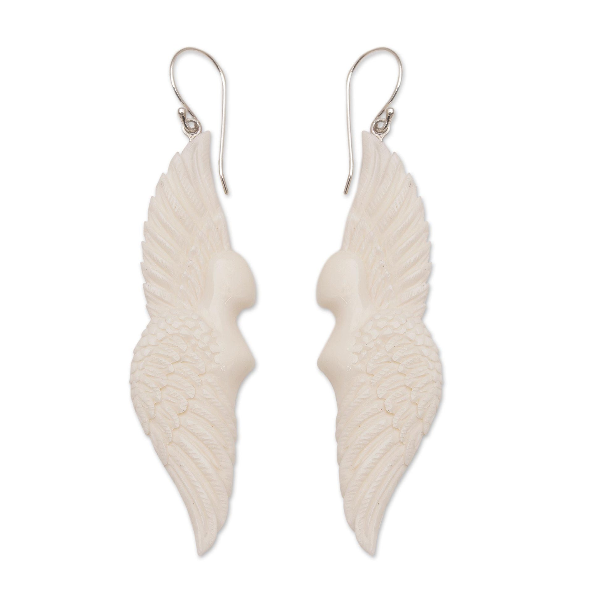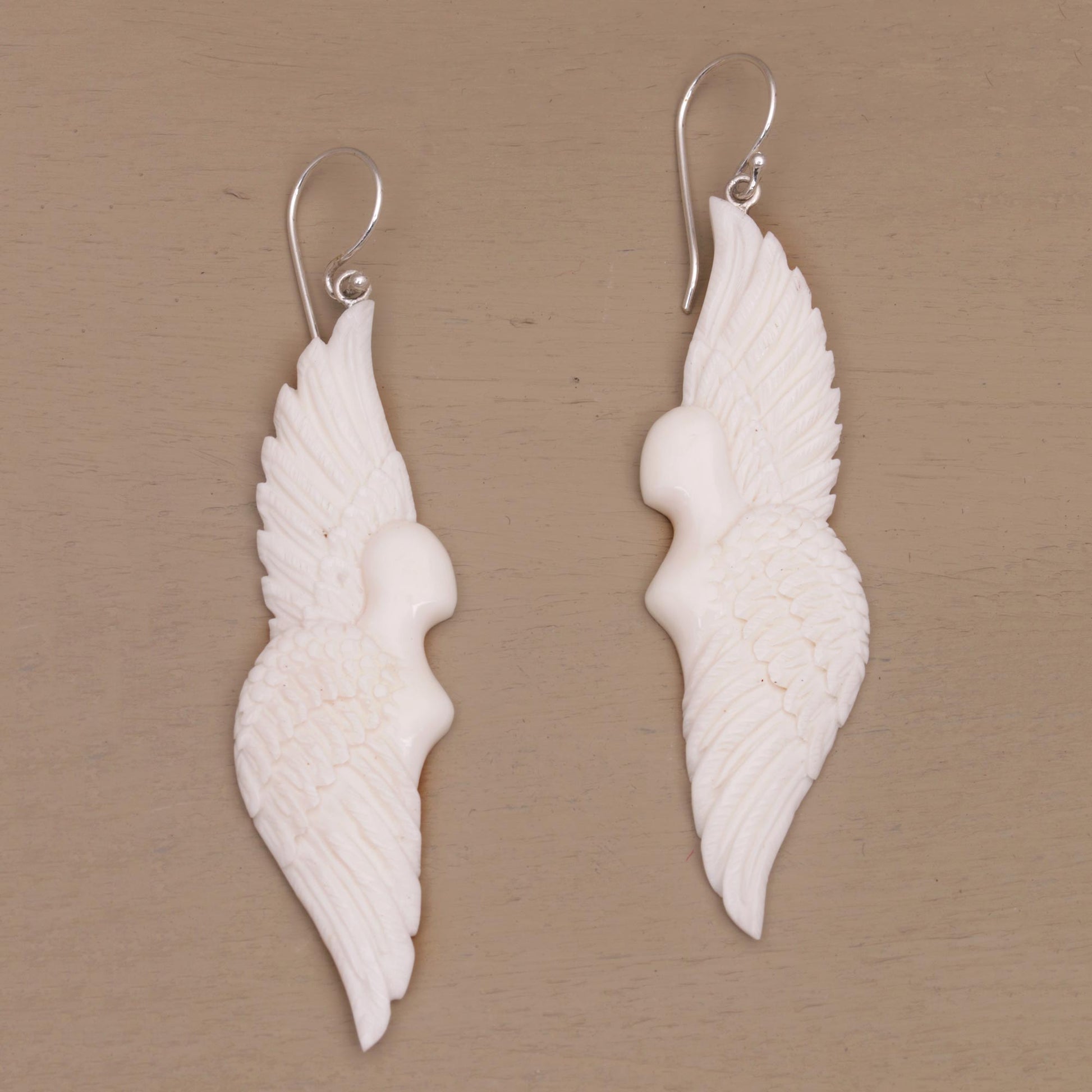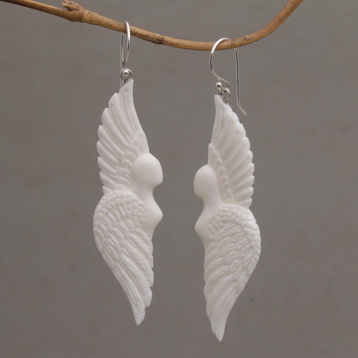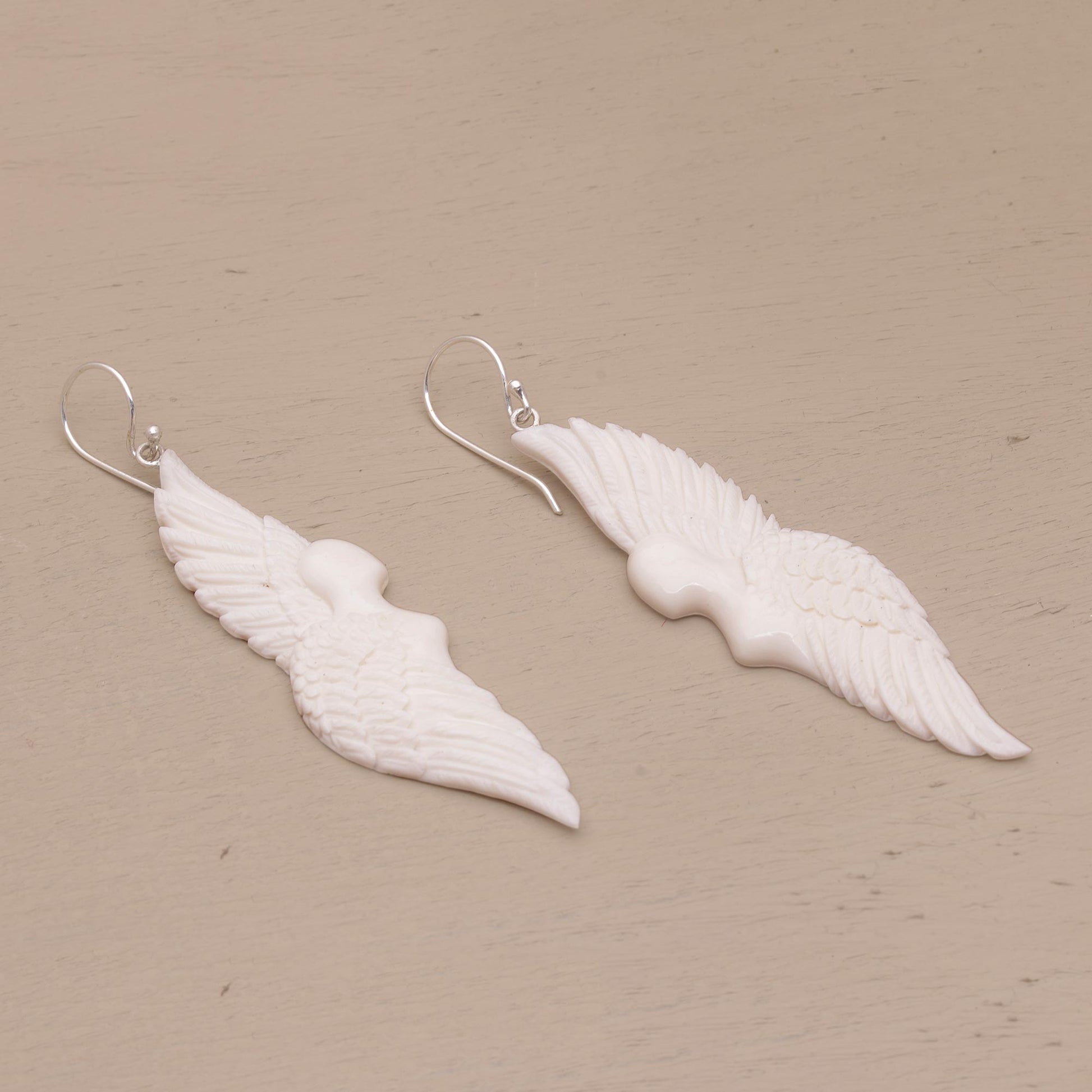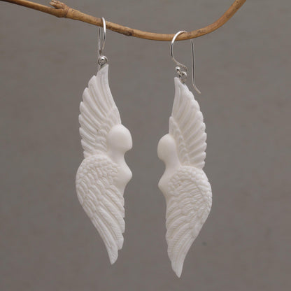 Goddess Wings Handcrafted Wing-Shaped Bone Dangle Earrings from Bali