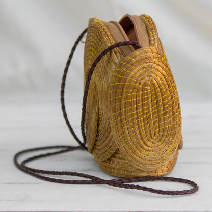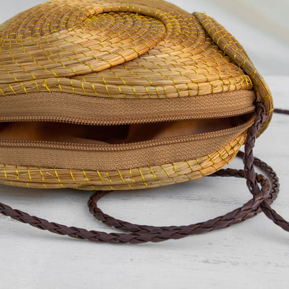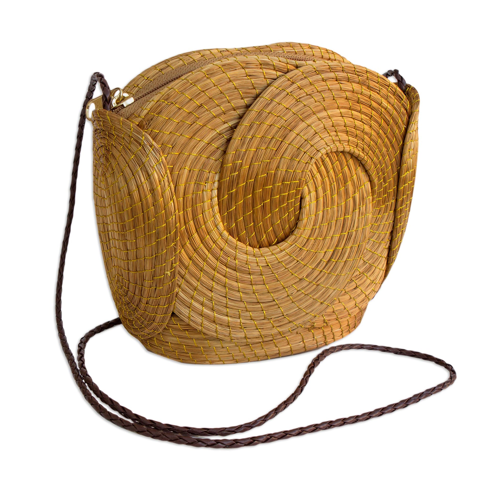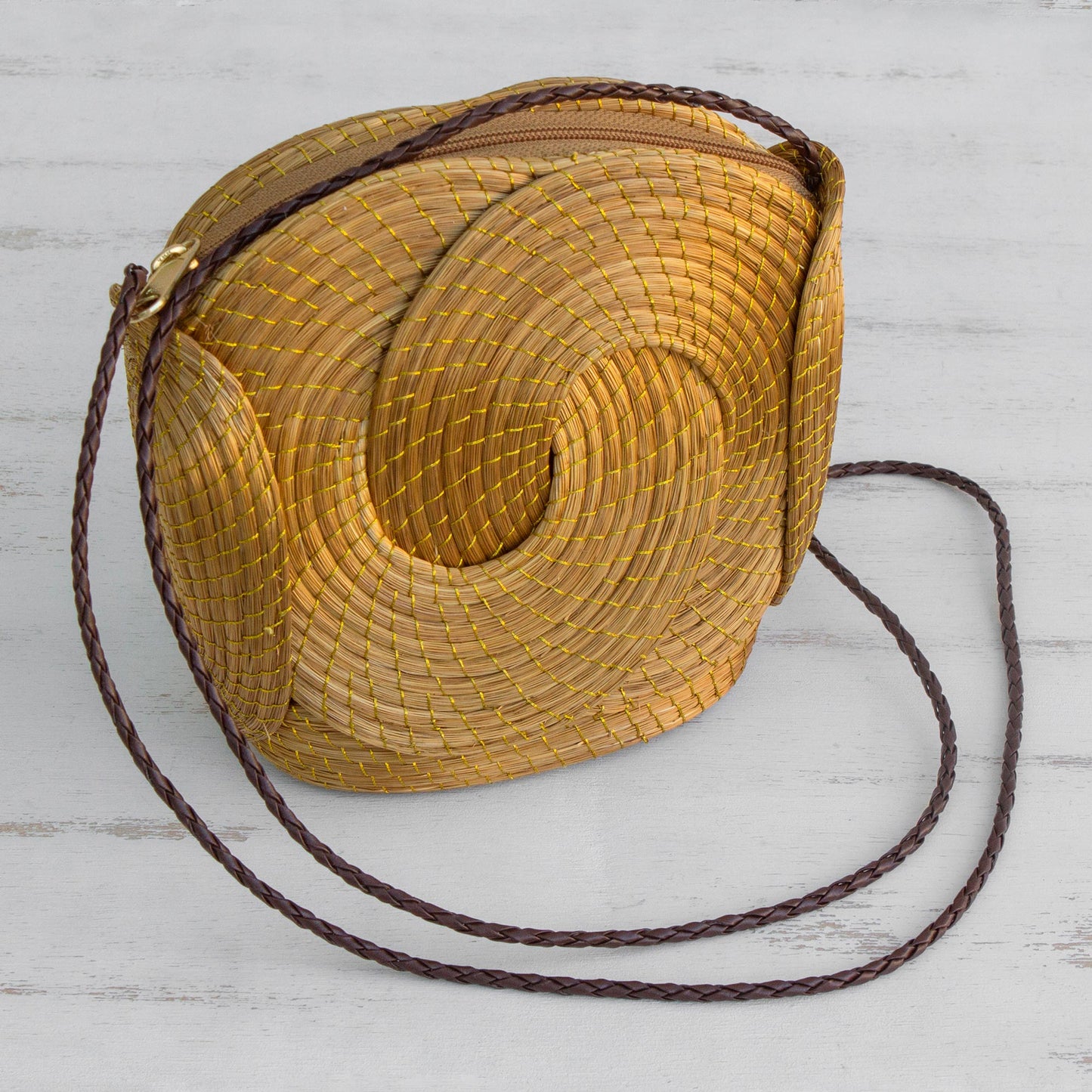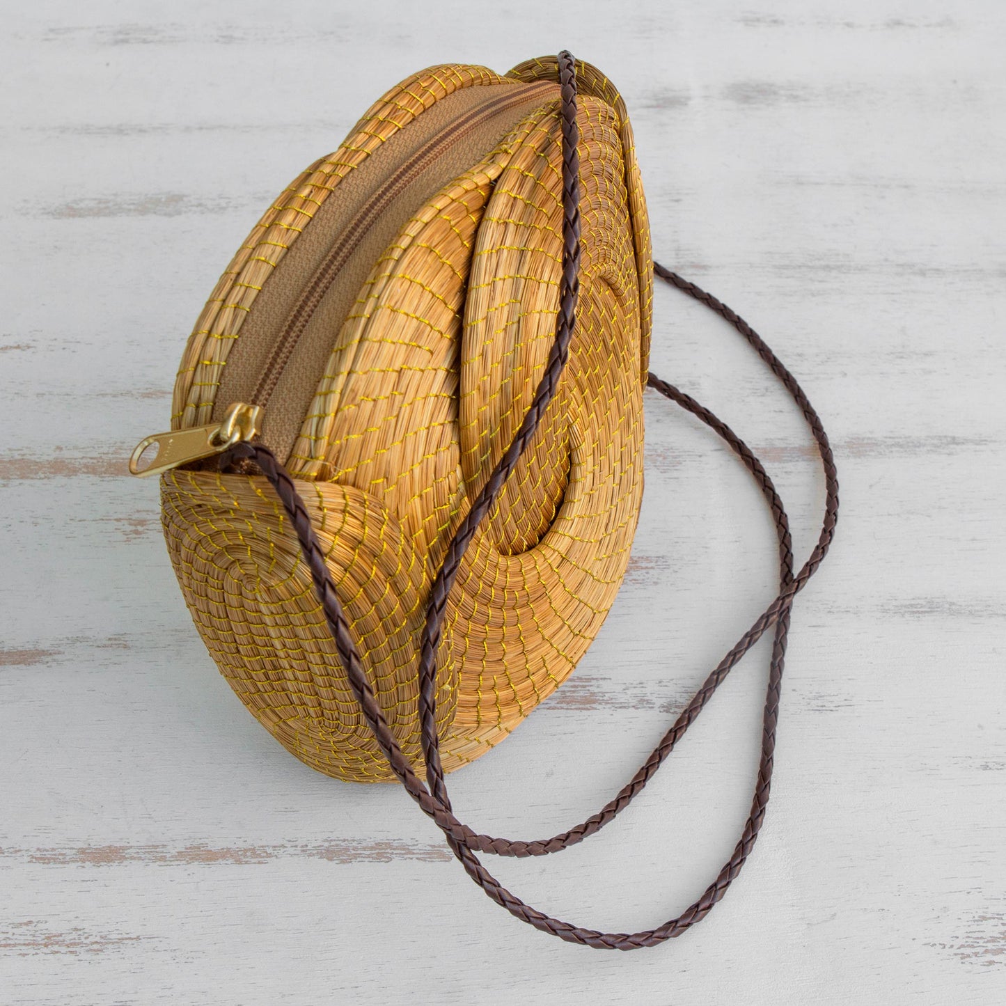 Golden Links Handmade Golden Grass Sling Handbag from Brazil