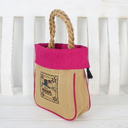 Graceful Elephant Fuchsia Cotton Handbag