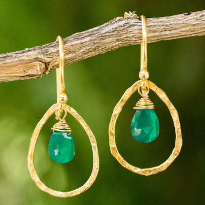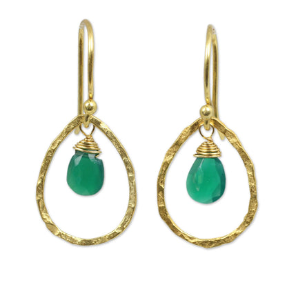Green Minimalism Onyx Gold Plated Hook Earrings