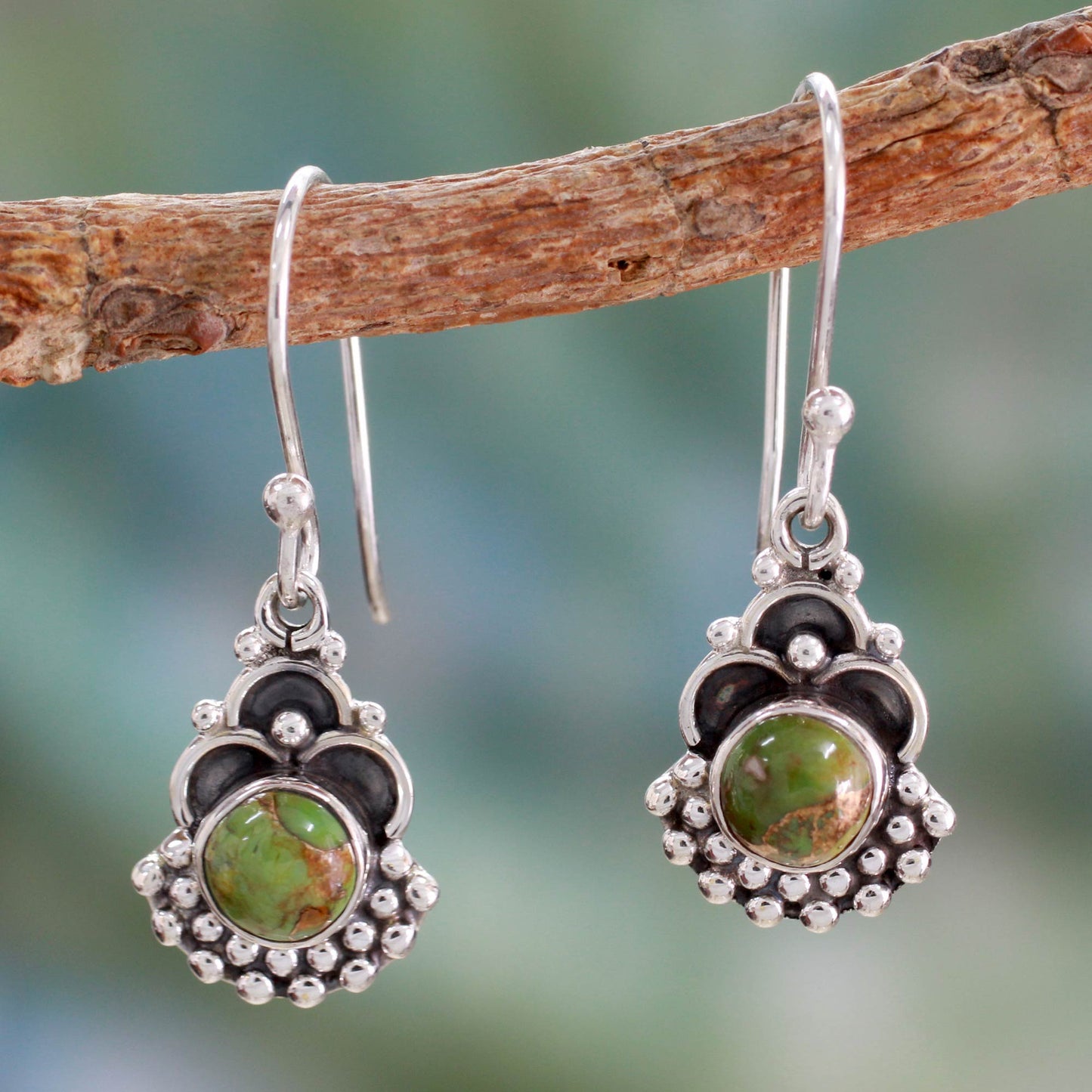 Green Rapture Sterling Silver Earrings Handcrafted with Green Turquoise
