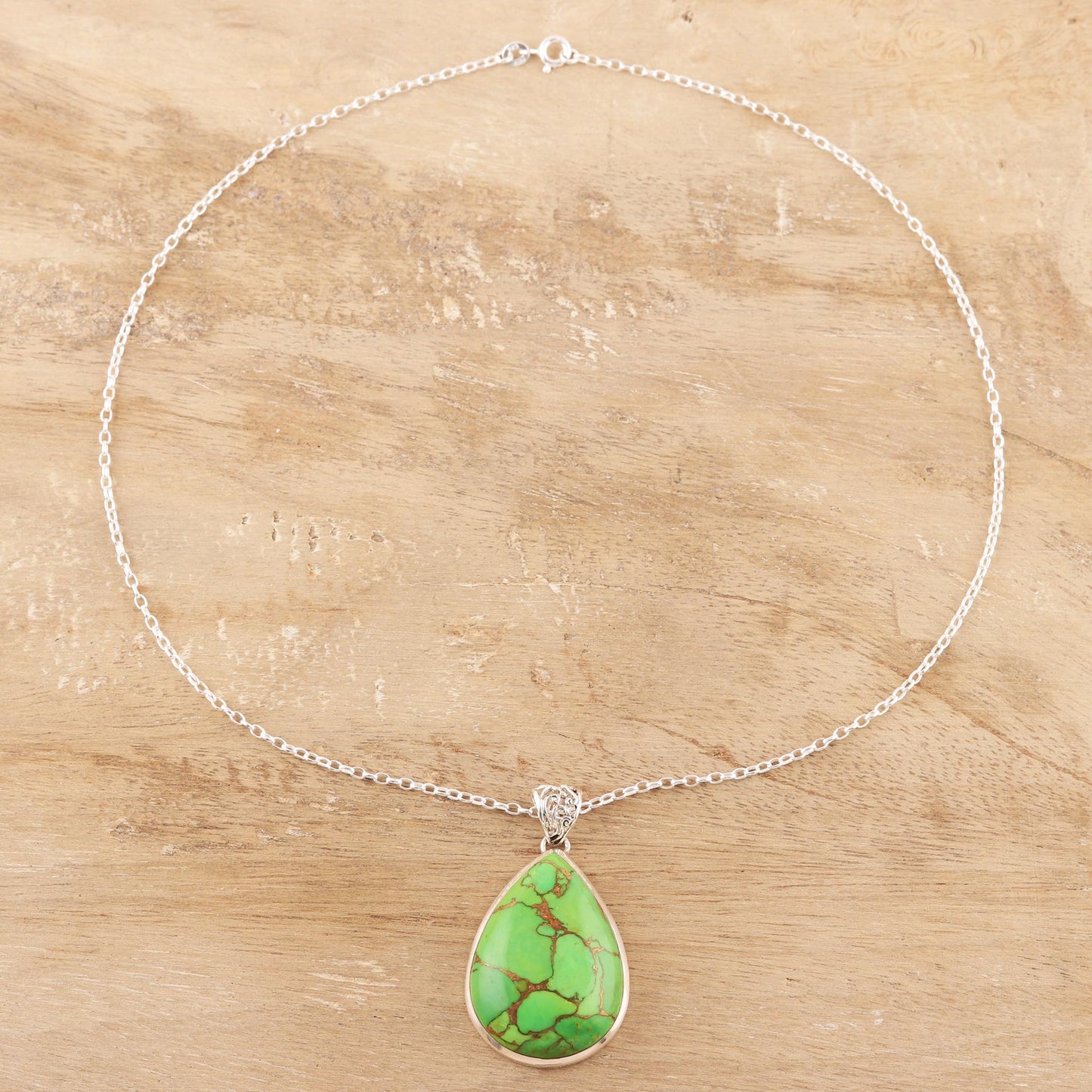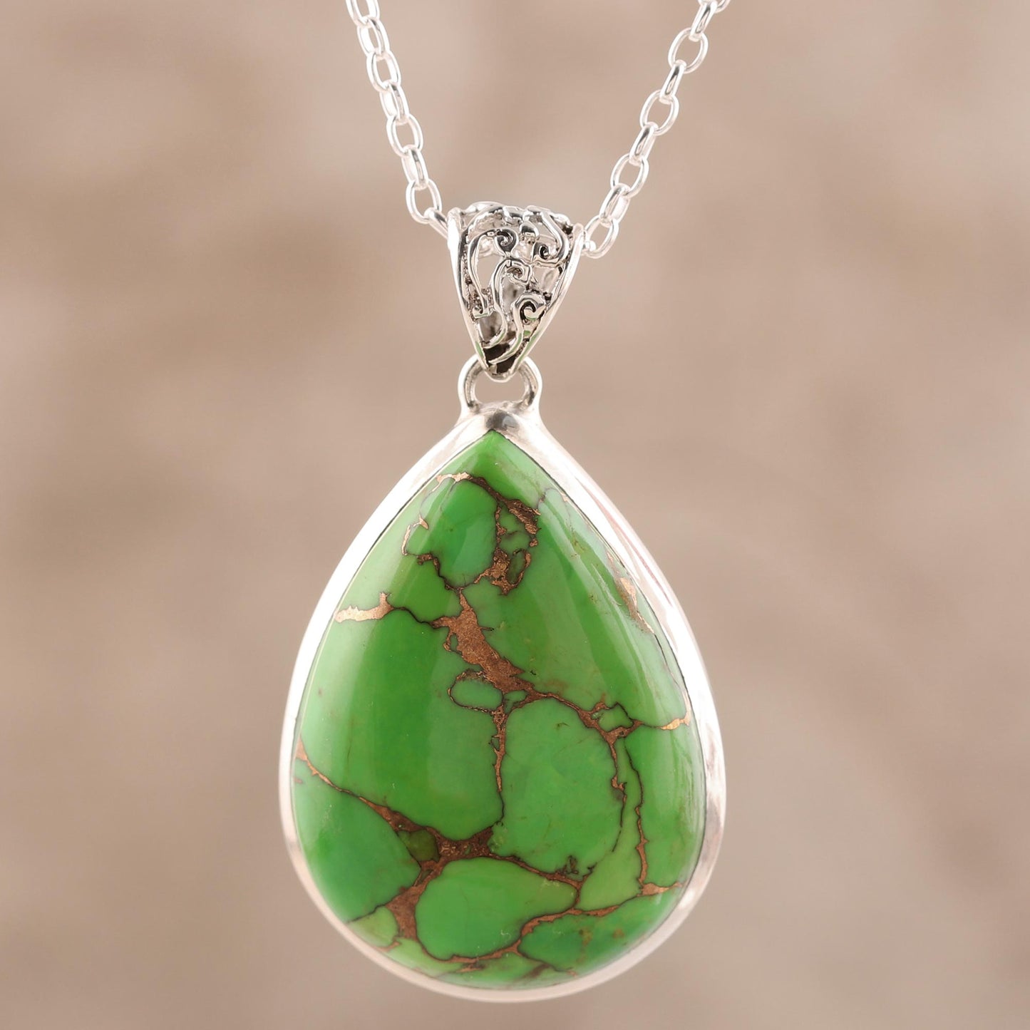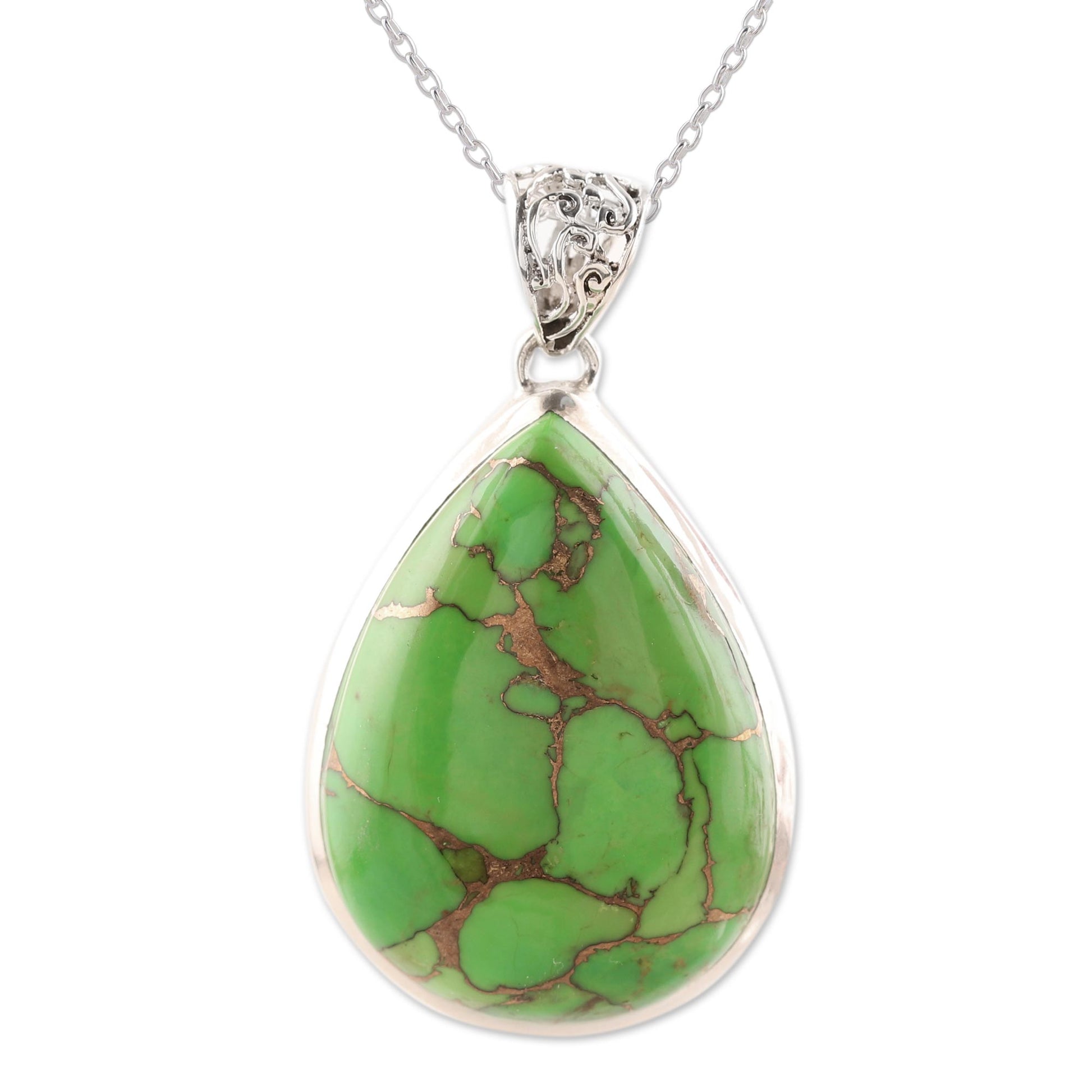 Green Teardrop Teardrop Green Composite Turquoise and Silver Necklace