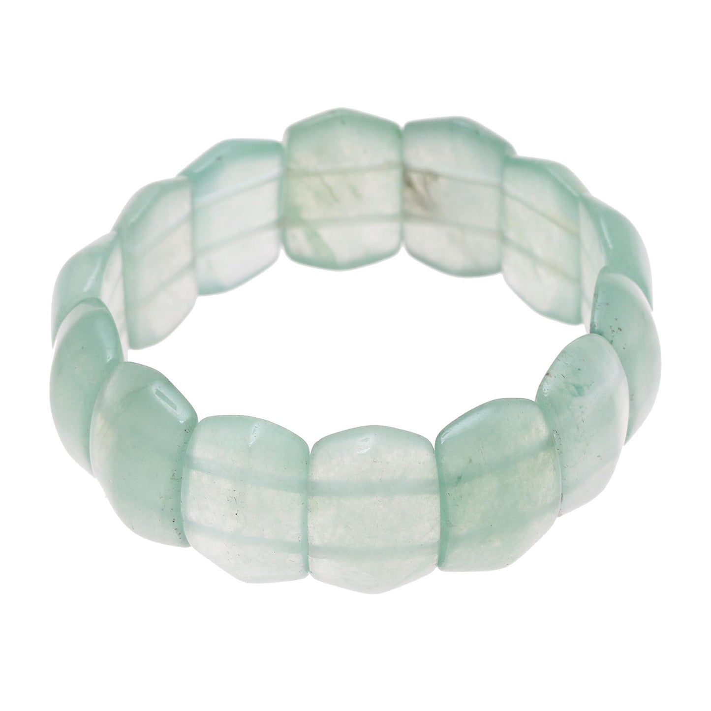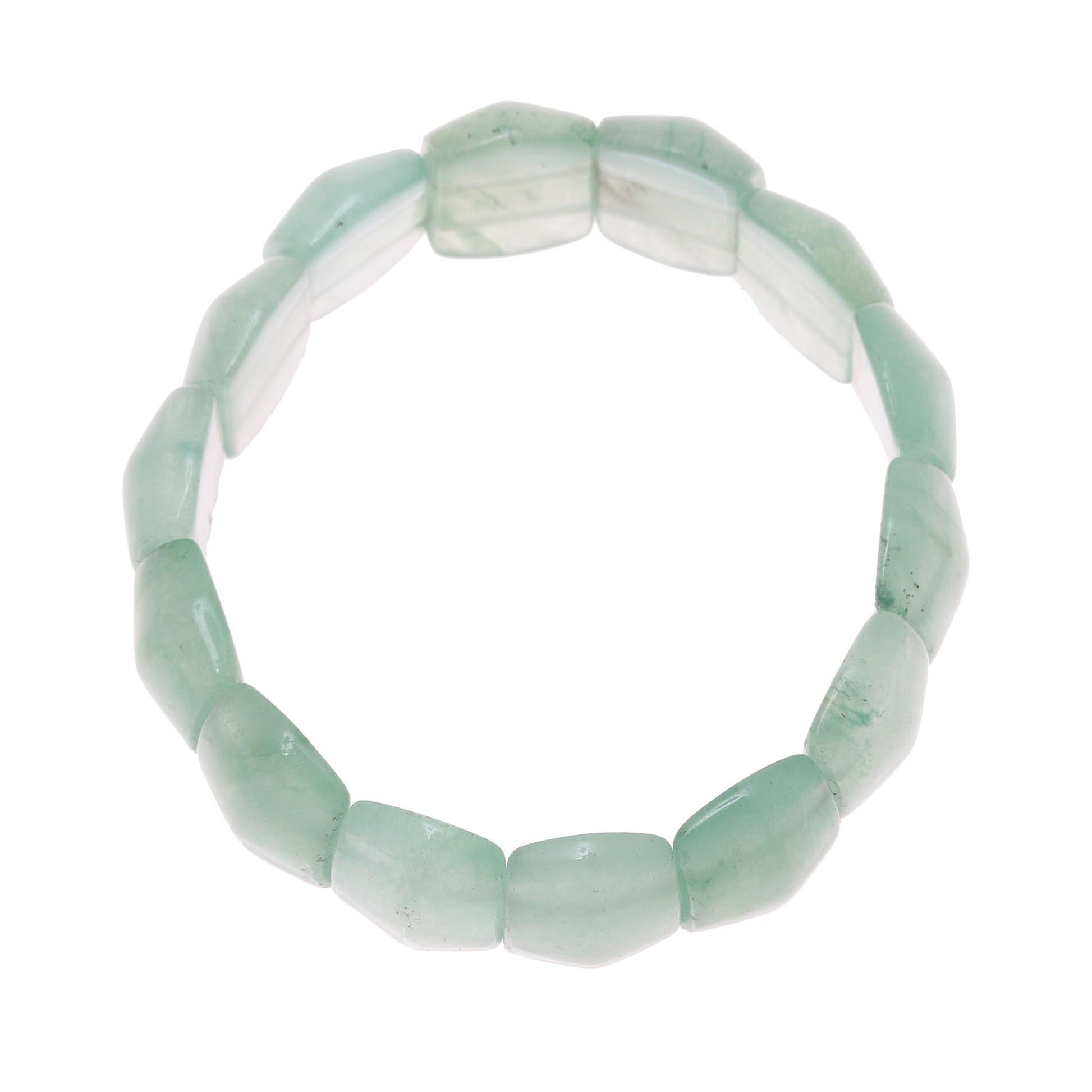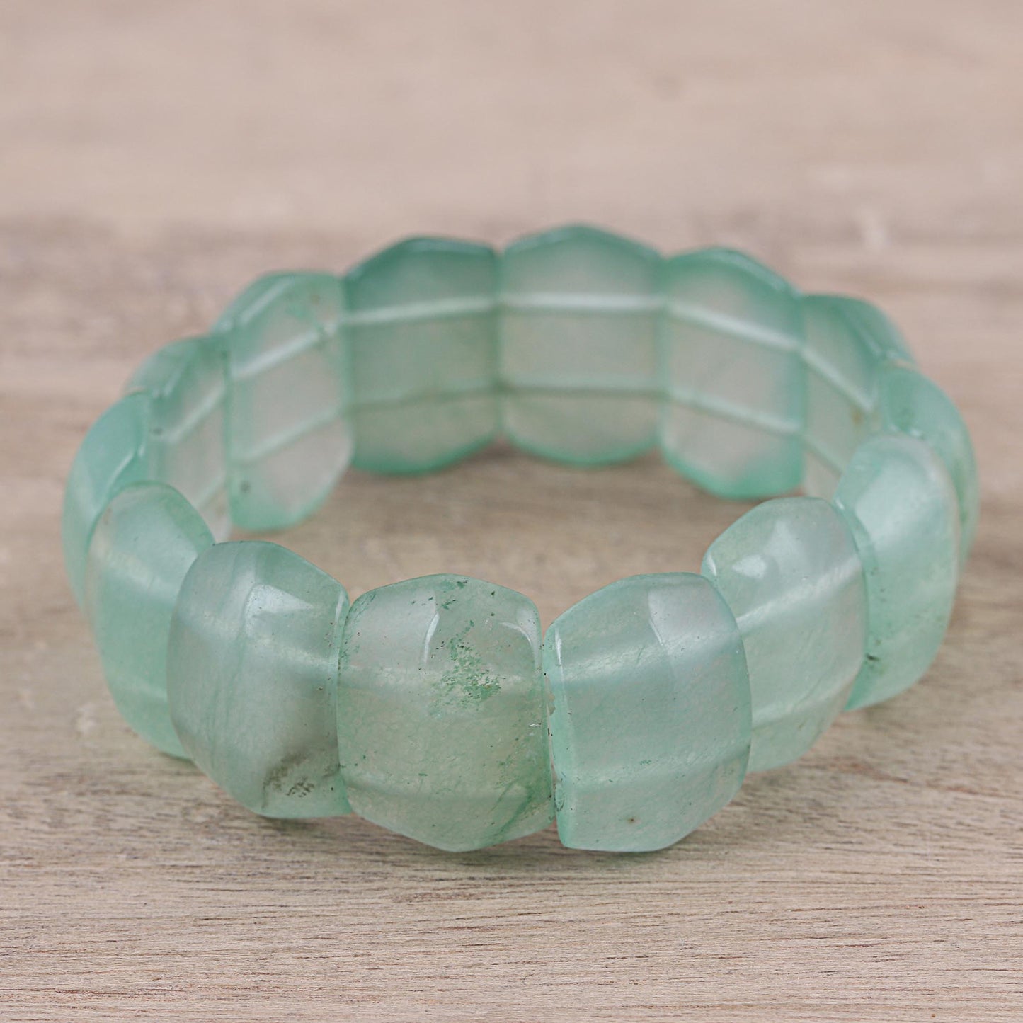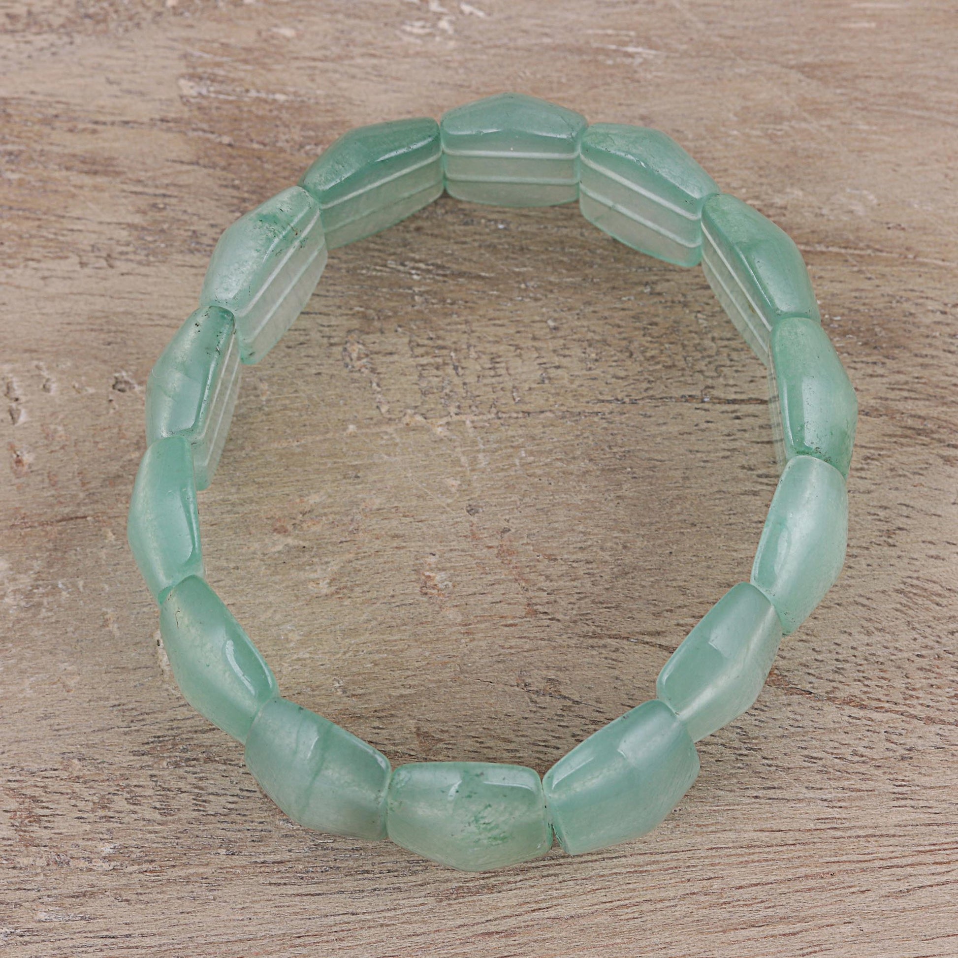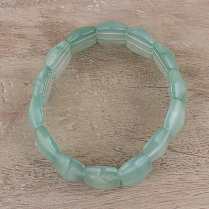 Sea green tones whisper the calming images of ocean beaches and polished sea glass, presented by India's Narayani. Cool aventurine gemstones form a stylish bracelet that is worthy of your jewelry box. This bracelet stretches to better fit the wrist.