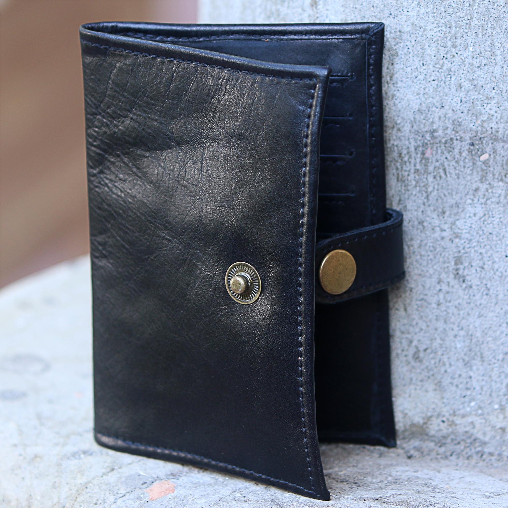 Gringsing Getaway in Black Fair Trade Handcrafted Black Leather Passport Holder