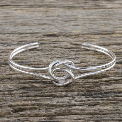 Happy Together Sterling Silver Wire Cuff Bracelet with Center Knot