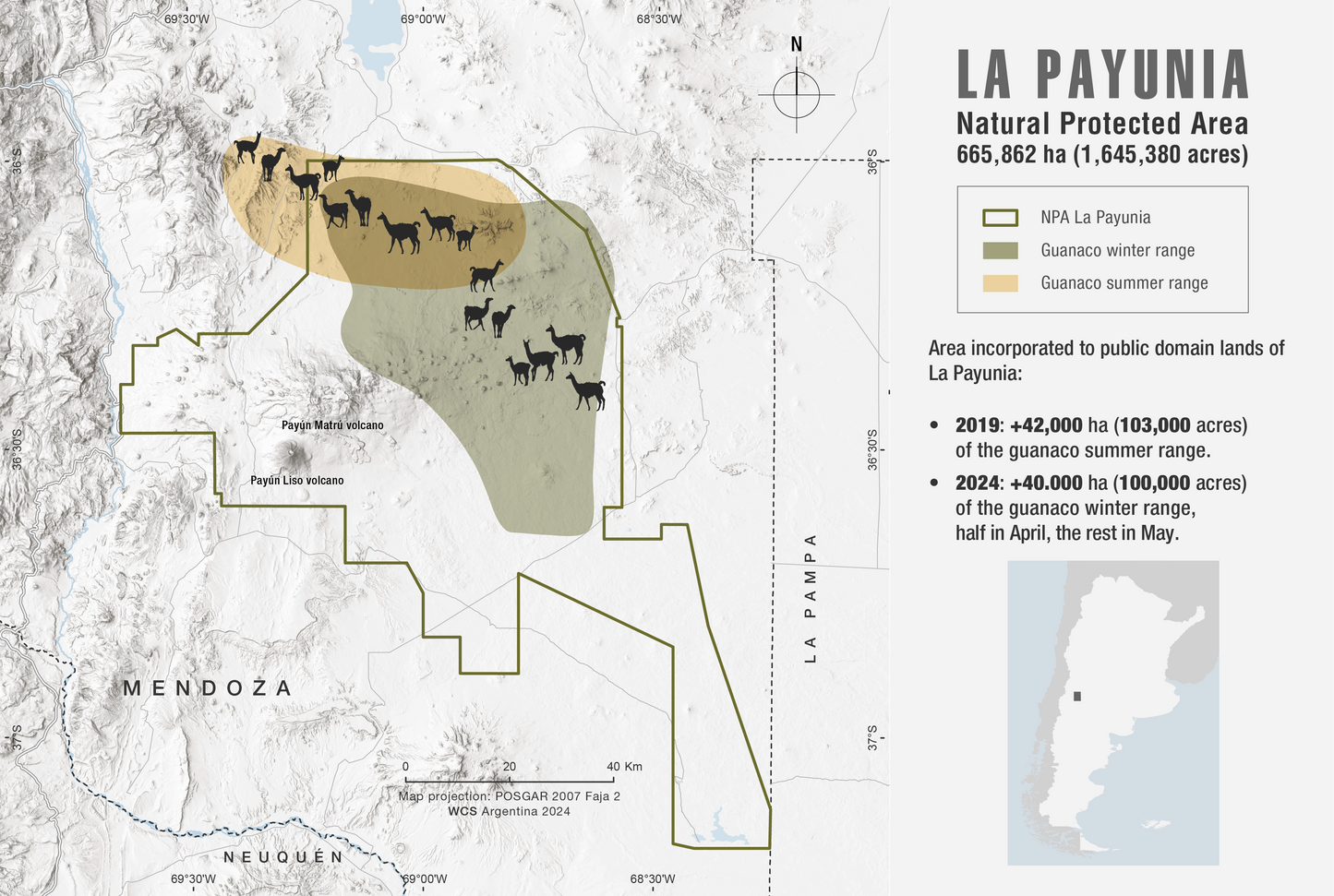The Payunia Provincial Reserve in Argentina’s Mendoza province hosts a variety of wildlife, including endangered Andean cats, pumas, and the largest migratory guanaco herd in the world. At nearly 1.6 million acres, this massive reserve covers an area nearly as large as the state of Delaware. Unfortunately, livestock in the area have competed with guanacos for food and water, leading to overgrazing and limited food supply.