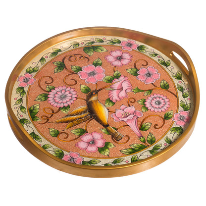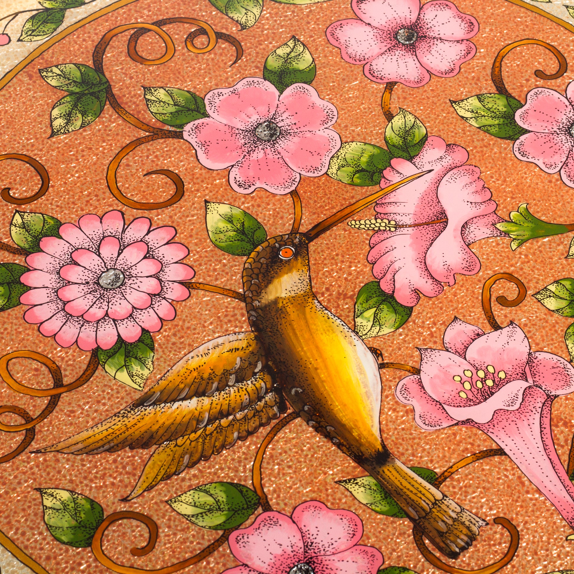 Highland Hummingbird in Rose Hummingbird Motif Reverse-Painted Glass Tray