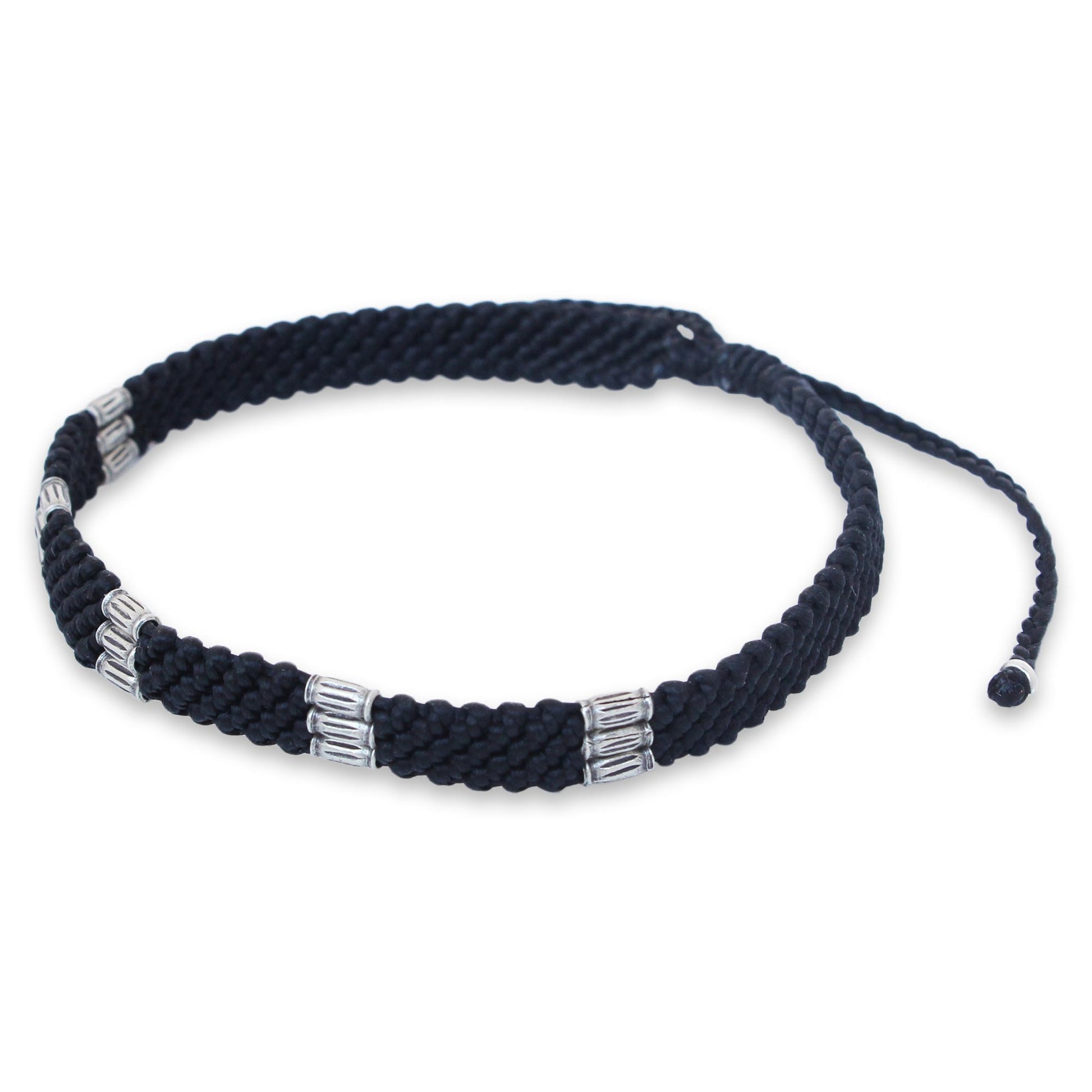 Silver beads reveal the artistry of Thailand's hill tribes, each one shaped to resemble a grain of rice. By Napapat, this textured bracelet is knotted by hand to showcase the beads in beautiful symmetry. It slips over the wrist, and the length can be adjusted by sliding the knot along the cords.