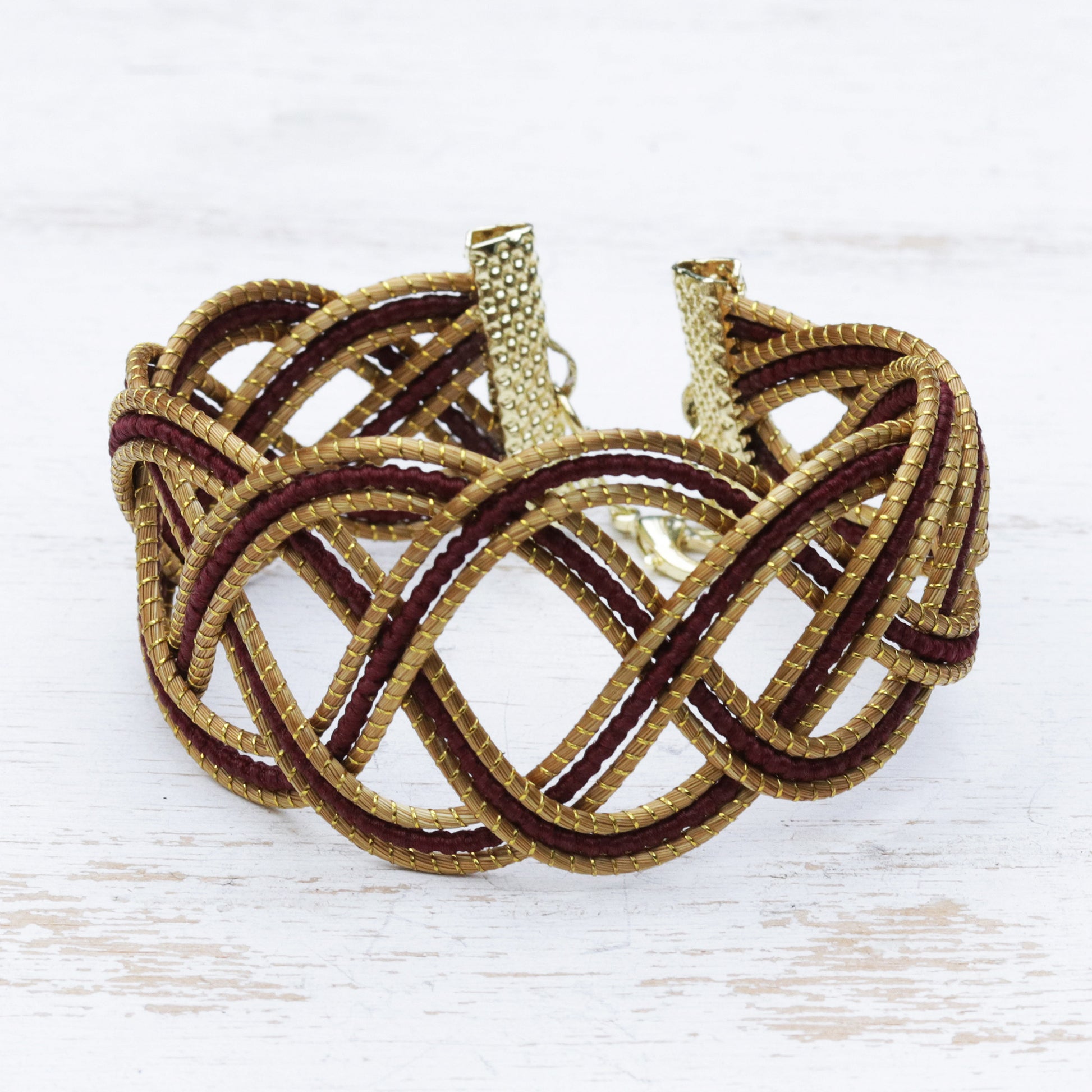 Infinite Braid in Currant Golden Grass Bracelet with 18k Gold Clasp