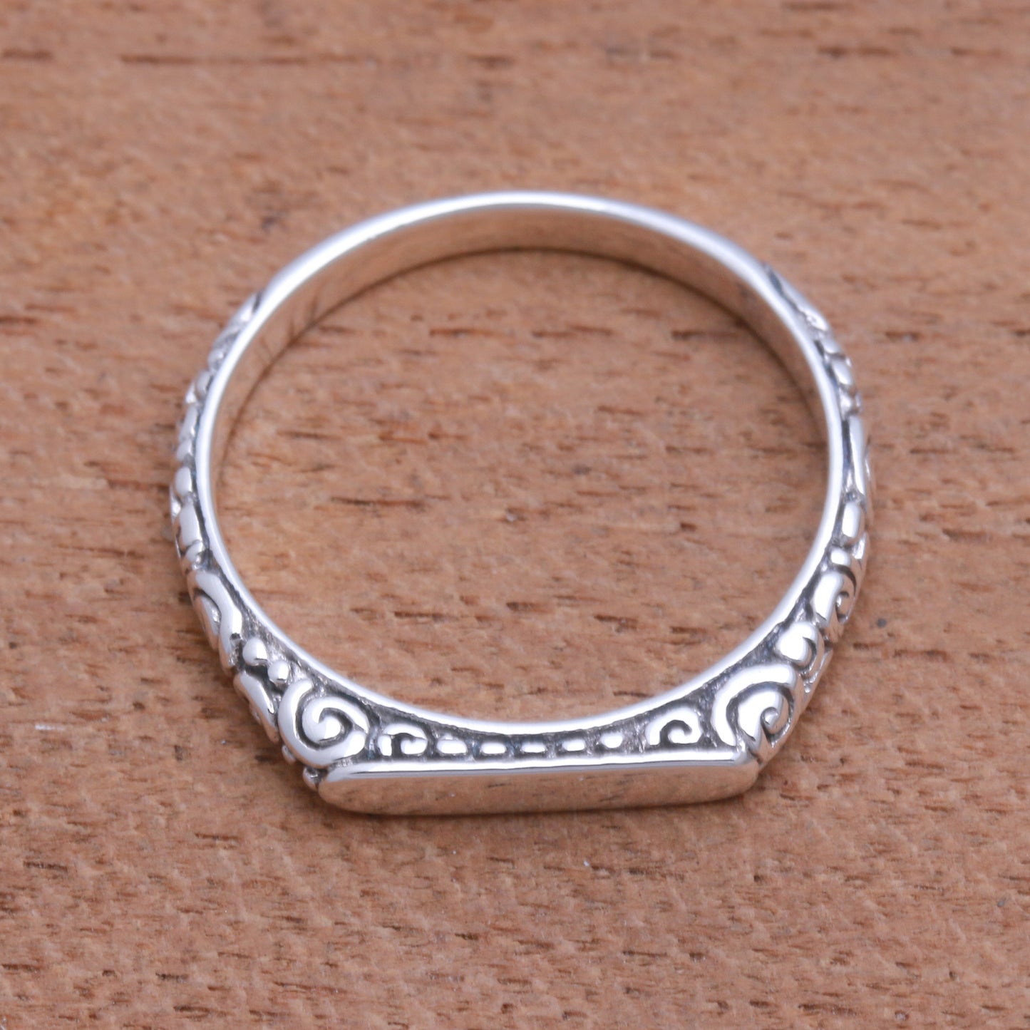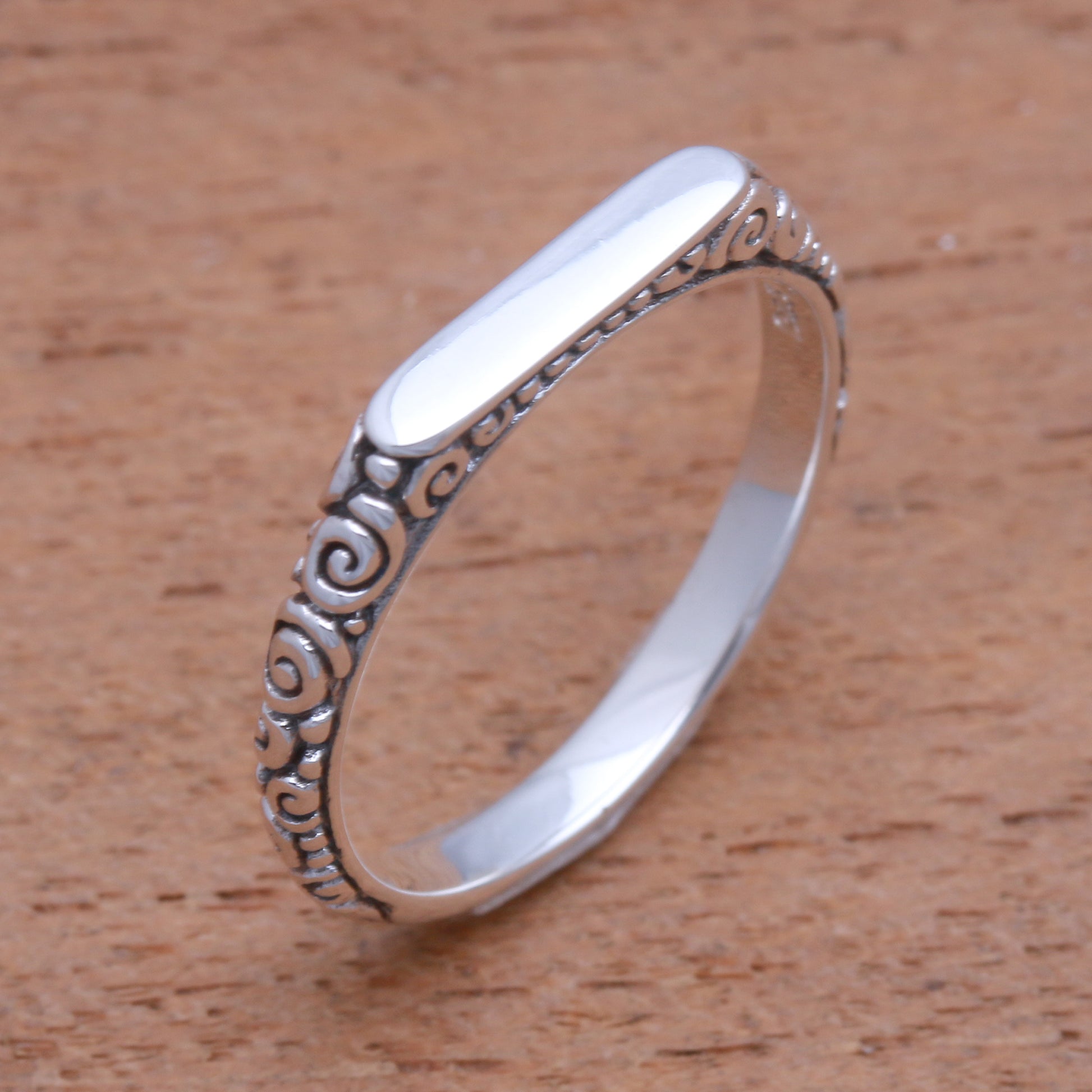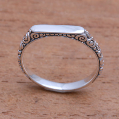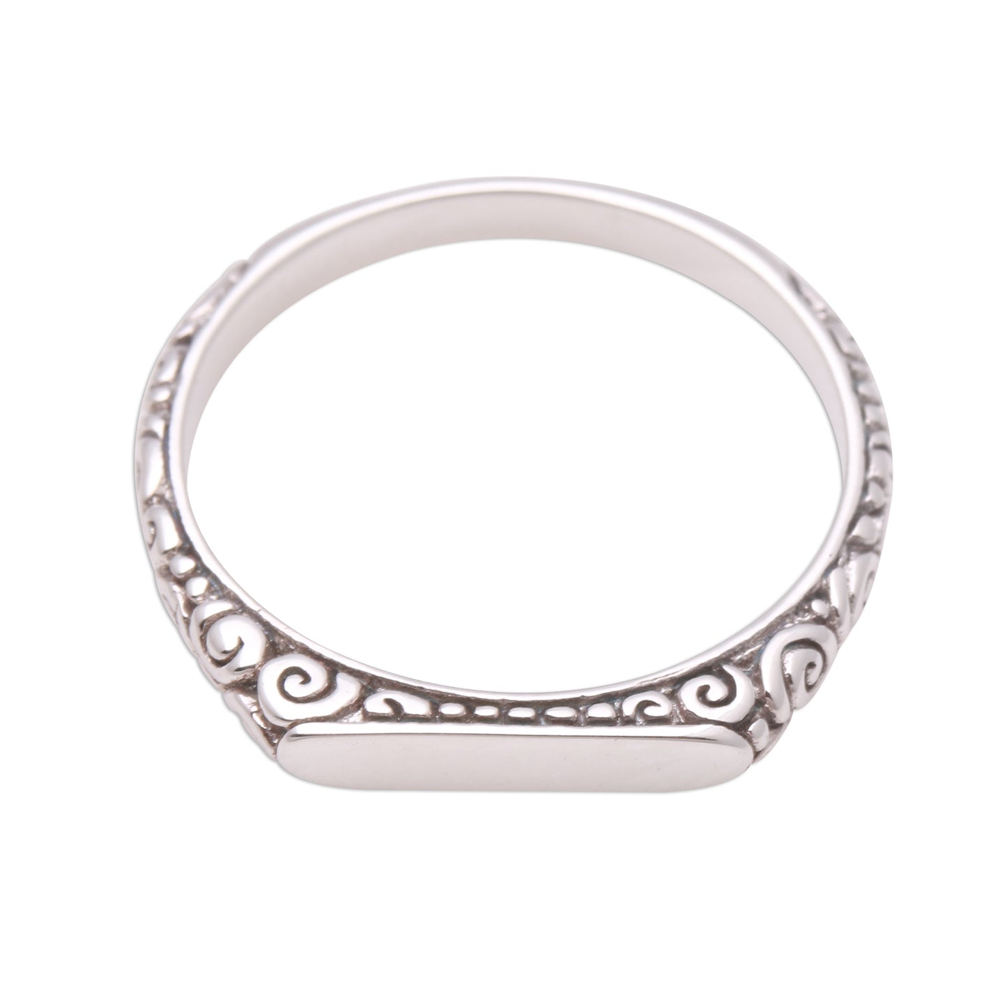 Intaglio Curls Swirl Pattern Sterling Silver Band Ring from Bali
