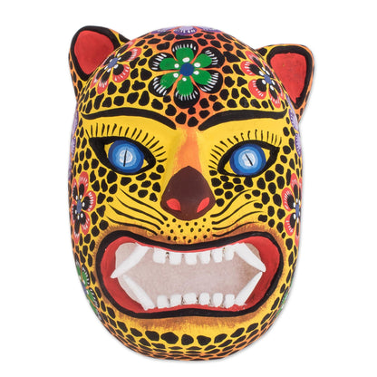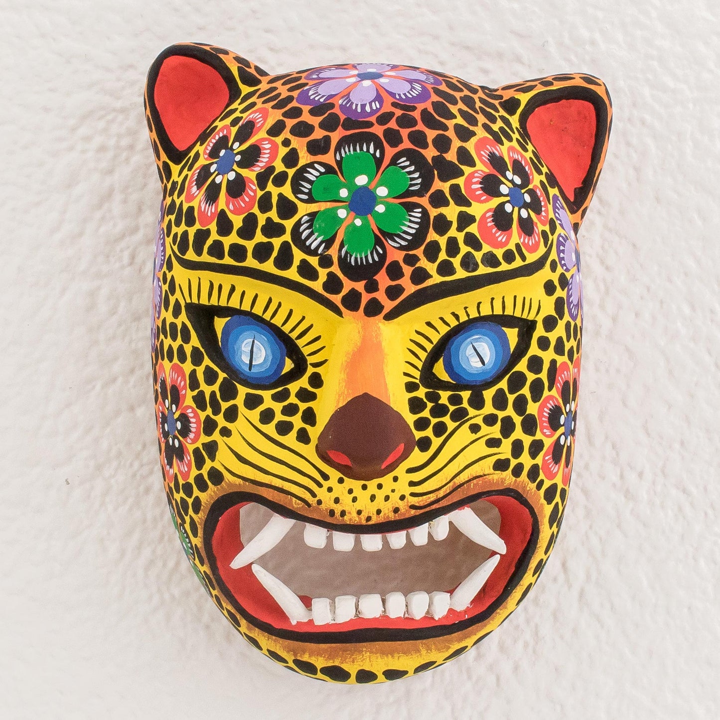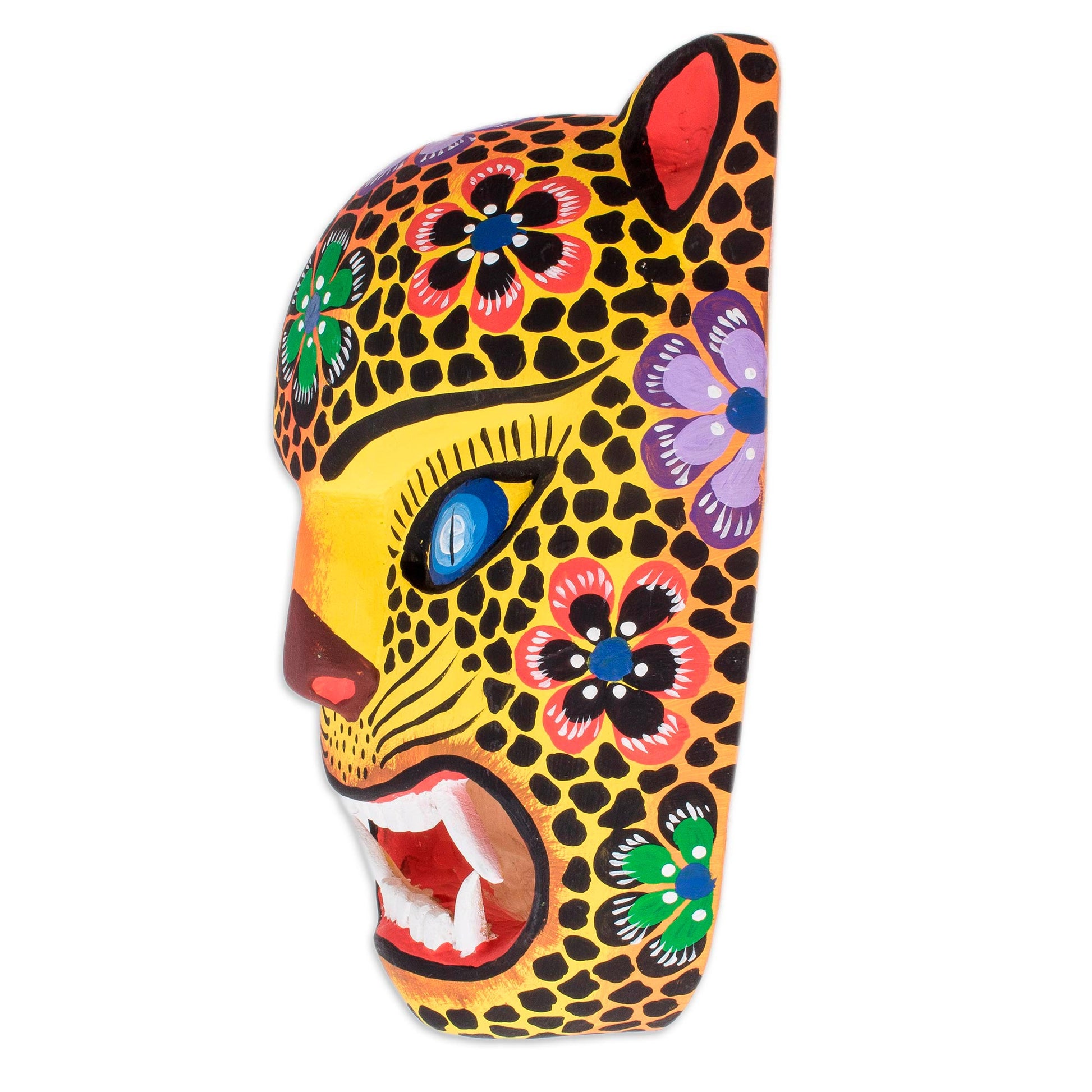 Jaguar Guardian Hand-Painted Wood Jaguar Mask from Guatemala