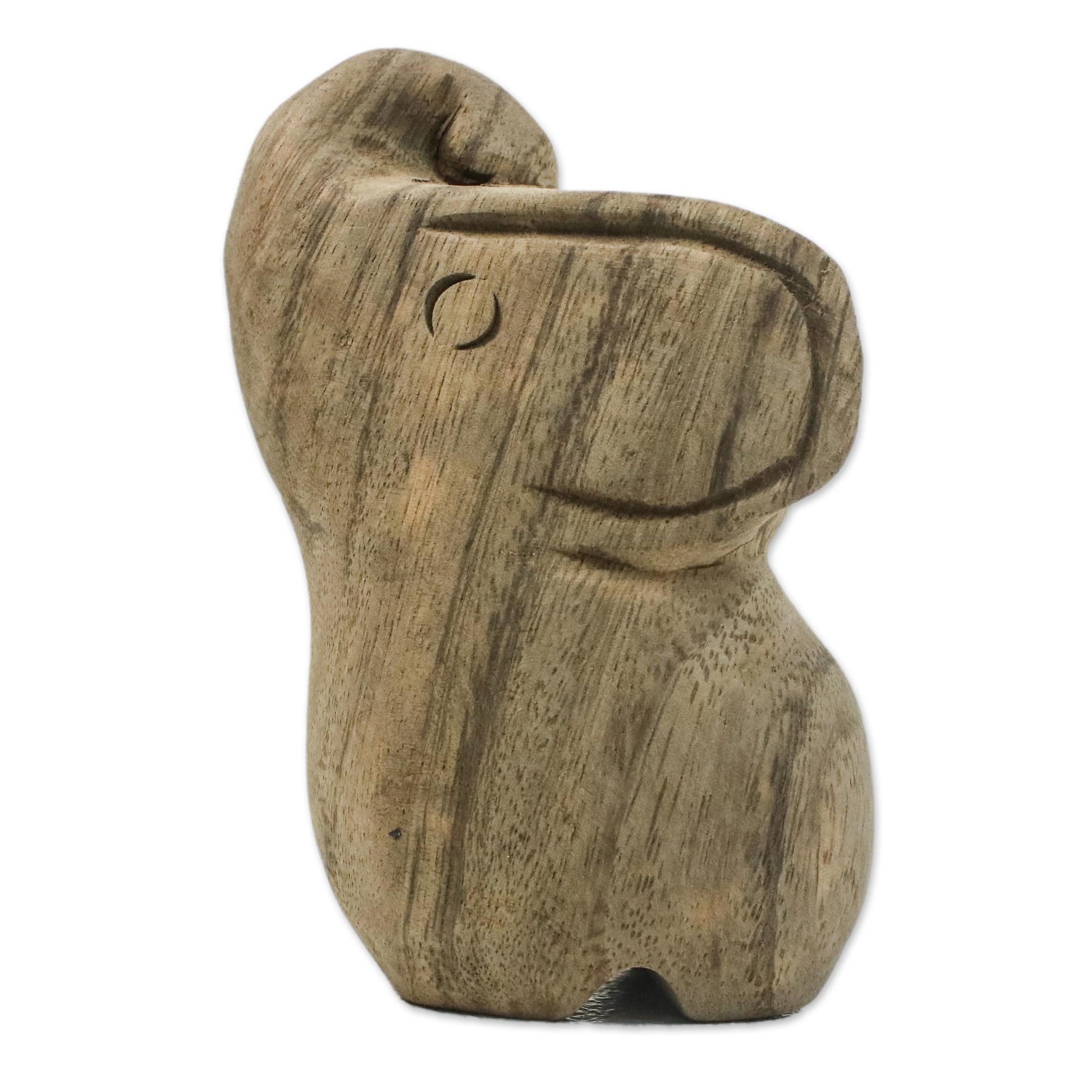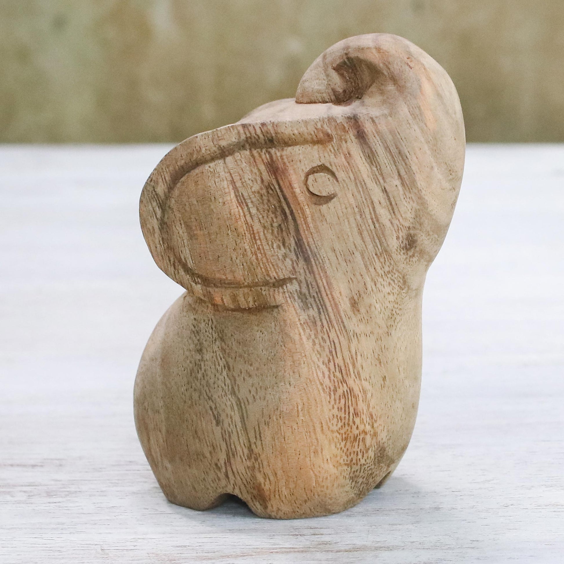 This wonderful wood elephant is created in Thailand by Jaifah Aksornsri using techniques taught to her by parents. The beautiful statuette is handcrafted from native raintree wood and finished naturally, which accentuates its charming appeal. The name Khan Kluay comes from the main character in a popular family film in Thailand that follows the journey of a young elephant in becoming a war elephant for King Naresuan, who once led the ancient Ayutthaya Kingdom of Northern Thailand.