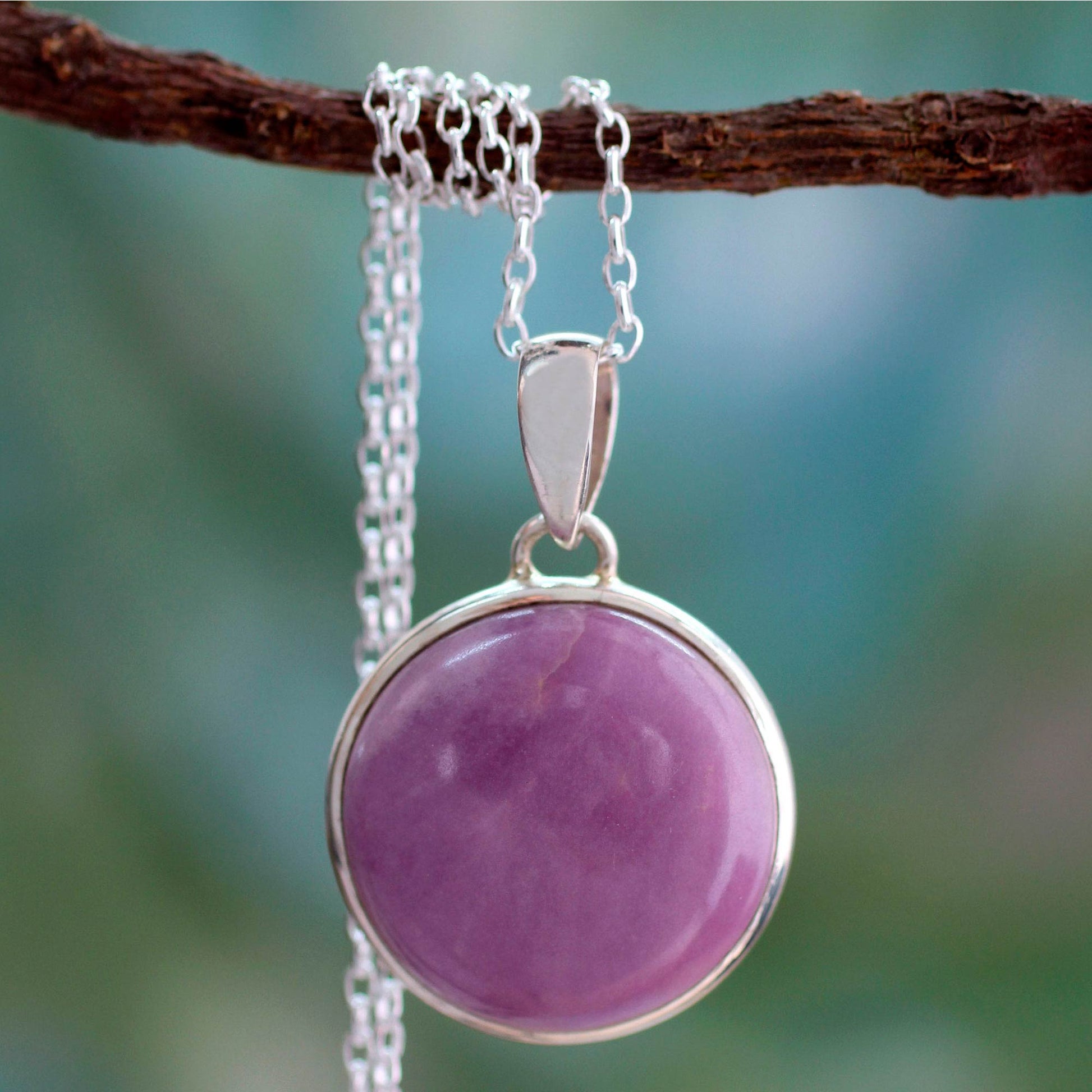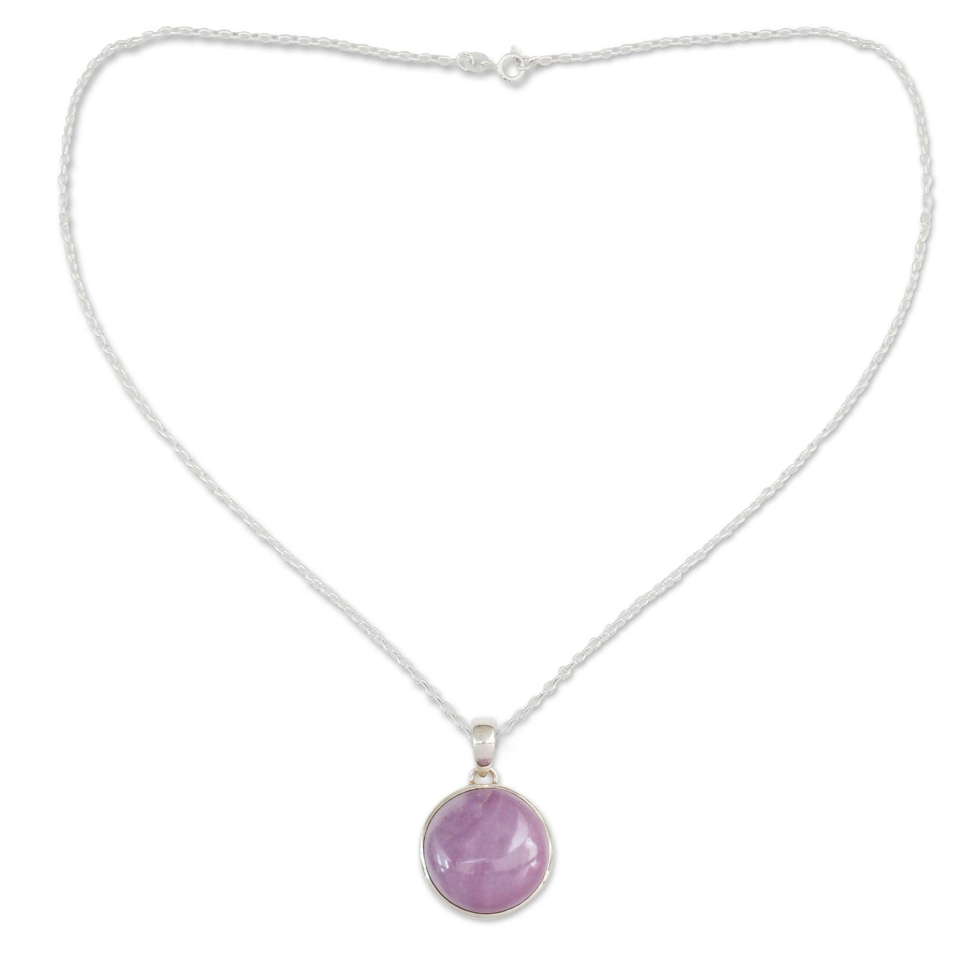 Alok Jain highlights the lavender pink hue of phosphosiderite in the design of this necklace. Set in sterling silver, the pendant is worn on a handsome cable chain.