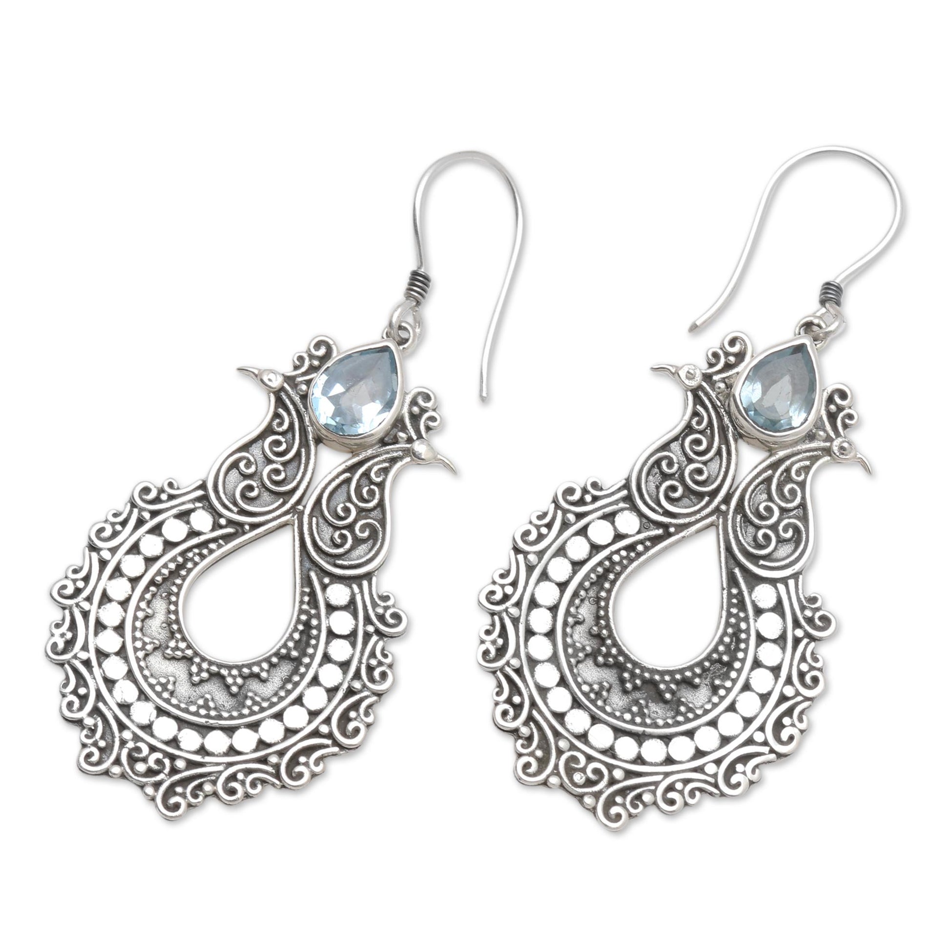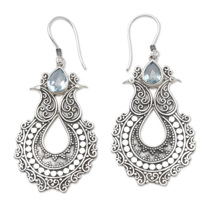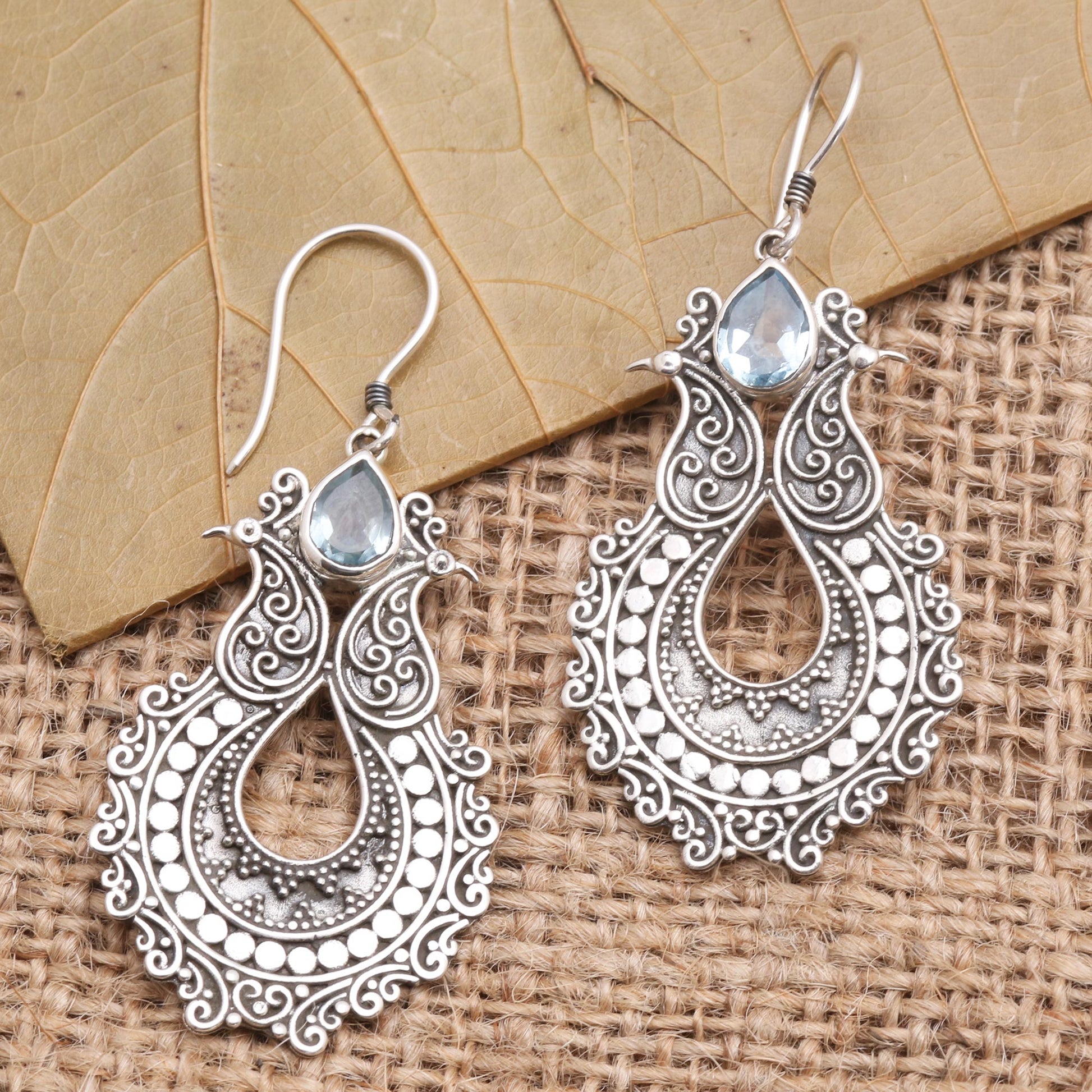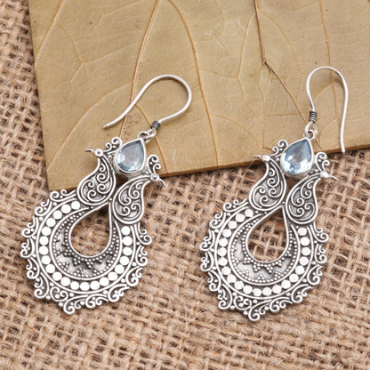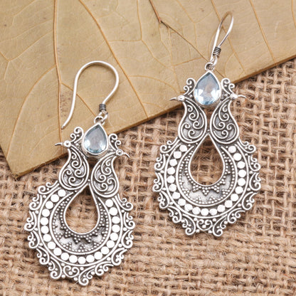 Lavish Sky Blue Topaz Dangle Earrings Artisan Crafted in Bali