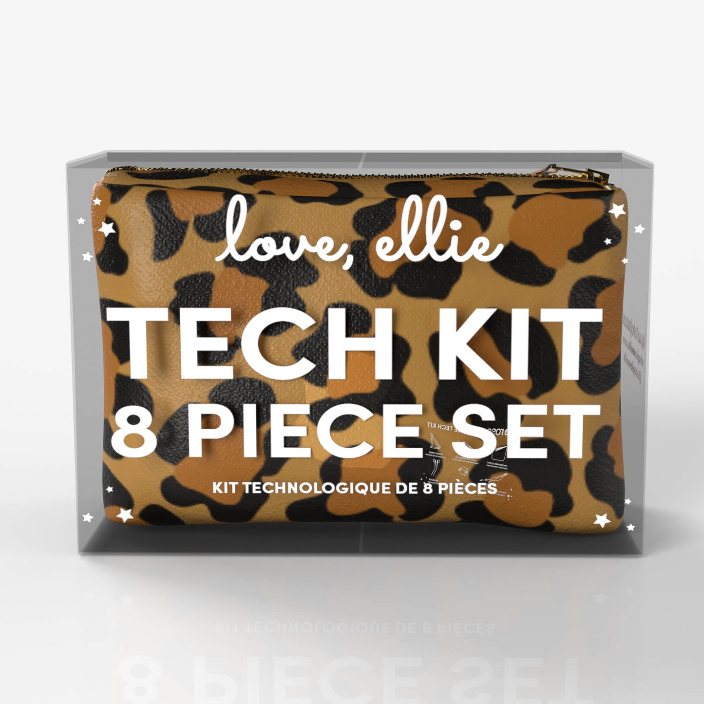 All the tools you need to take your tech on-the-go conveniently tucked inside a petite vegan leather pouch with tie-dye print. Includes universal 3-in-1 charging/data cable, USB wall adapter, earbuds, phone stand, microfiber screen cloth, and 2 vegan leather cable organizers, all inside an adorable, reusable pouch. Perfect for traveling! Compatible with most devices - Apple, Android, tablets, and more.