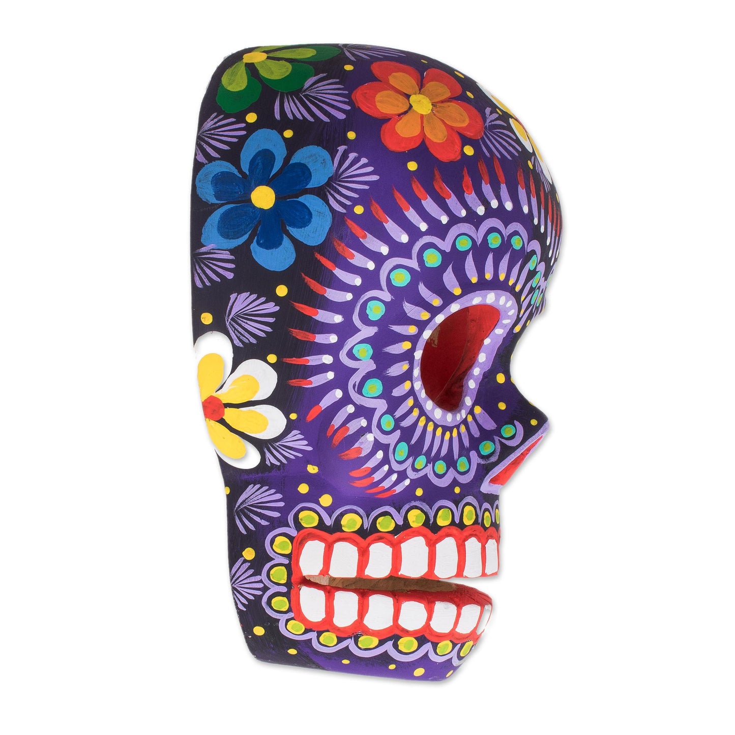 Life Eternal Floral Skull Wood Wall Mask from Guatemala