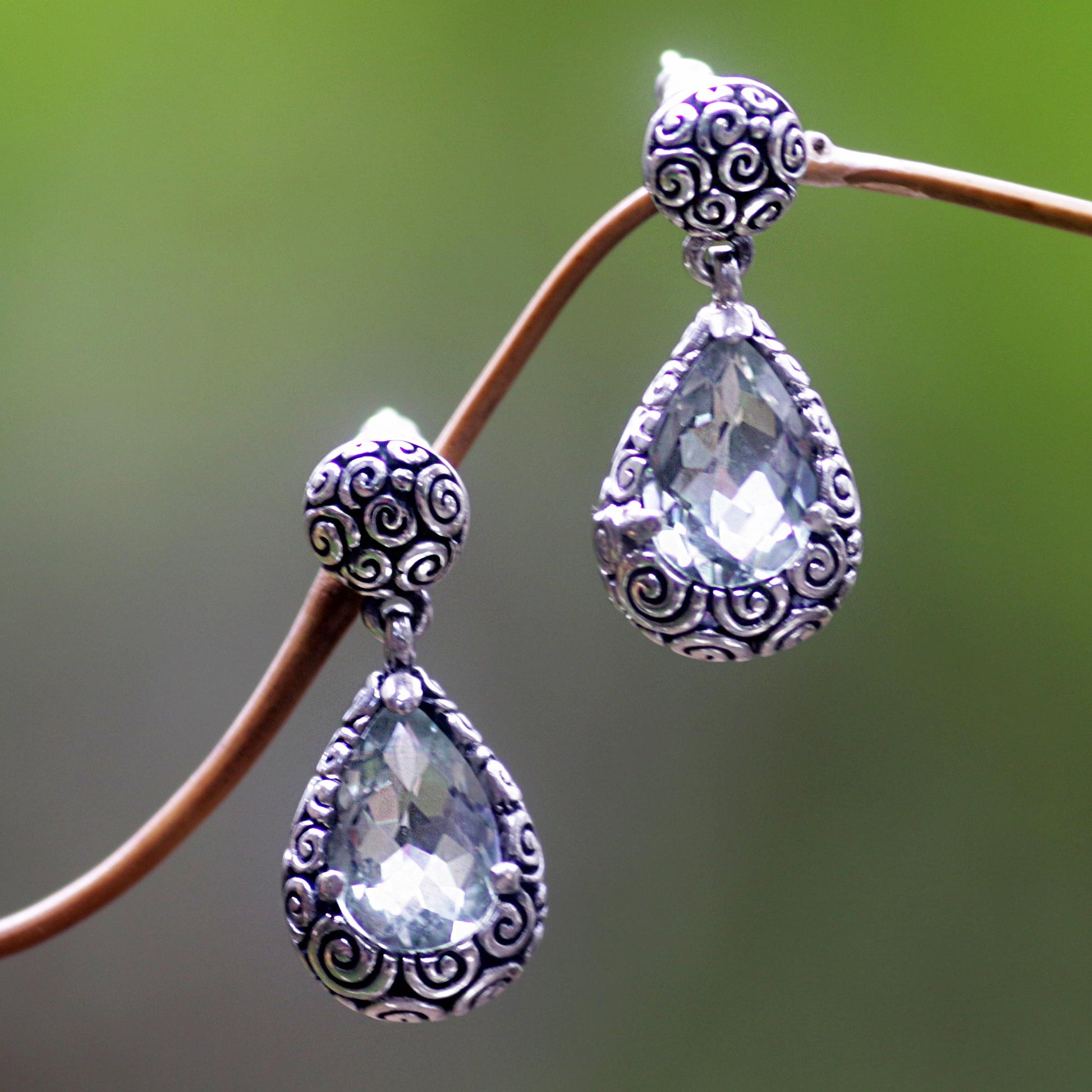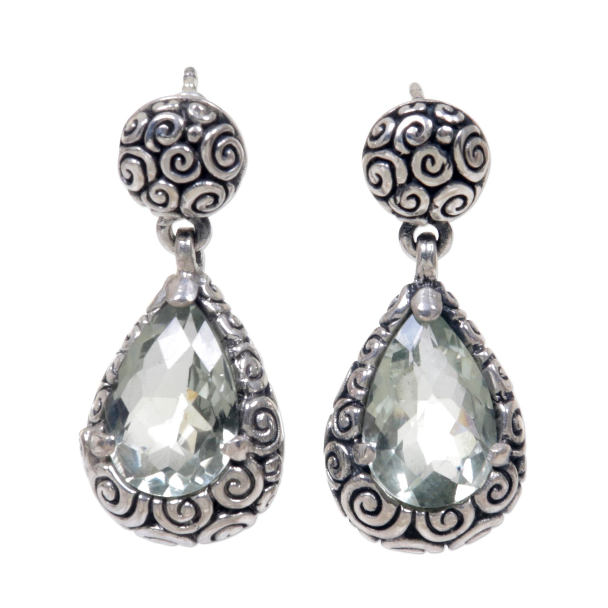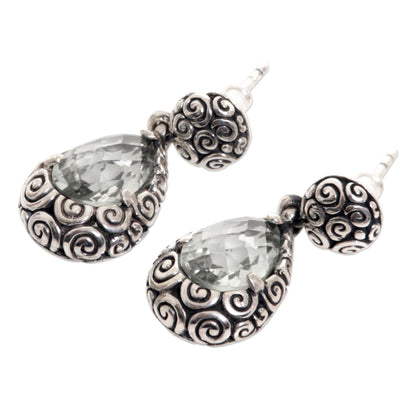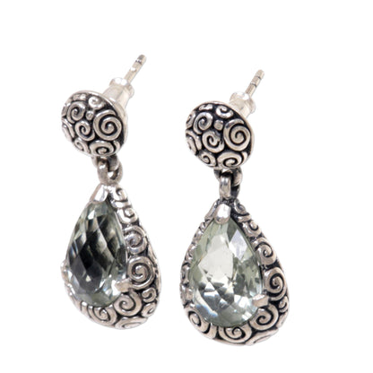 Lime Teardrops Prasiolite Sterling Silver Dangle Earrings from Bali