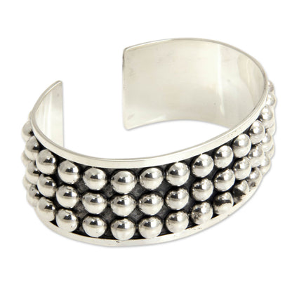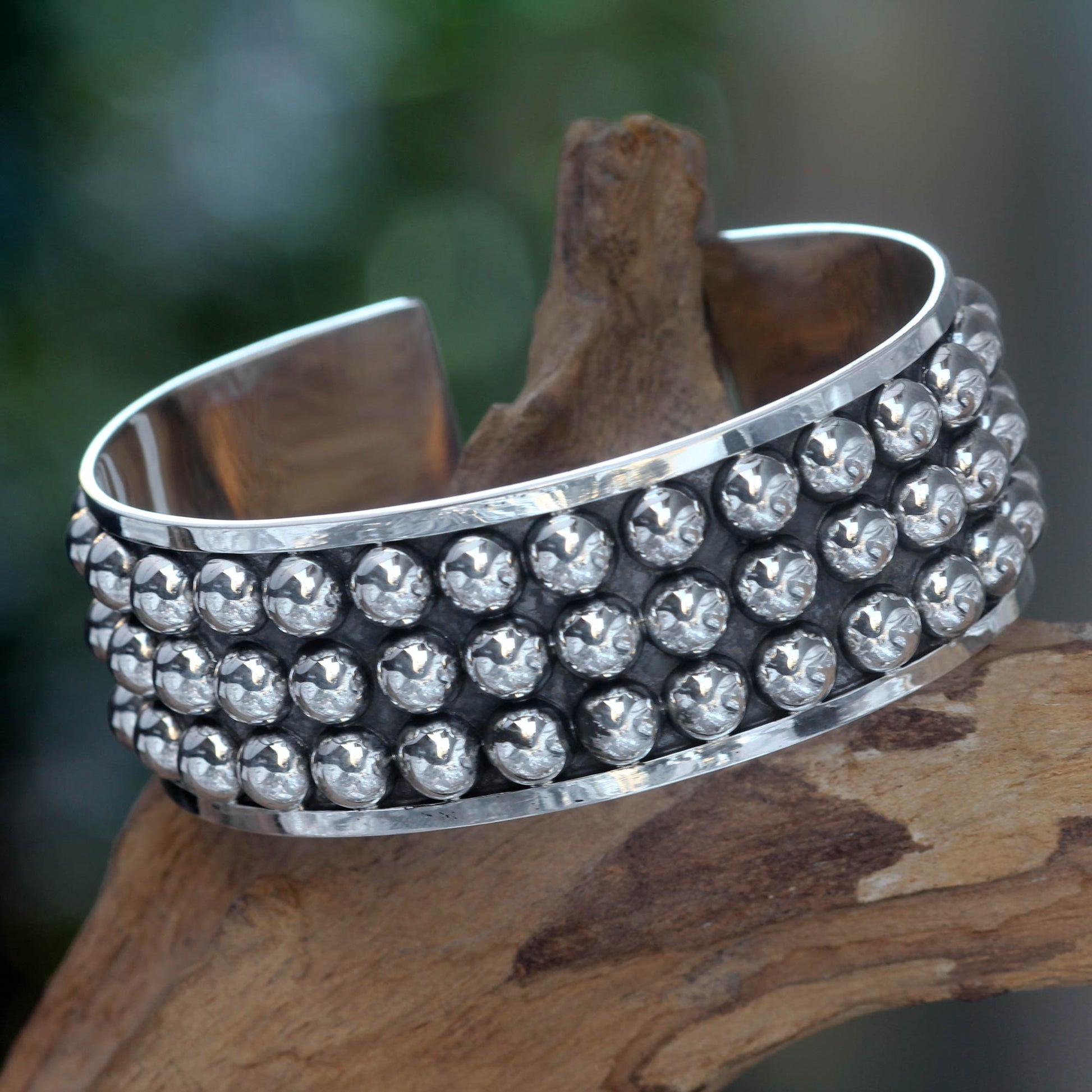 A beautiful bold bracelet with beads of sterling silver that make a stunning statement. Wayan Sarjana handcrafts this piece according to millinery techniques, including the specialized treatment to achieve a darkened look.