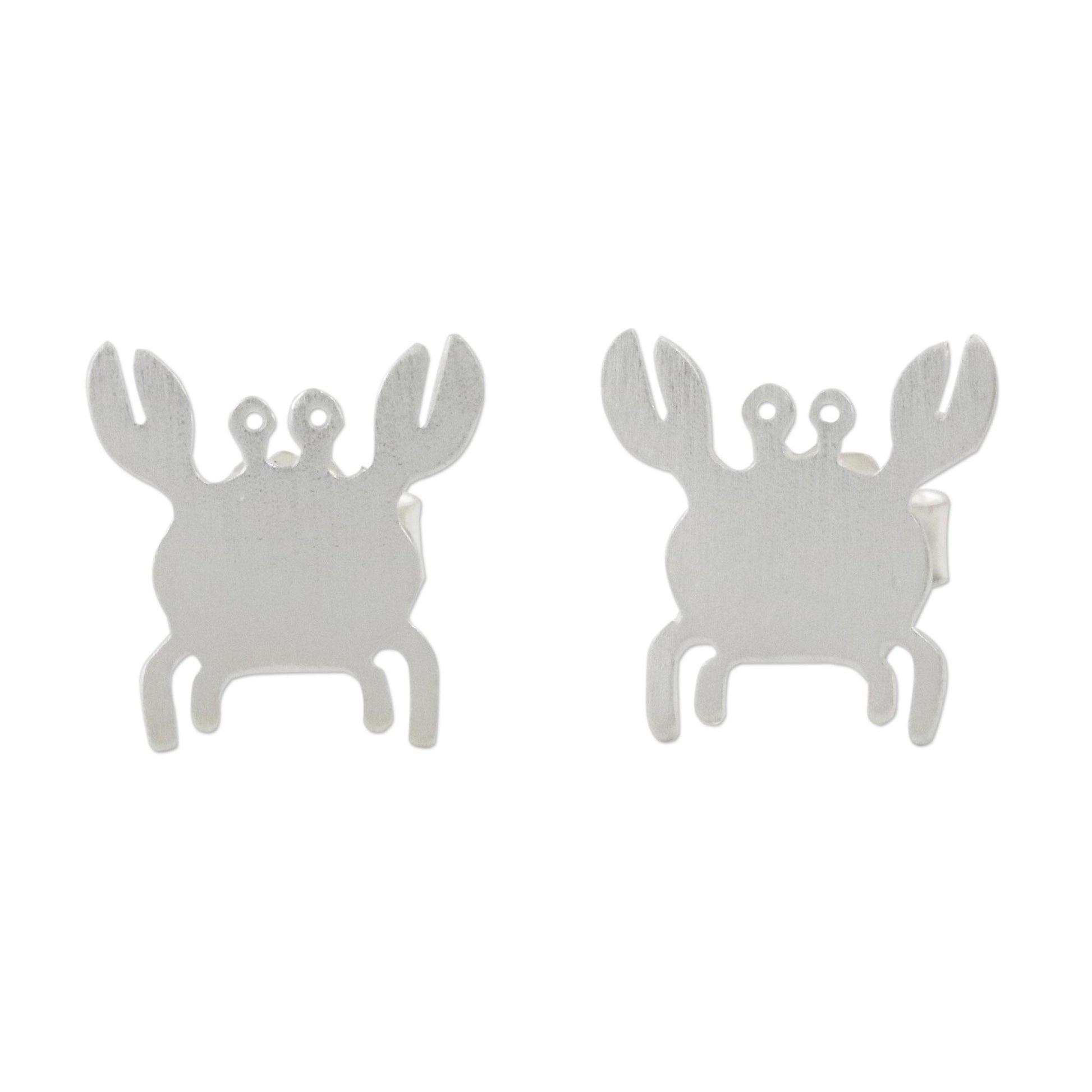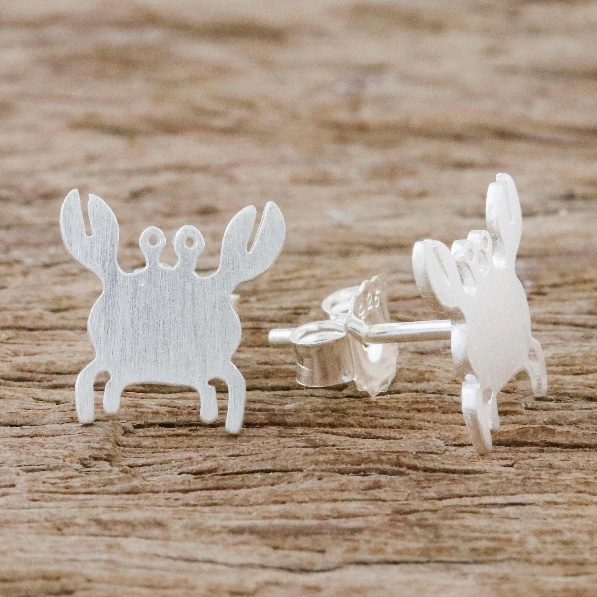 Lovers of crustaceans will adore this charming pair of stud earrings from Thailand. Artisan Sarote Lochotinunt handcrafts the cute dancing crabs from sterling silver, completing the lovely design with a shimmering brushed-satin finish.