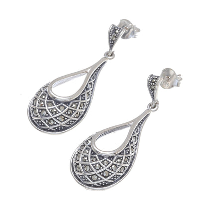 Lovely Dew Sterling Silver and Marcasite Dangle Earrings from Thailand