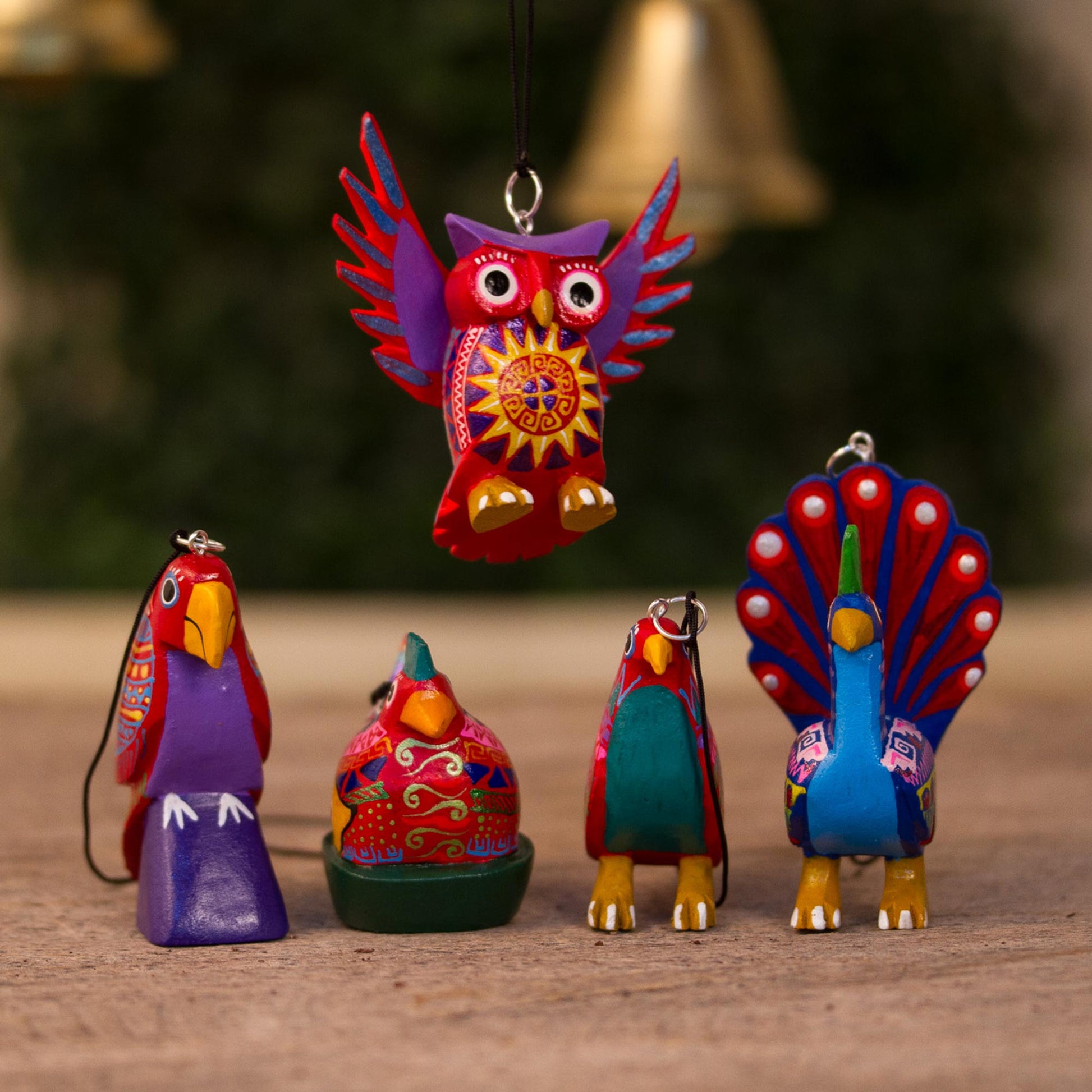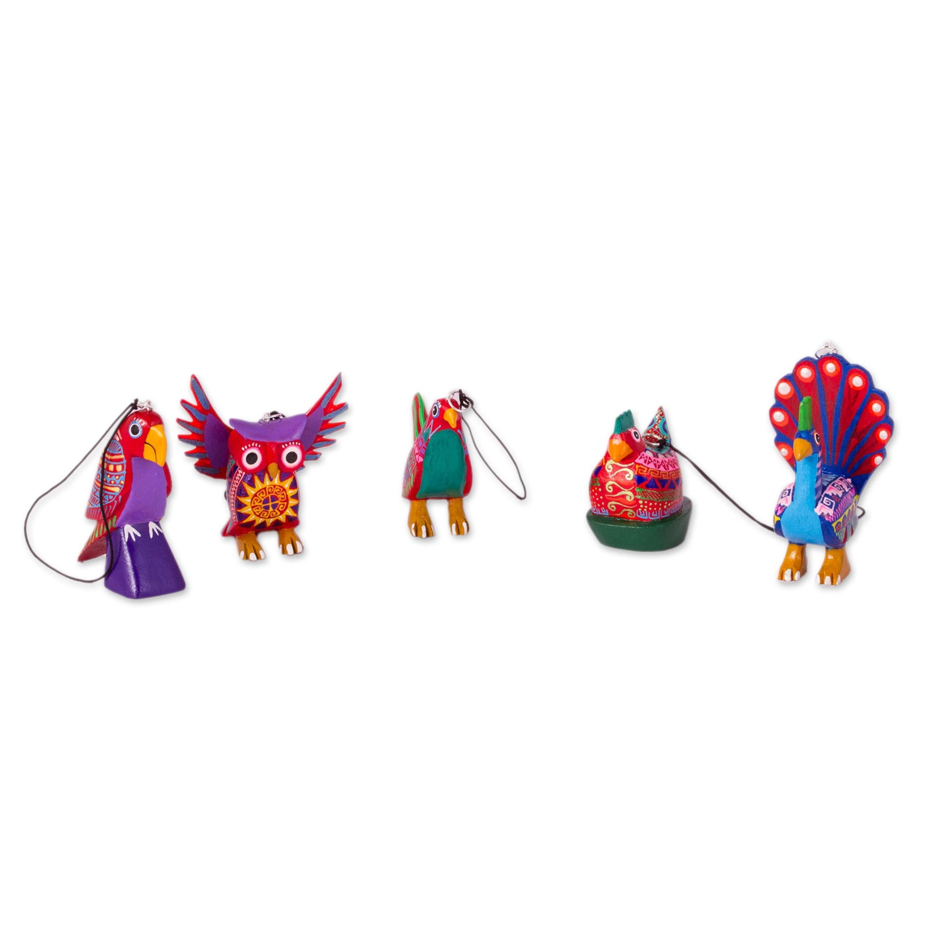 Magic Birds Hand-Painted Wood Alebrije Bird Ornaments (Set of 5)