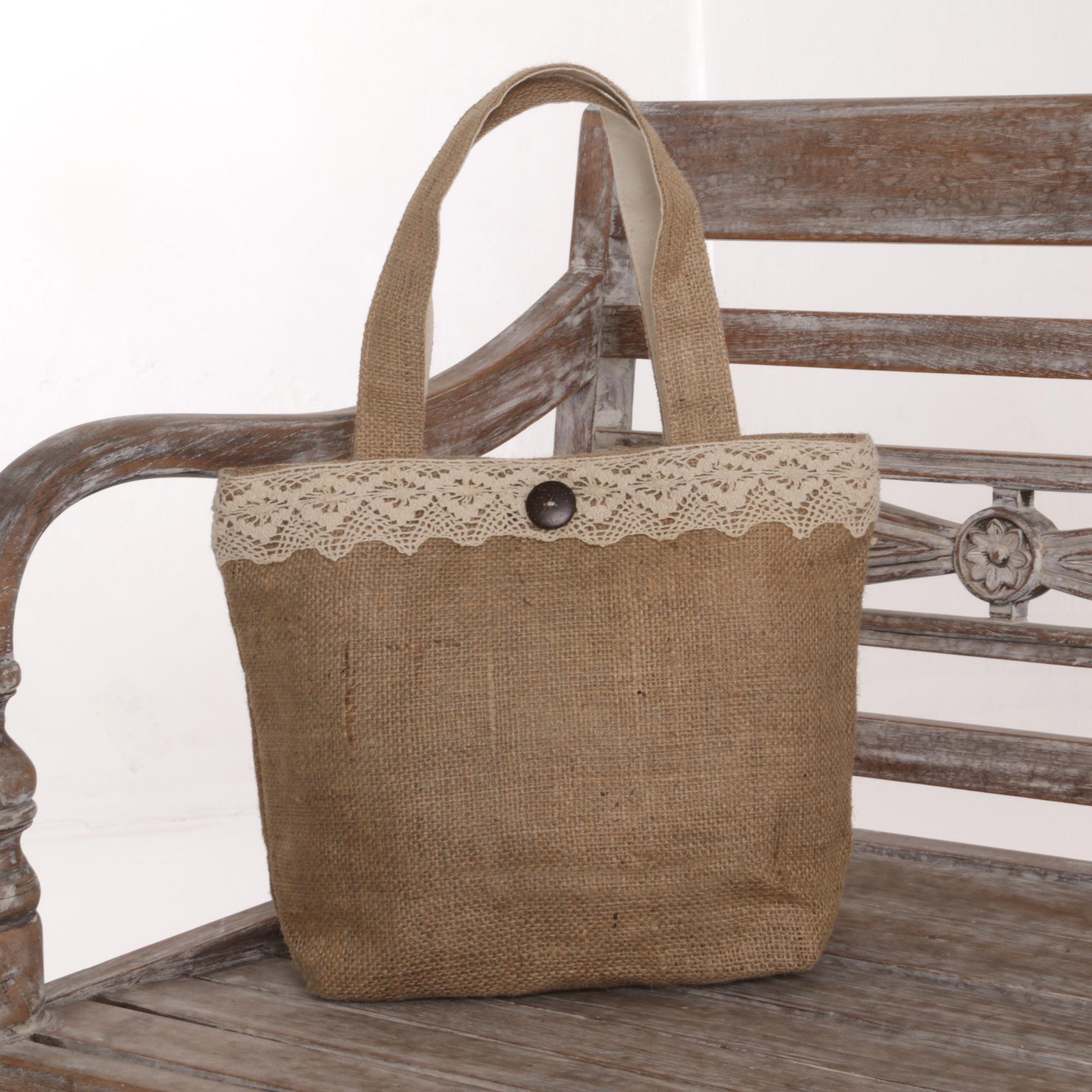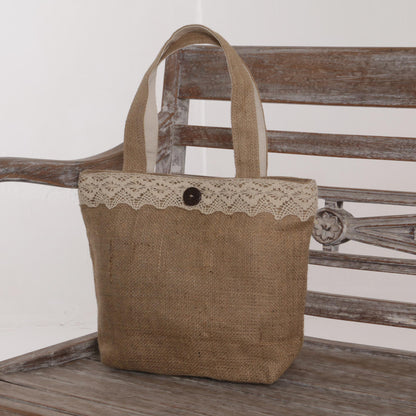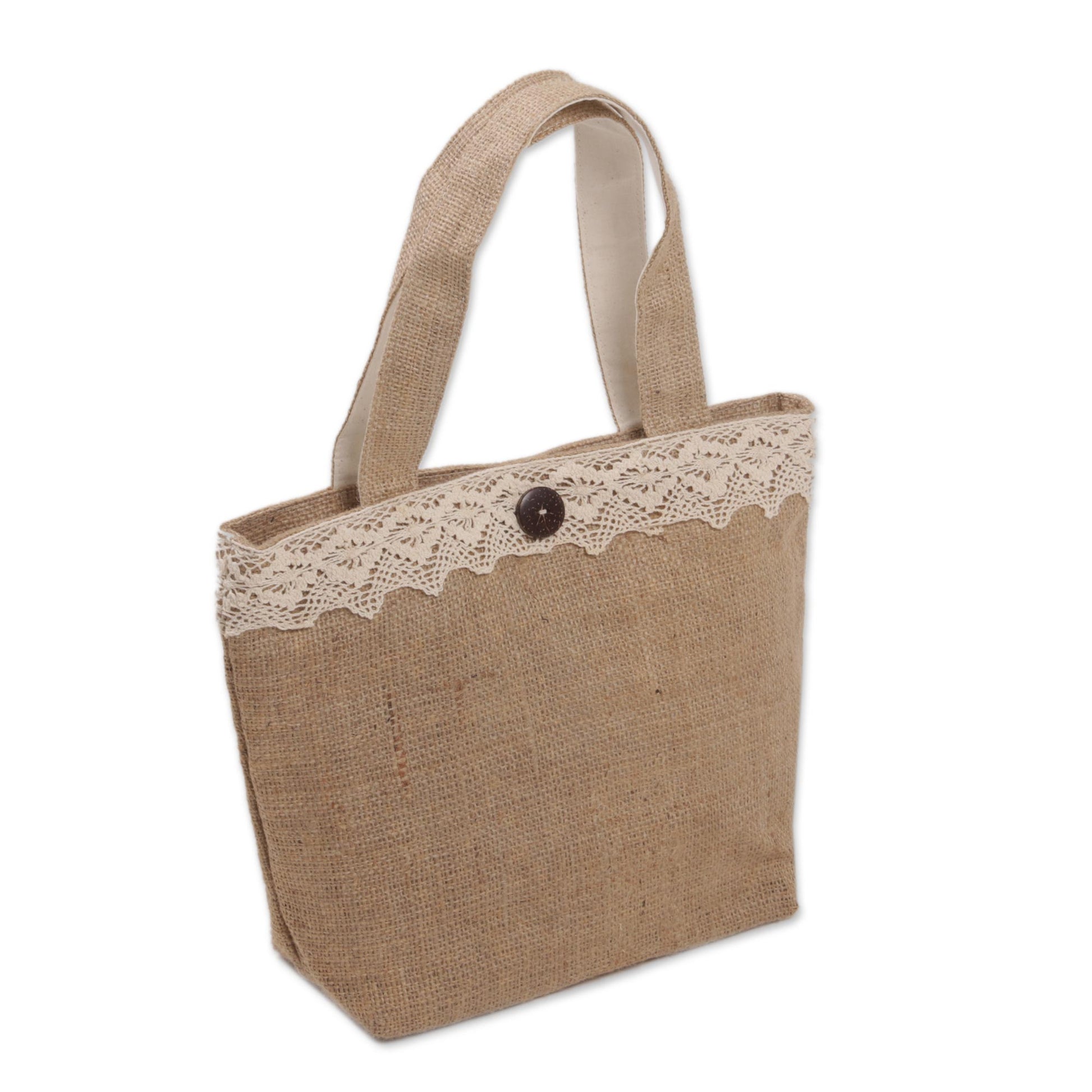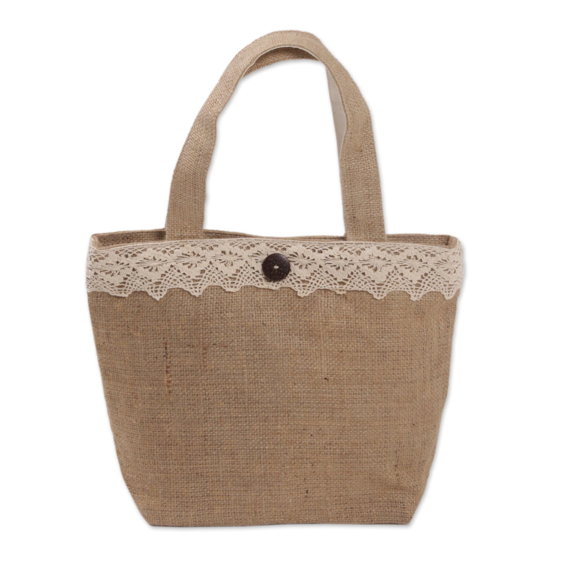 Malioboro Grove Natural Jute Tote Bag with Lace Trim and Coconut Shell