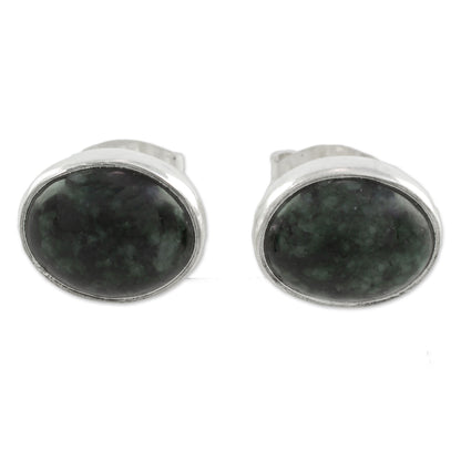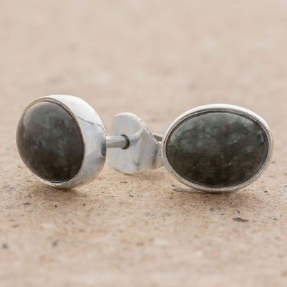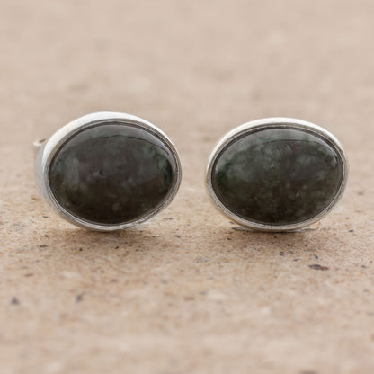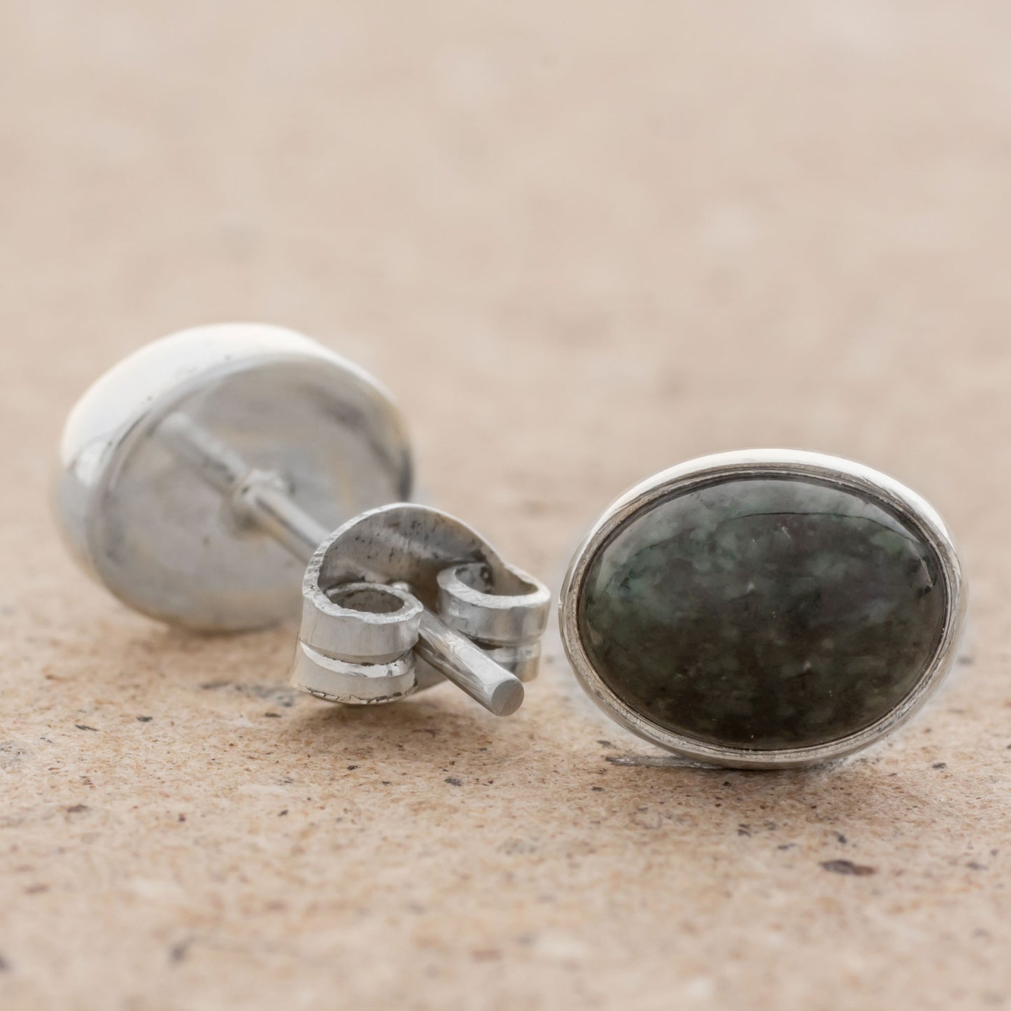 Mayan Ovals Green Jade and 925 Silver Oval Stud Earrings from Guatmela