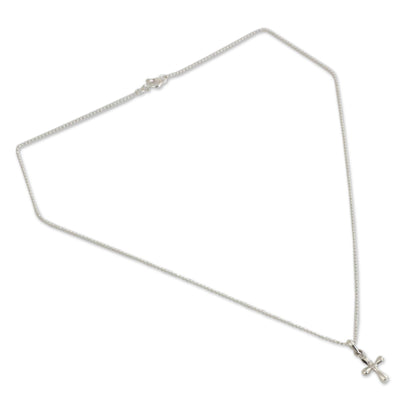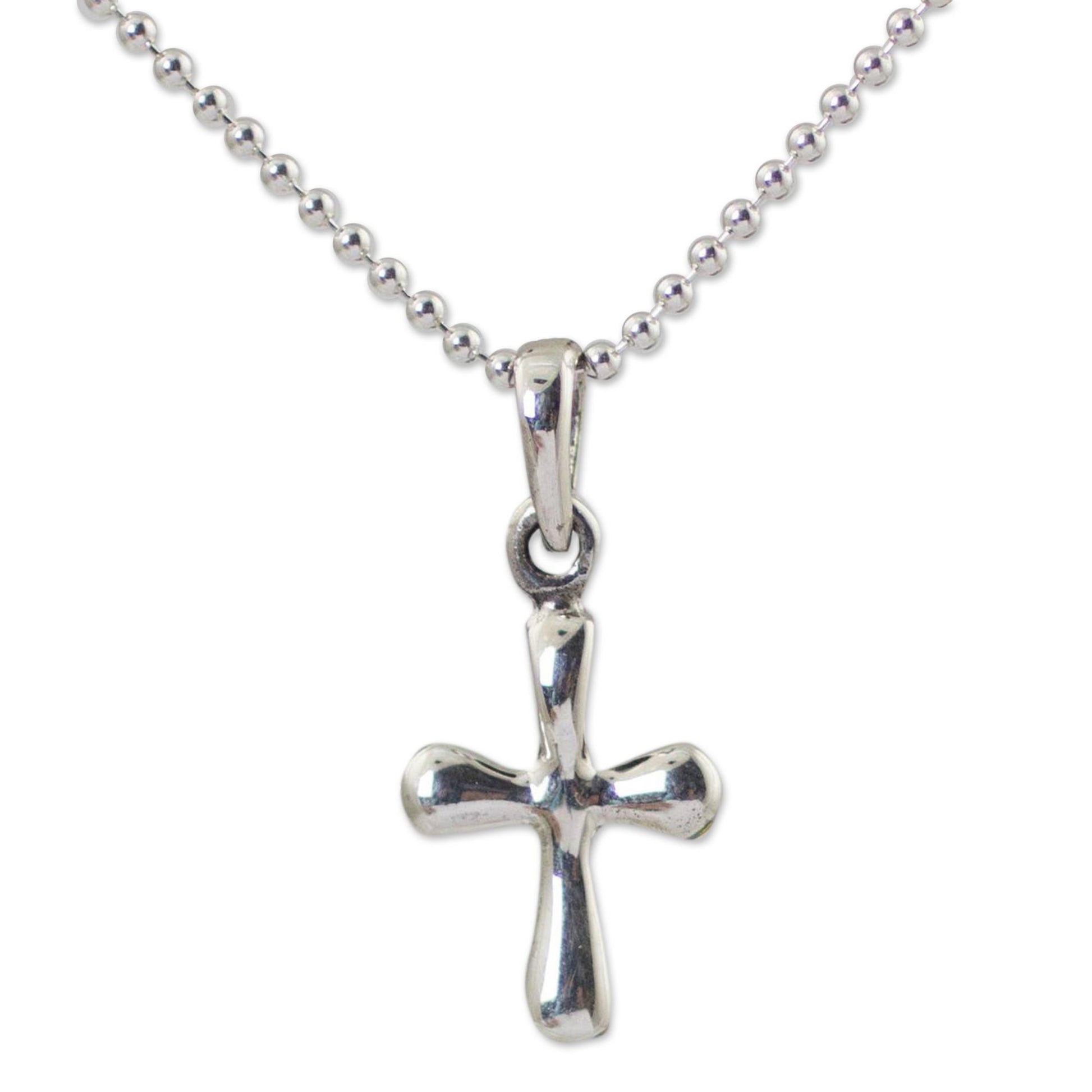 From Aoy in Thailand, this necklace depicts a diminutive cross. Polished sterling silver gleams in a minimalist expression of deep Christian faith.