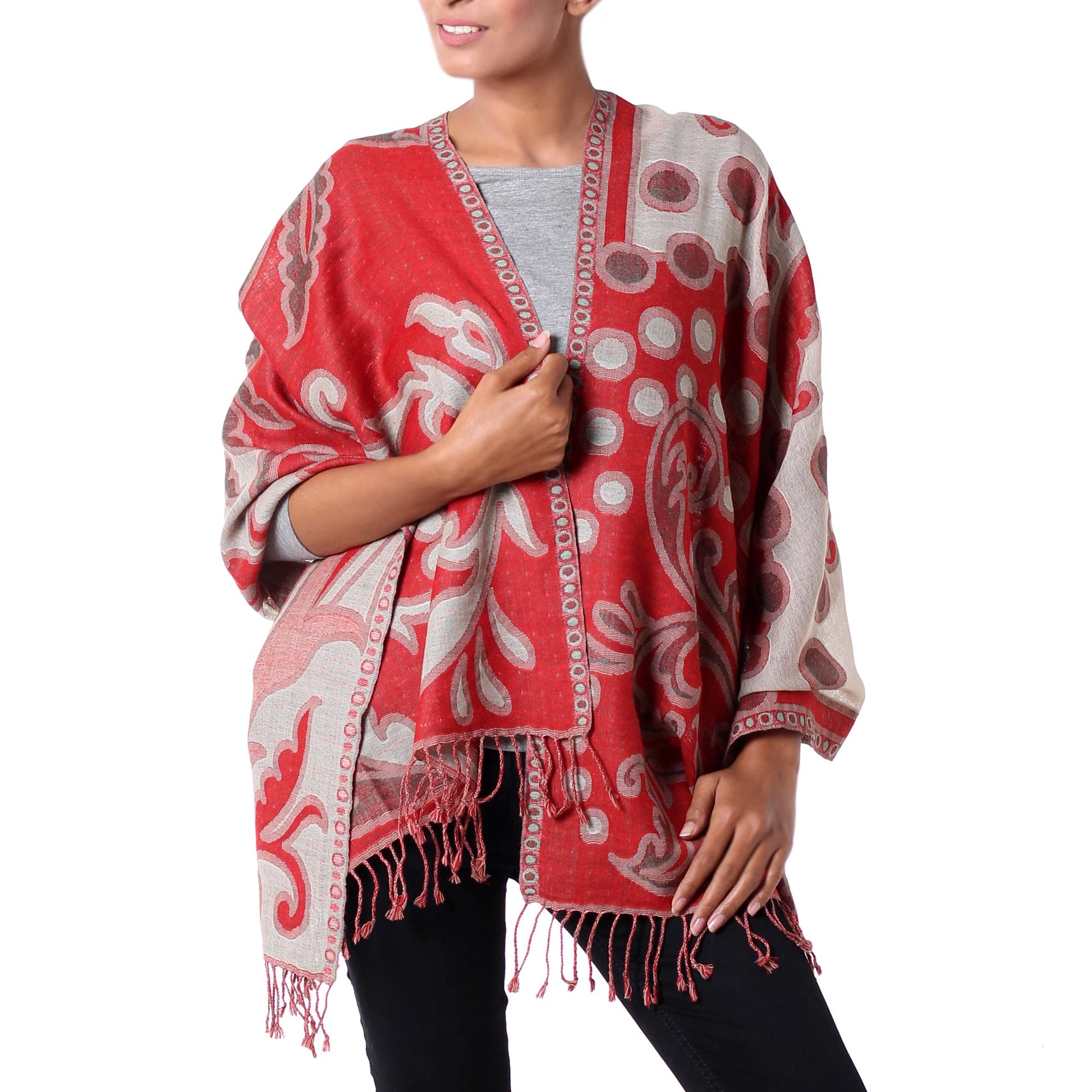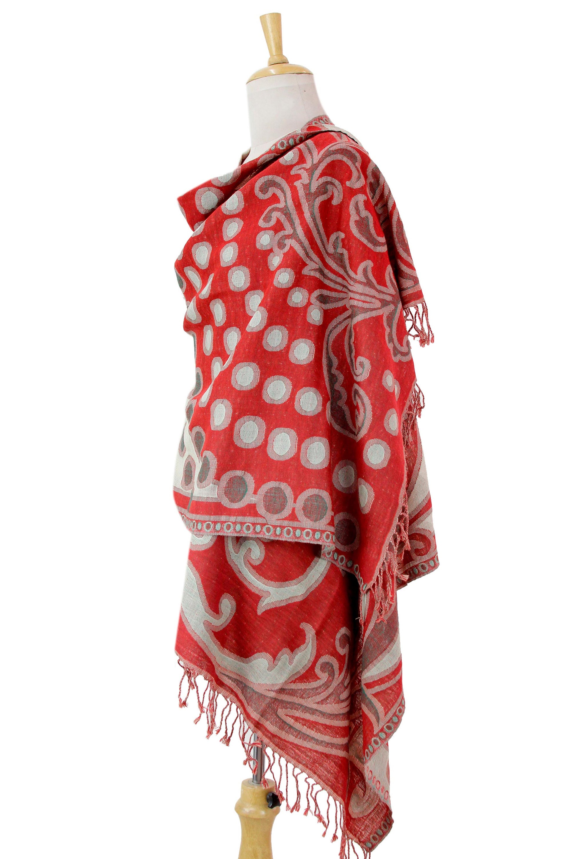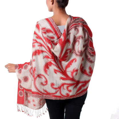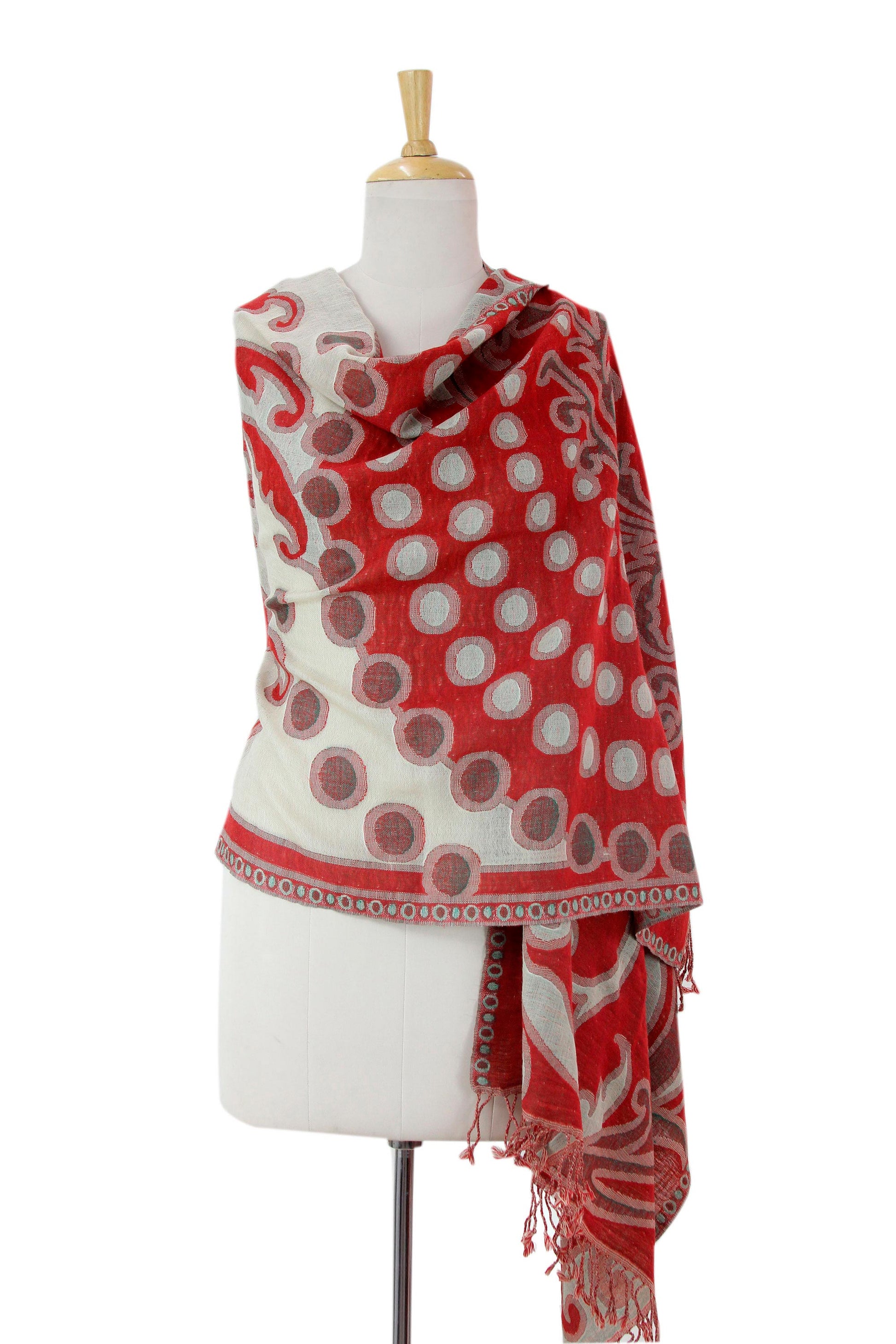 Modern Red Jamawar Red and Beige Modern Wool Shawl from India