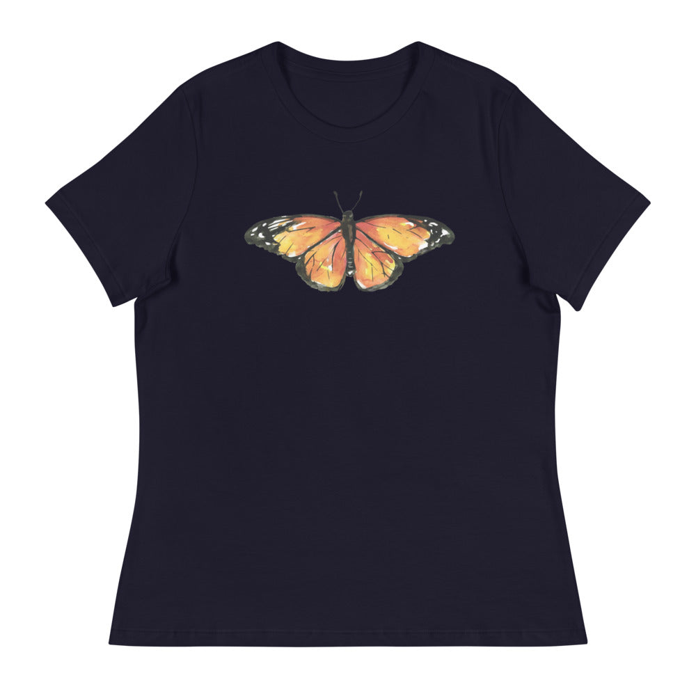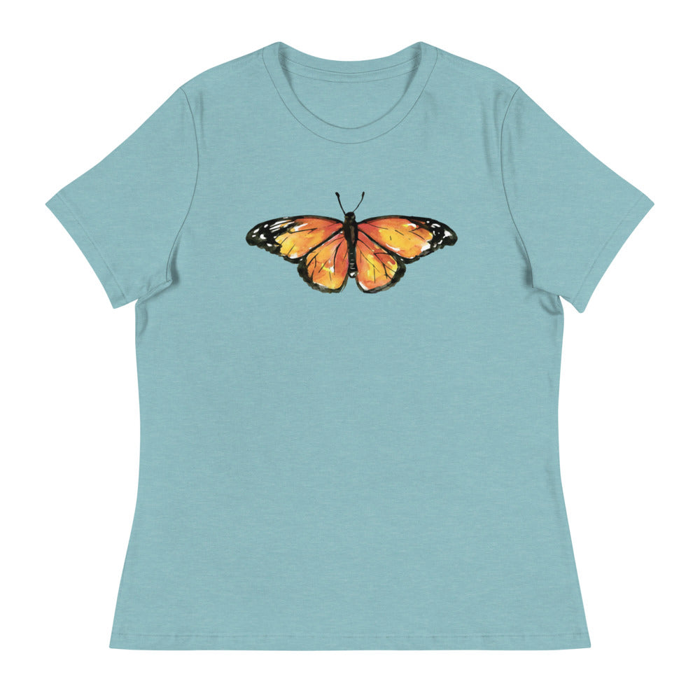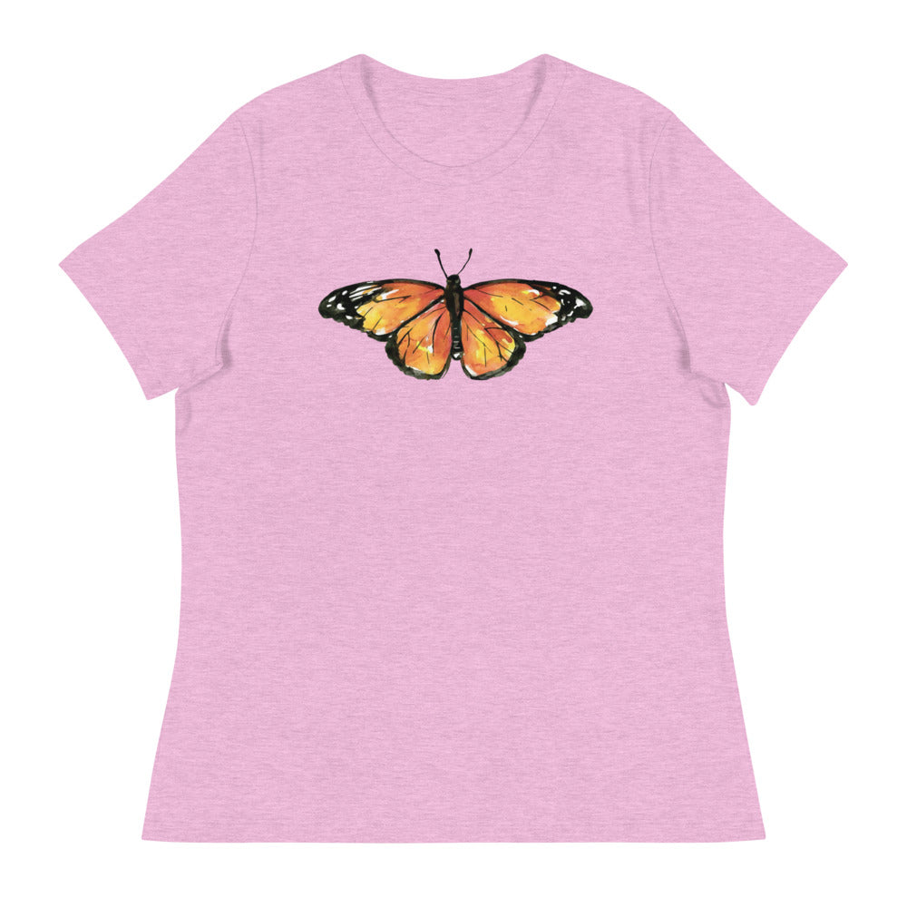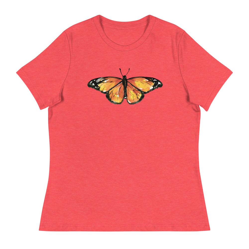 This gorgeous butterfly graces the front of this 100% cotton short sleeve tee. Oranges and yellows blend together to created this lovely little creature on this short sleeve shirt! • 100% combed and ring-spun cotton