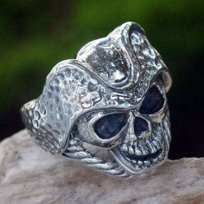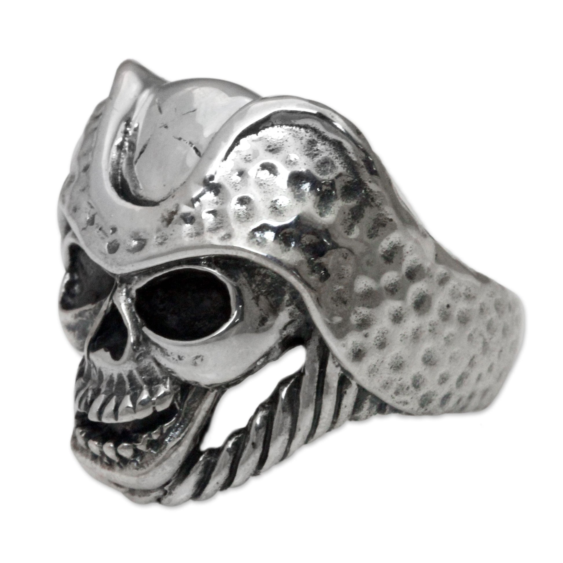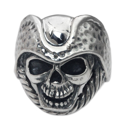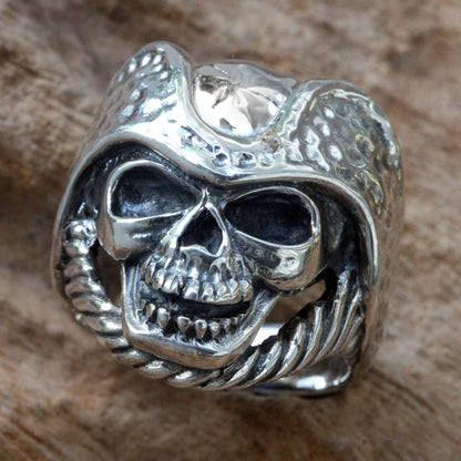Wearing an elaborate headdress, this smiling skull is the king of all skulls in a collection of rings created by Putu Gede Darmawan. Crafted with sterling silver, it is finished by hand with detailed artistry.