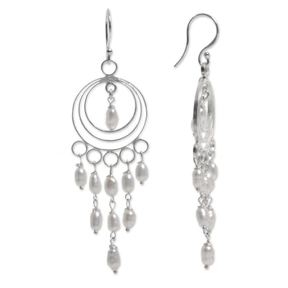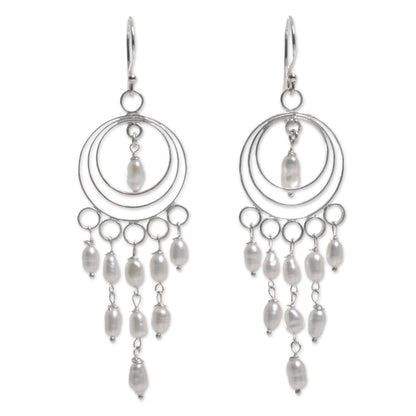 Moonlit Circles Sterling Silver and Cultured Pearl Chandelier Earrings
