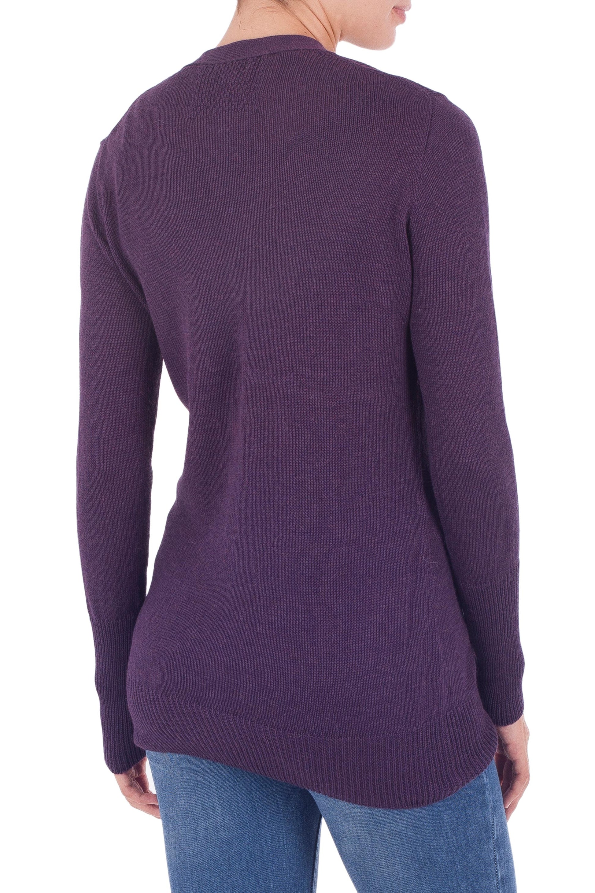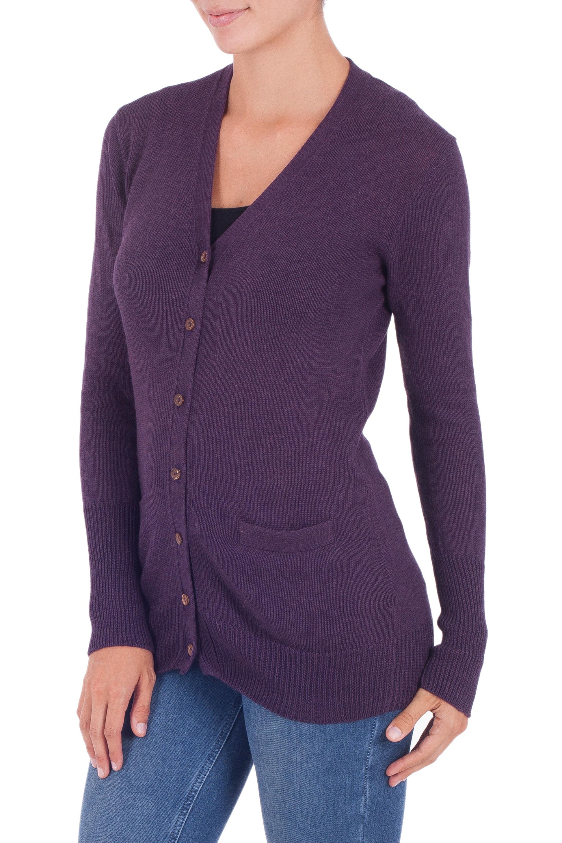 Nazca Purple Alpaca and Cotton Blend Classic Cardigan