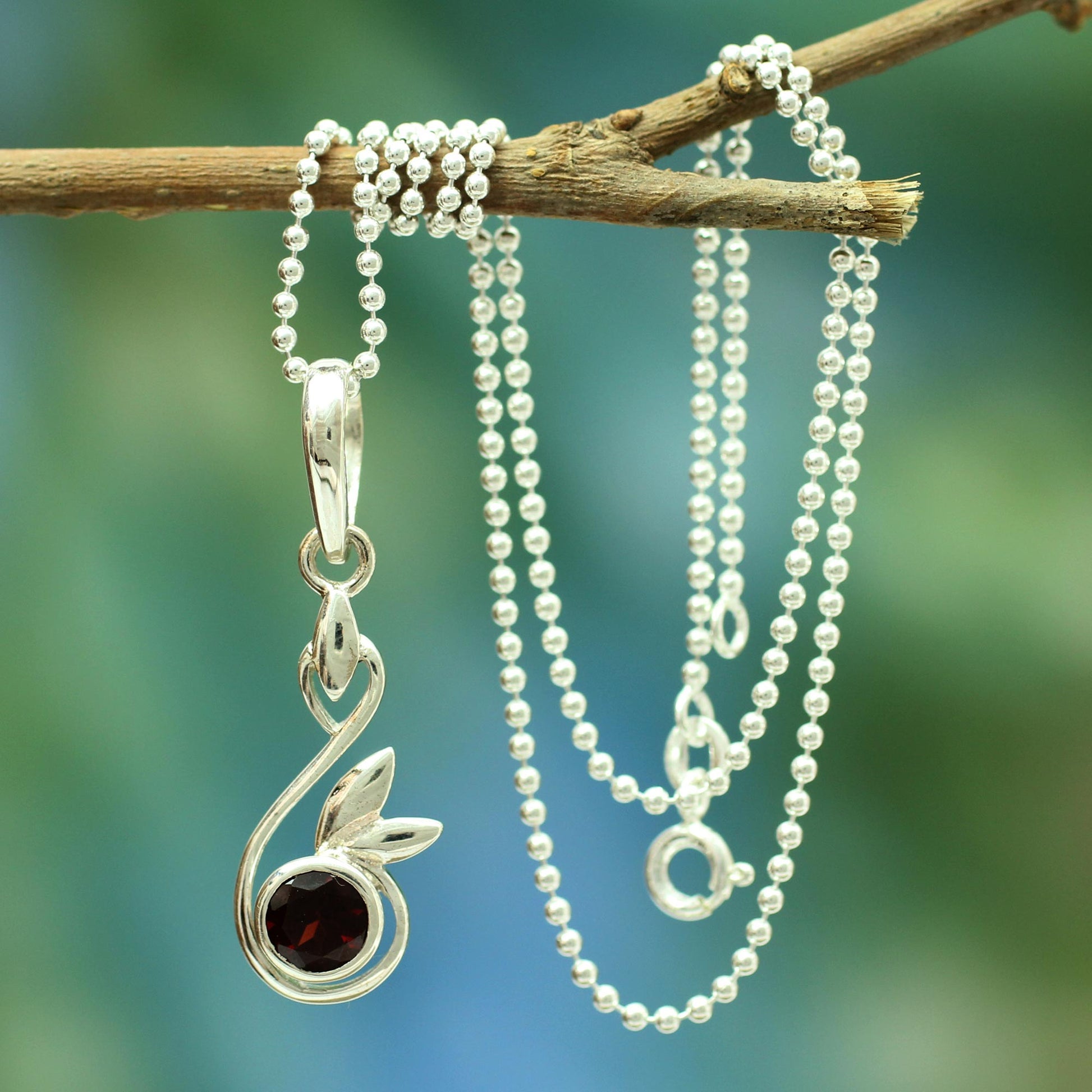 New Growth Indian Sterling Silver and Garnet Necklace from India