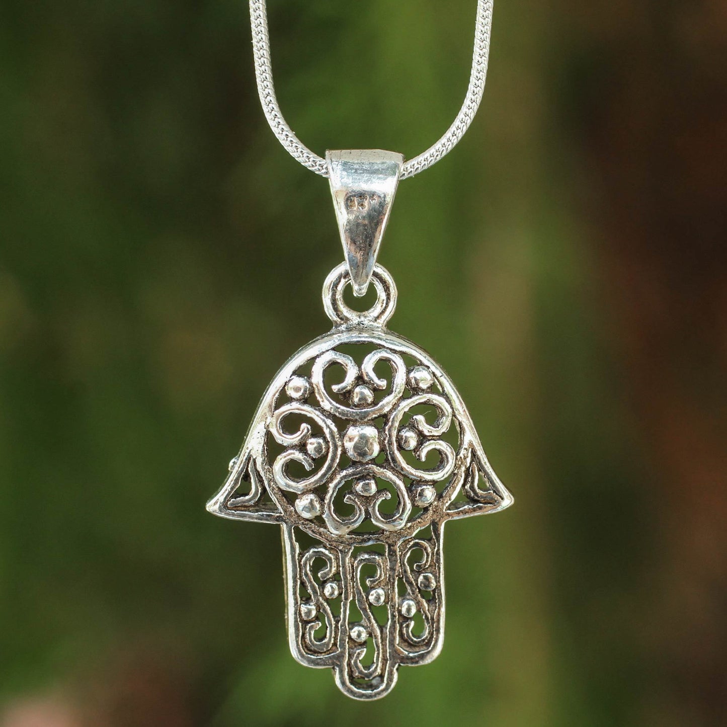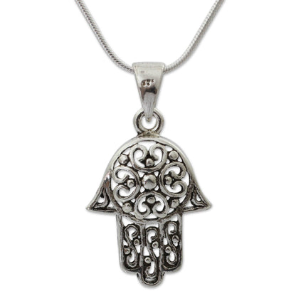 Silver Pendant Hamsa Necklace