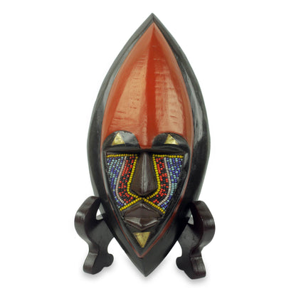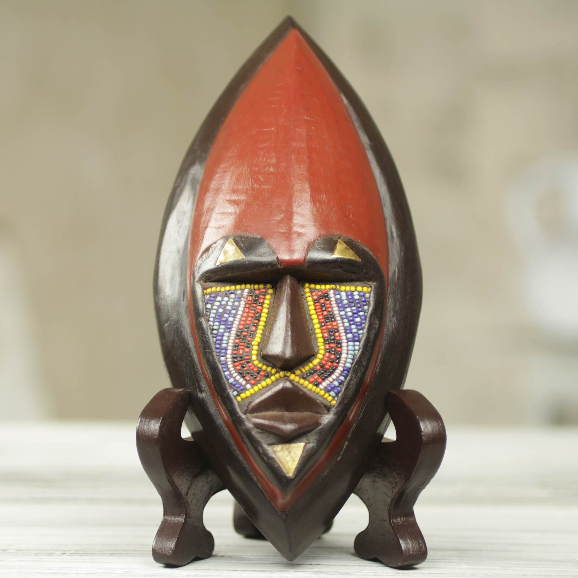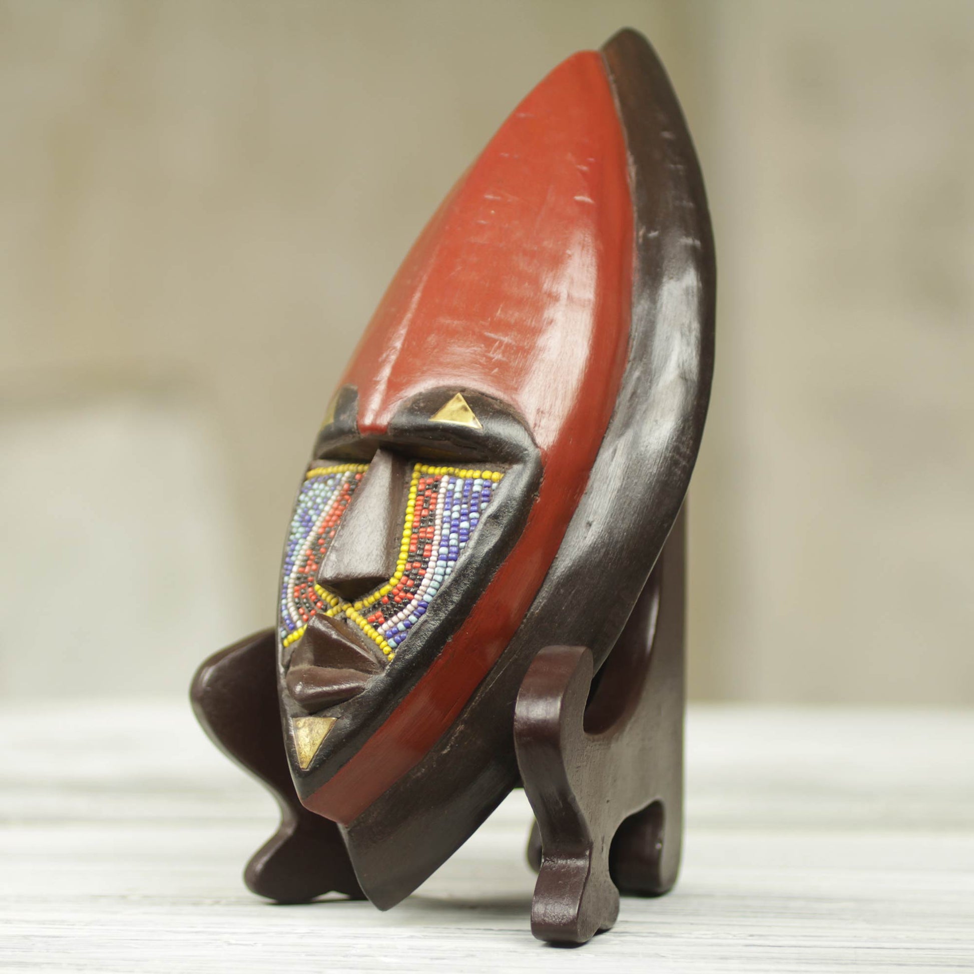 Ntoboase I African Wood Mask Carved by Hand with Colorful Beads