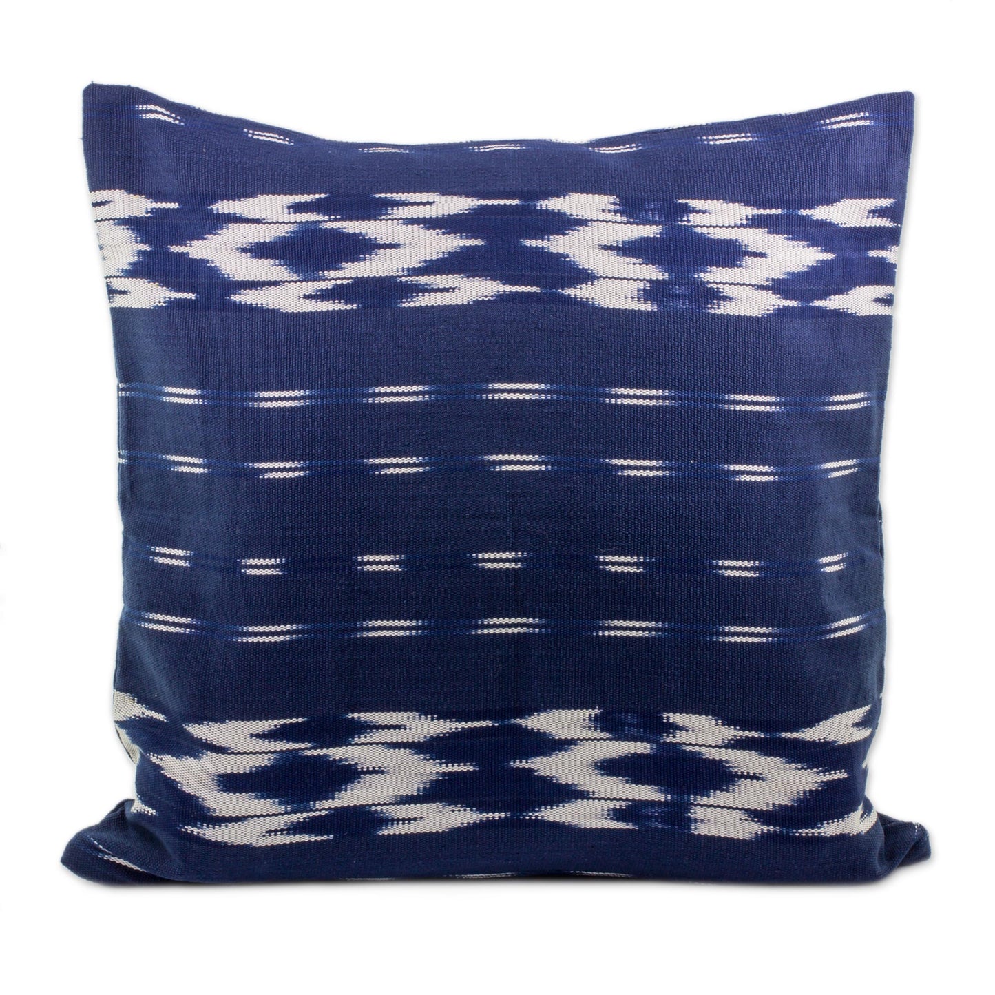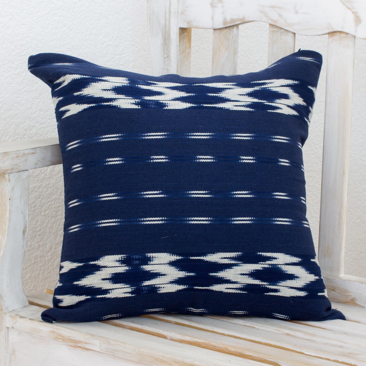 Ocean Elegance Cotton Cushion Cover in Ivory and Navy from Guatemala