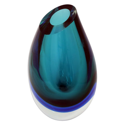 The Seguso Family artisans create a spectacular vase featuring a voluptuous turquoise droplet arising from a crystalline base. They masterfully conjure the illusion with blown glass techniques that are executed by hand.